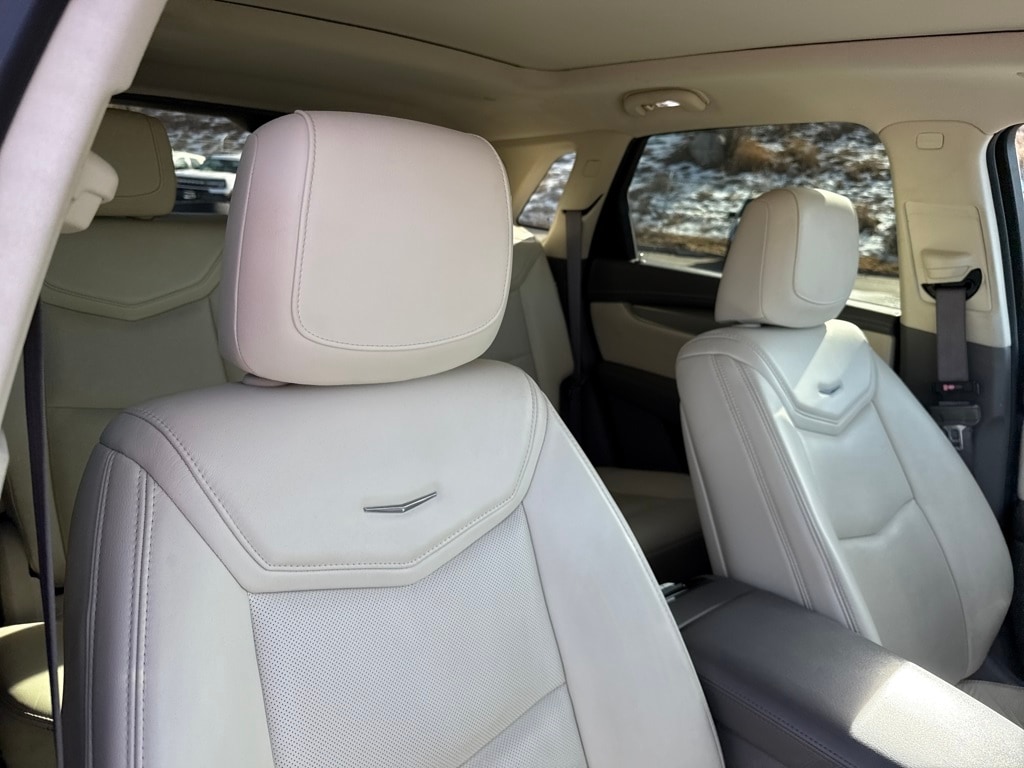 Preferred Equipment Group 1SF (Automatic Dual-Zone Climate Control, Body-Color Heated Power-Adjustable Outside Mirrors, Front & Rear Park Assist, and Low Speed Front Automatic Braking), Ford Blue Advantage: Blue Certified Certified, 14 Speakers, 2-Way Power Driver Lumbar Control Seat Adjuster, 2-Way Power Passenger Lumbar Control Seat Adjuster, 3.20 Axle Ratio, 4-Wheel Disc Brakes, 8-Way Power Front Passenger Seat Adjuster, ABS brakes, Adaptive suspension, Air Conditioning, Alloy wheels, AM/FM radio: SiriusXM, Apple CarPlay/Android Auto, Auto High-beam Headlights, Auto-dimming door mirrors, Auto-dimming Rear-View mirror, Automatic temperature control, Black Molded Splash Guards (LPO), Bodyside moldings, Bose Studio Surround Sound w/14-Speakers, Brake assist, Bumpers: body-color, Child-Seat-Sensing Airbag, Compass, Delay-off headlights, Driver & Front Passenger Heated Seats, Driver door bin, Driver vanity mirror, Dual front impact airbags, Dual front side impact airbags, Electronic Stability Control, Emergency communication system: OnStar Directions & Connections, Exterior Parking Camera Rear, Four wheel independent suspension, Front anti-roll bar, Front Bucket Seats, Front Center Armrest, Front dual zone A/C, Front License Plate Bracket, Front reading lights, Full Leather Seats w/Mini Perforated Inserts, Fully automatic headlights, Garage door transmitter, Genuine wood door panel insert, Heated door mirrors, Heated front seats, Heated Rear Outboard Seating Positions, Heated steering wheel, Illuminated entry, Lateral Mesh Cargo Net, Leather steering wheel, Low tire pressure warning, Memory seat, Navigation System, Occupant sensing airbag, Outside temperature display, Overhead airbag, Overhead console, Panic alarm, Passenger door bin, Passenger vanity mirror, Performance Suspension, Power door mirrors, Power driver seat, Power Liftgate, Power moonroof: UltraView, Power passenger seat, Power steering, Power windows, Premium audio system: Cadillac CUE, Radio data system, Radio: Cadillac CUE Info & Media Control w/Nav, Rain sensing wipers, Rear air conditioning, Rear anti-roll bar, Rear reading lights, Rear seat center armrest, Rear window defroster, Rear window wiper, Remote keyless entry, Road Emergency Tool Kit, Roof rack: rails only, SiriusXM Satellite Radio, Speed control, Speed-sensing steering, Split folding rear seat, Spoiler, Steering wheel memory, Steering wheel mounted audio controls, Tachometer, Telescoping steering wheel, Tilt steering wheel, Traction control, Tri-Zone Automatic Climate Control, Trip computer, Variably intermittent wipers, Ventilated Driver & Front Passenger Seats, Ventilated front seats, Voltmeter, Wheels: 20" x 8" Sterling Silver Painted Finish, and Wheels: 20" x 8" Ultra-Bright Machined Faced.