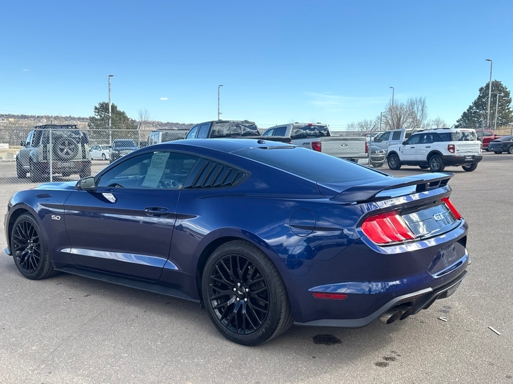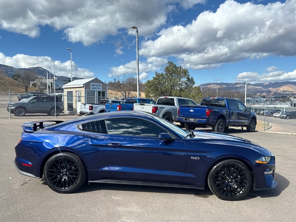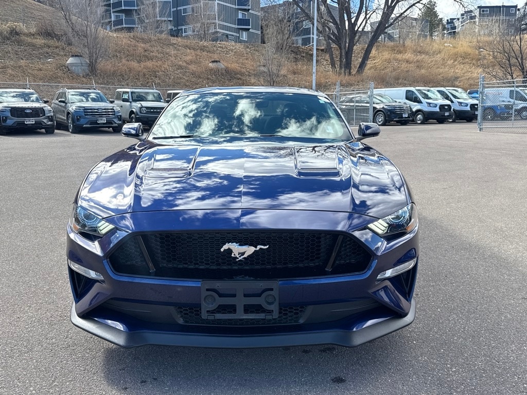 Equipment Group 301A (AM/FM Stereo w/MP3 Player, Dual-Zone Automatic Temperature Control, and SiriusXM Radio), Ford Safe & Smart Package (Adaptive Cruise Control, Automatic High Beam, Lane-Keeping Alert, Pre-Collision Assist w/Pedestrian Detection, and Rain-Sensing Windshield Wipers), GT Performance Package (Engine Spun Aluminum Instrument Panel, Gauge Pack (Oil Pressure & Vacuum), HD Front Springs, Larger Brake Rotors, Larger Radiator, Unique Stability Control, and Wheels: 19" x 9" Fr & 19" x 9.5" Rr Ebony Black), Ford Certified, 3.15 Limited Slip Rear Axle Ratio, 4-Wheel Disc Brakes, 6 Speakers, ABS brakes, Air Conditioning, Alloy wheels, AM/FM radio, AM/FM Stereo, Auto-dimming Rear-View mirror, Brake assist, Bumpers: body-color, Cloth Bucket Seats, Compass, Delay-off headlights, Driver door bin, Driver vanity mirror, Dual front impact airbags, Dual front side impact airbags, Electronic Stability Control, Emergency communication system: 911 Assist, Exterior Parking Camera Rear, Four wheel independent suspension, Front anti-roll bar, Front Bucket Seats, Front Center Armrest, Front fog lights, Front reading lights, Fully automatic headlights, Illuminated entry, Knee airbag, Low tire pressure warning, Occupant sensing airbag, Outside temperature display, Overhead airbag, Overhead console, Panic alarm, Passenger door bin, Passenger vanity mirror, Power door mirrors, Power driver seat, Power passenger seat, Power steering, Power windows, Radio data system, Rear anti-roll bar, Rear window defroster, Remote keyless entry, Security system, Speed control, Speed-sensing steering, Speed-Sensitive Wipers, Split folding rear seat, Spoiler, Steering wheel mounted audio controls, SYNC Communications & Entertainment System, Tachometer, Telescoping steering wheel, Tilt steering wheel, Traction control, Trip computer, Variably intermittent wipers, Voltmeter, and Wheels: 18" x 8" Machined-Face Aluminum.