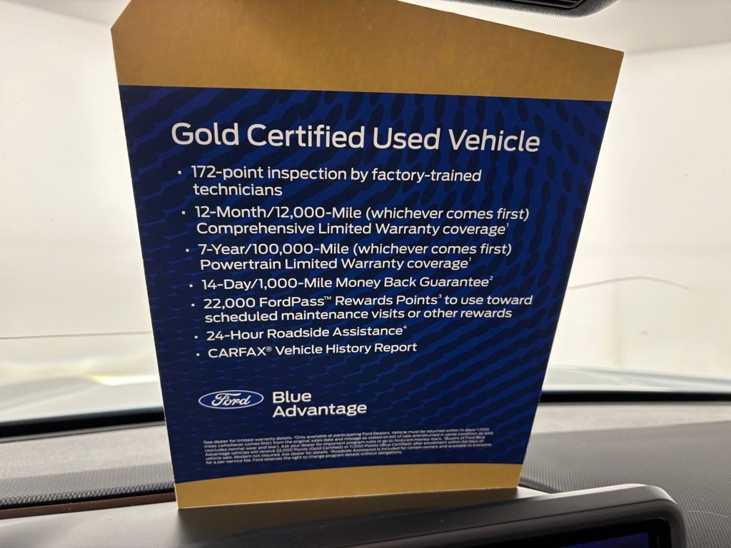 Ford Gold Certified includes:172 point vehicle inspection performed by a Ford Certified technician. 12-month/12,000-mile Comprehensive Limited Warranty coverage 7-year/100,000-mile Powertrain Limited Warranty coverage Gold Certification includes 22,000 FordPass Rewards Points Comprehensive Coverage: 12 months or 12,000 miles, whichever comes first, from the expiration of th