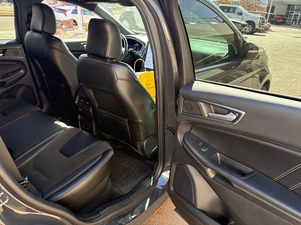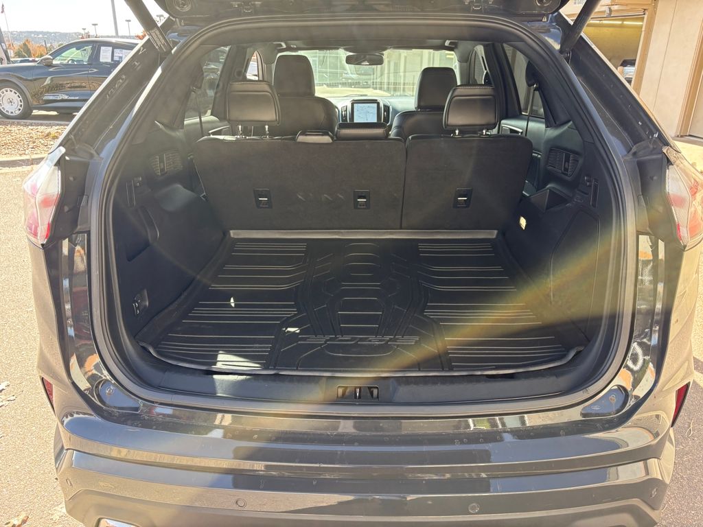 Comfort is paramount in the Edge ST, boasting ventilated front seats and heated rear seats to provide a cozy atmosphere regardless of the weather. The panoramic sunroof adds a touch of luxury, filling the cabin with natural light, while the power liftgate simplifies cargo handling, making everyday tasks a breeze.