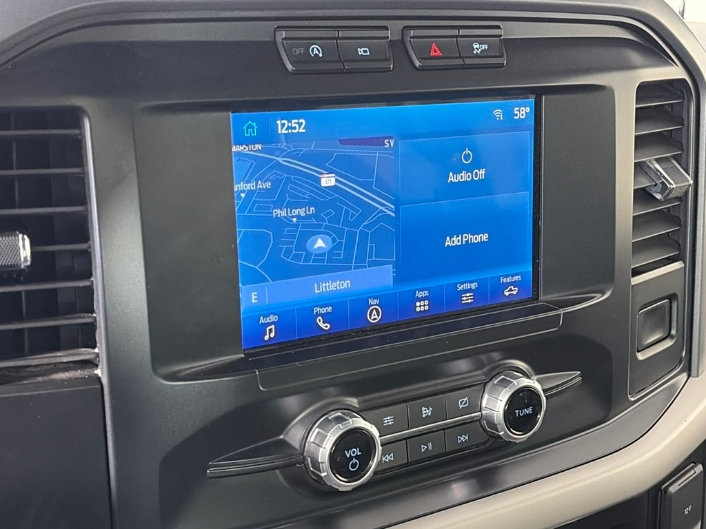 EQUIPMENT GROUP 301A MID Class IV Trailer Hitch Receiver, towing capability up to TBD lbs, on 3.3L V6 PFDI engine (99B) and 2.7L EcoBoost engine (99P) or up to TBD lbs, on 3.5L EcoBoost engine (998) and 5.0L V8 engine (995), 7-pin wiring harness w/7-pin-to-4-pin adapter, smart trailer tow connector and BLIS w/trailer tow coverage, Leather-Wrapped Steering Wheel, Dual Zone Automatic Temperature Control, SecuriCode Drivers Side Keyless-Entry Keypad, Power Glass Heated Sideview Mirrors, manual folding, turn signal and black skull caps, Auto-Dimming Rearview Mirror, 8 Productivity Screen in Instrument Cluster, SYNC 4 w/Enhanced Voice Recognition, 8 LCD capacitive touchscreen w/swipe capability, wireless phone connection, cloud connected, AppLink w/App catalog, 911 Assist, Apple CarPlay® and, ENGINE: 3.5L V6 ECOBOOST auto start-stop technology, BLACK PLATFORM RUNNING BOARDS, REMOTE START SYSTEM W/REMOTE TAILGATE RELEASE, TRANSMISSION: ELECTRONIC 10-SPEED AUTOMATIC selectable drive modes: normal, ECO, sport, tow/haul, slippery, deep snow/sand and mud/rut (STD). Ford XLT with Oxford White exterior and Medium Dark Slate interior features a V6 Cylinder Engine with 400 HP at 6000 RPM*.