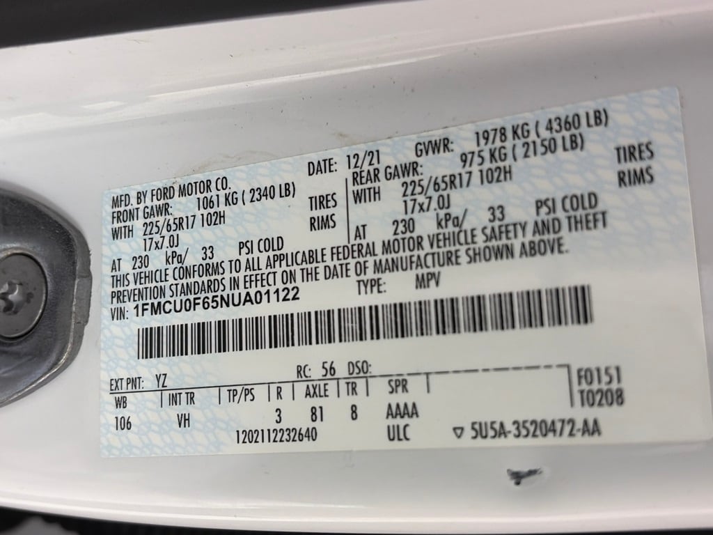 S trim, Oxford White exterior and Dark Earth Gray interior. EPA 34 MPG Hwy/28 MPG City! Brake Actuated Limited Slip Differential, Cross-Traffic Alert, Bluetooth®, AUX Port, Lane Keeping Assist, Blind Spot Alert, WiFi Hotspot, Turbo Charged Engine, ENGINE: 1.5L ECOBOOST, Back-Up Camera. CLICK NOW!