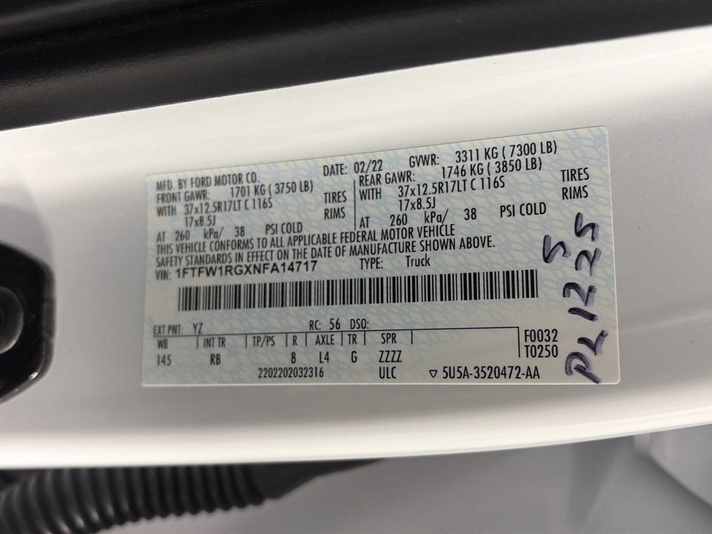 RAPTOR 37 PERFORMANCE PACKAGE Raptor 37 Graphics, Sport Tuned Shock Absorbers, Wheels: Unique 17 Forged Aluminum Bead-Lock Capable, Tires: 37x12.5R17 BSW All-Terrain, EQUIPMENT GROUP 801A HIGH Wireless Charging Pad, Rain-Sensing Wipers, Power Tilt/Telescoping Steering Column w/Memory, Torsen Package, Front-Axle w/Torsen Differential, Rigid LED Fog Lamp, Convenience Package, Interior Work Surface, Connected Built-In Navigation, Navigation services require SYNC4 and FordPass Connect (optional on select vehicles), complimentary connect service and the FordPass app (see FordPass Terms for details), Eligible vehicles receive a complimentary 90-day trial of navigation services that begins on the new vehicle warranty start date, Customers must unlock the navigation service trial by activating the eligible vehicle w/a FordPass member account, If not subscribed by the end of the complimentary period, the navigation service will terminate, Connected service and, MOONROOF & TAILGATE Power Tailgate, Twin Panel Moonroof, TOUGH BED SPRAY-IN BEDLINER, TRANSMISSION: ELECTRONIC 10-SPEED AUTOMATIC terrain management modes: normal, sport, tow-haul, slippery, rock crawl, off-road and baja mode (STD). Ford Raptor with Oxford White exterior and Black interior features a V6 Cylinder Engine with 450 HP at 5000 RPM*.