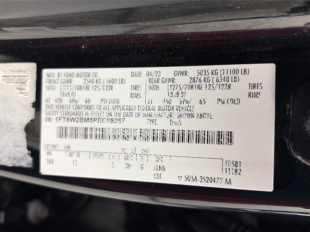 ENGINE: 6.7L POWER STROKE V8 TURBO DIESEL B20 High output, manual push-button engine-exhaust braking, Operator Commanded Regeneration (OCR) and intelligent oil-life monitor, 190 Amp Alternator (Diesel), 34 Gallon Fuel Tank, 3.31 Axle Ratio, High Capacity 11.6 Axle Upgrade Package, increased GCW and upgraded 11.6 axle, Note: Salespersons portfolio or trailer towing guide should be consulted for specific trailer towing or camper limits and corresponding required equipment, axle ratios and model availability, See supplemental reference for vehicle height consideration, F-250 >10K GVWR Package, Dual 68 AH/65 AGM Batteries, STX APPEARANCE PACKAGE STX fender vent badge and upgraded interior door panels, Pre-Collision Assist, Automatic Emergency Braking (AEB) and forward collision warning, Tires: LT275/70Rx18E BSW Automatic Transmission (4), Spare may not be the same as road tire, Body-Color Front Bumper, LED Box Lighting, LED Center High-Mounted Stop Lamp (CHMSL), F-250 >10K GVWR Package, Color-Coordinated Full Carpet w/Floor Mats, 360-Degree Camera Package, wired auxiliary trailer camera compatibility, Rear Parking Sensors, reverse sensing system w/reverse brake assist, LED Center High-Mounted Stop Lamp (CHMSL) Camera, LED center high-mounted stop lamp (CHMSL), 360-Degree Camera System, picture in picture capability, BLIS w/Cross-Traffic Alert, trailer coverage, Wheels: 18 Ebony Black Painted Aluminum, BoxLink, 4 premium, TOW TECHNOLOGY PACKAGE Lane Departure Warning, Pro Trailer Backup Assist, trailer reverse guidance, Pro Trailer Hitch Assist, TOUGH BED SPRAY-IN BEDLINER tailgate-guard, black box bed tie-down hooks and black bed attachment bolts, PLATFORM RUNNING BOARDS, ELECTRONIC-LOCKING W/3.31 AXLE RATIO, POWER-SLIDING REAR-WINDOW W/DEFROST, REMOTE START SYSTEM, TRANSMISSION: TORQSHIFT 10-SPEED AUTOMATIC SelectShift and selectable drive modes: normal, eco, slippery roads, tow/haul and off-road. Ford XL with Agate Black exterior and Medium Dark Slate interior features a 8 Cylinder Engine with 500 HP at 2600 RPM*.