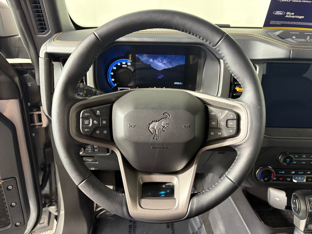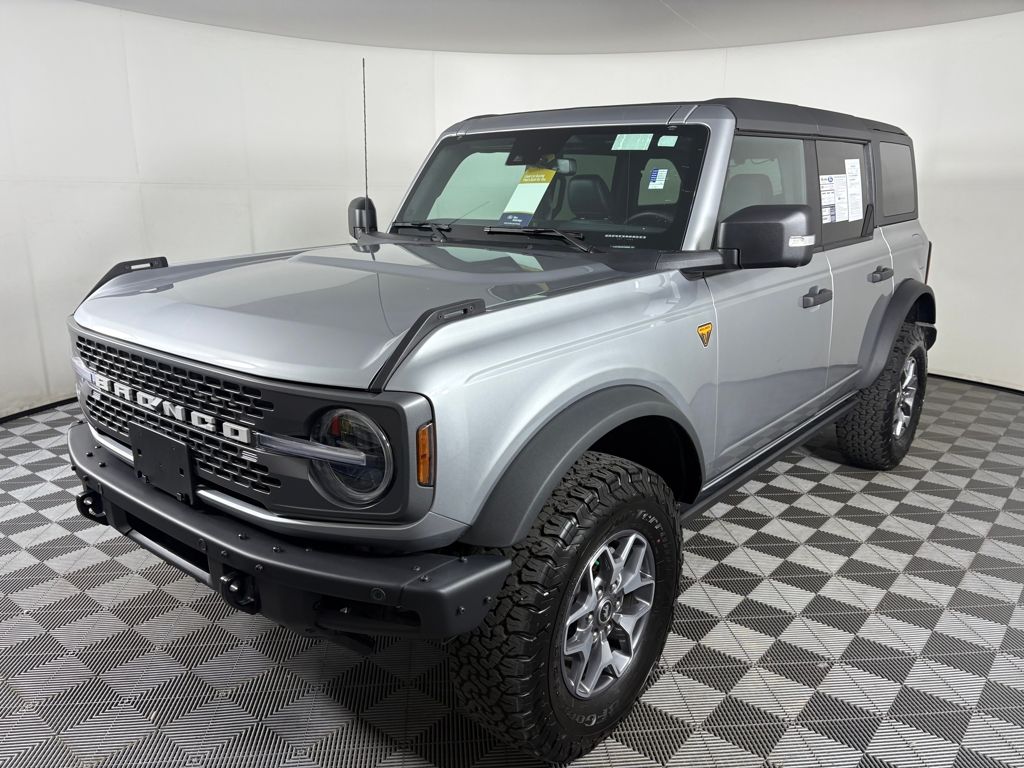 The modern **Touchscreen** interface makes accessing various vehicle features incredibly easy, allowing you to control everything with just a touch. With a robust **4-Wheel Drive** system and **Automatic Full-Time 4-Wheel/All-Wheel Drive**, the Bronco Badlands offers exceptional traction on any terrain, making it perfect for both rugged off-road adventures and everyday city driving.