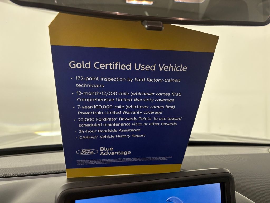 Ford Gold Certified includes:172 point vehicle inspection performed by a Ford Certified technician. 12-month/12,000-mile Comprehensive Limited Warranty coverage 7-year/100,000-mile Powertrain Limited Warranty coverage Gold Certification includes 22,000 FordPass Rewards Points Comprehensive Coverage: 12 months or 12,000 miles, whichever comes first, from the expiration of t