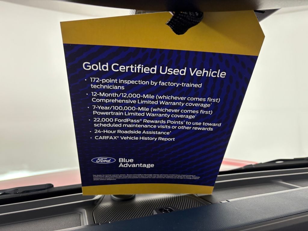 Ford Gold Certified includes:172 point vehicle inspection performed by a Ford Certified technician. 12-month/12,000-mile Comprehensive Limited Warranty coverage 7-year/100,000-mile Powertrain Limited Warranty coverage Gold Certification includes 22,000 FordPass Rewards Points Comprehensive Coverage: 12 months or 12,0