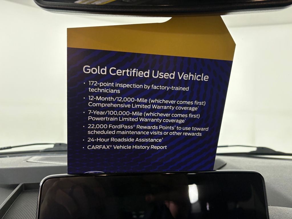 Ford Gold Certified includes:172 point vehicle inspection performed by a Ford Certified technician. 12-month/12,000-mile Comprehensive Limited Warranty coverage 7-year/100,000-mile Powertrain Limited Warranty coverage Gold Certification includes 22,000 FordPass Rewards Points Compr