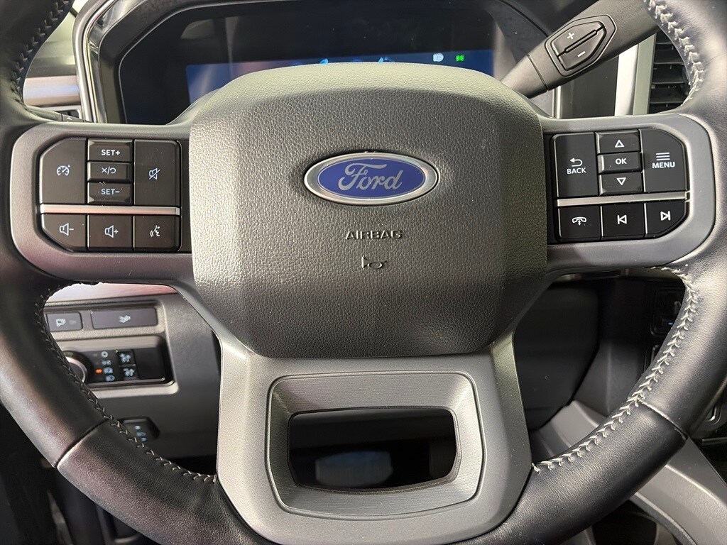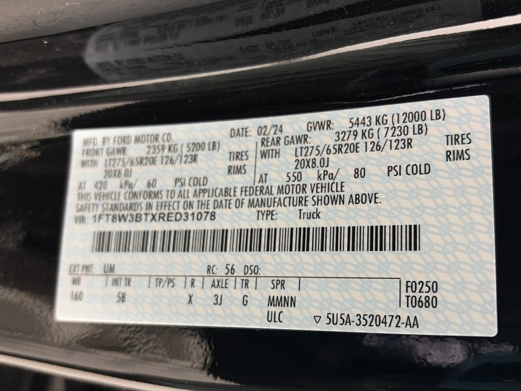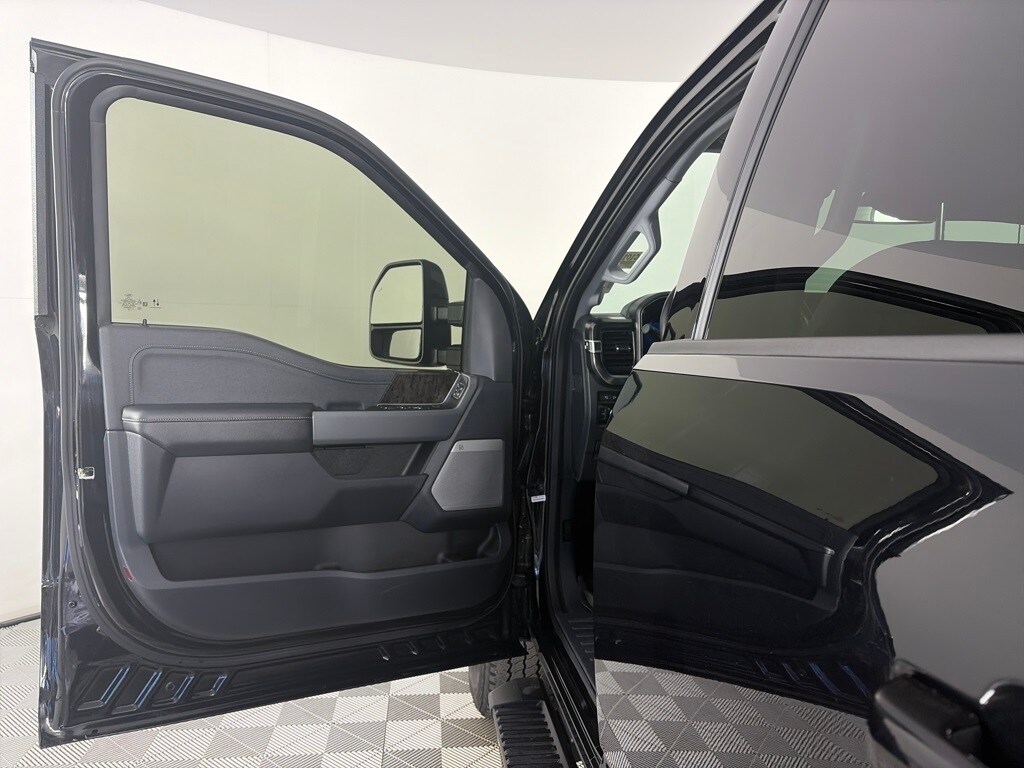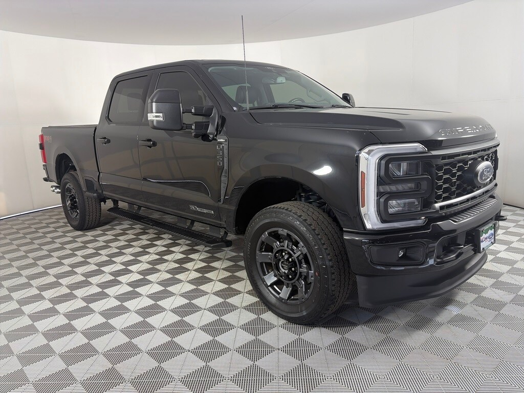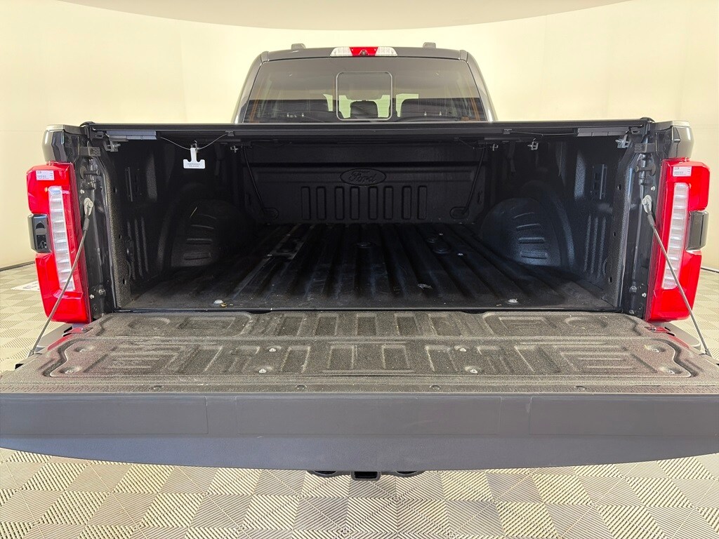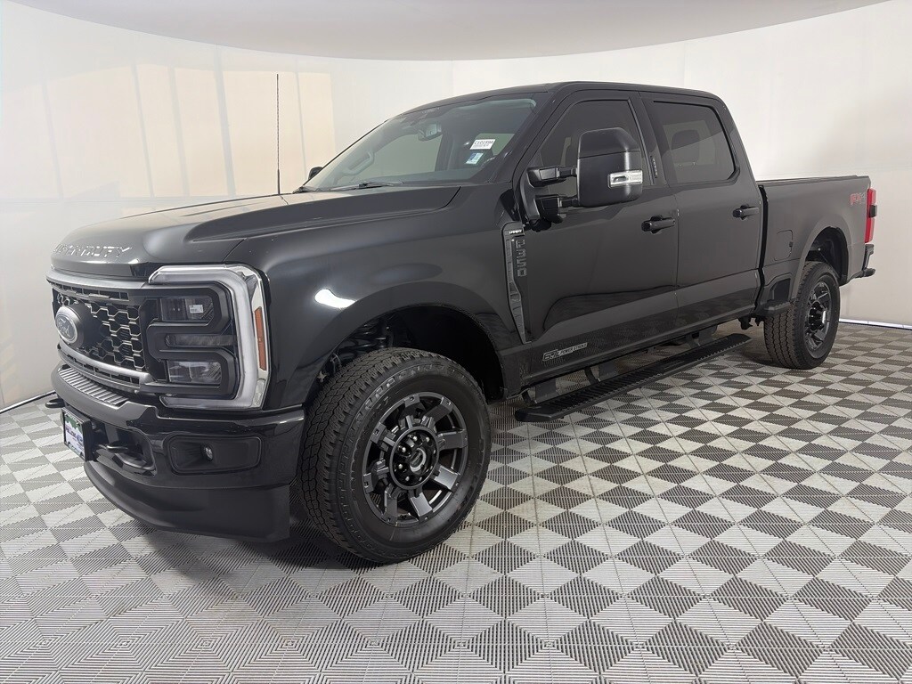 ENGINE: 6.7L 4V OHV POWER STROKE V8 TURBO DIESEL B20 manual push-button engine-exhaust braking, Operator Commanded Regeneration (OCR) and intelligent oil-life monitor, 34 Gallon Fuel Tank, GVWR: 12,000 lb Payload Package, 3.31 Axle Ratio, Dual 68 AH/65 AGM Batteries, SPORT APPEARANCE PACKAGE dark fender badge, Black Tow Hooks, Wheels: 20 Dark Carbonized Gray Painted Aluminum, High-gloss, matte black hub covers/center ornaments, Body-Color Front & Rear Bumpers, Tires: LT275/65Rx20E BSW Automatic Transmission (4), Spare may not be the same as road tire, Sport 4x4 Box Side Decal, Dark Painted Grille, Platform Running Boards, Chrome Exhaust Tip, TOUGH BED SPRAY-IN BEDLINER tailgate-guard, black box bed tie-down hooks and black bed attachment bolts, ELECTRONIC-LOCKING W/3.55 AXLE RATIO, TRANSMISSION: TORQSHIFT 10-SPEED AUTOMATIC SelectShift and selectable drive modes: normal, eco, slippery roads, tow/haul and off-road (STD). Ford LARIAT with Agate Black exterior and Black Onyx interior features a 8 Cylinder Engine with 475 HP at 2600 RPM*.