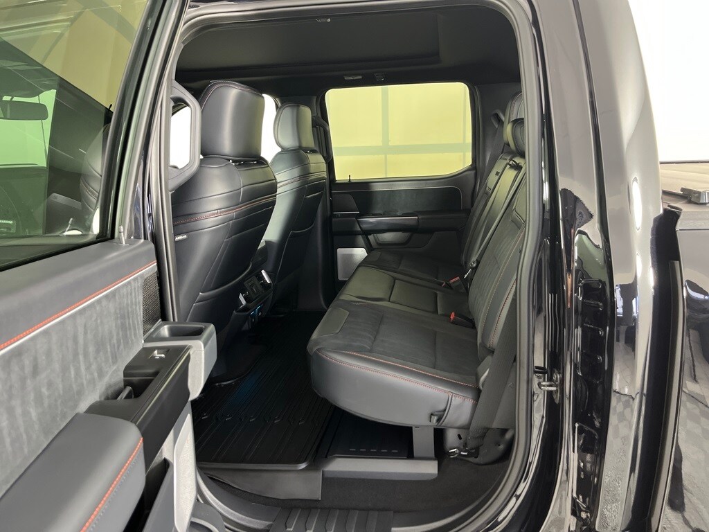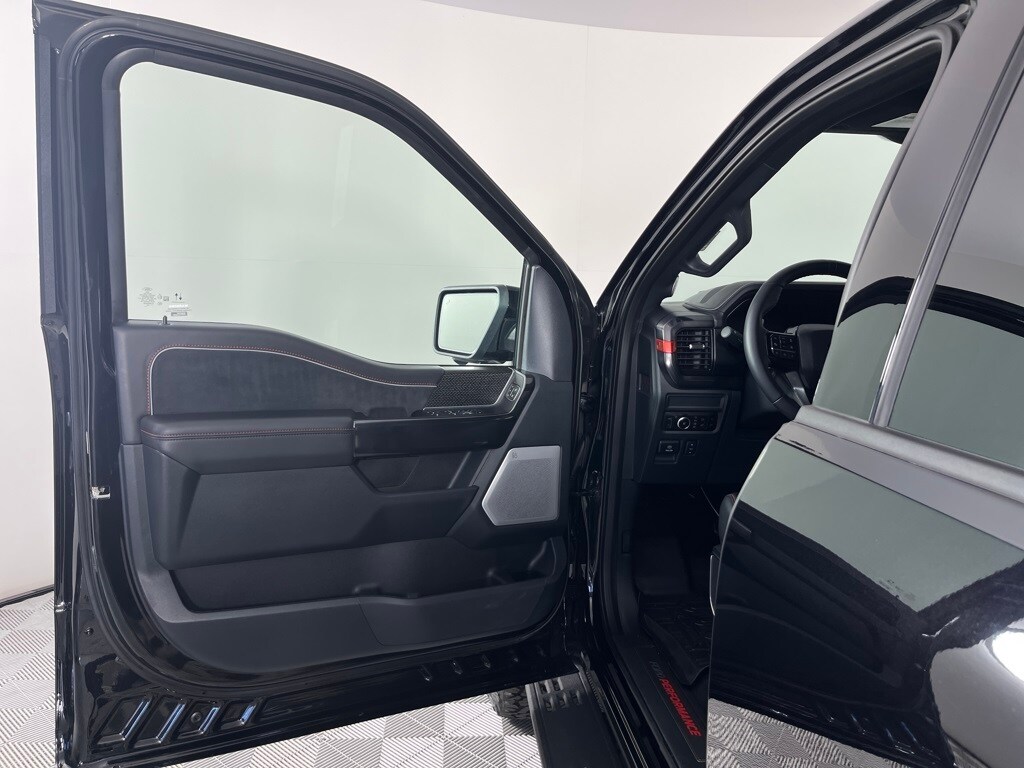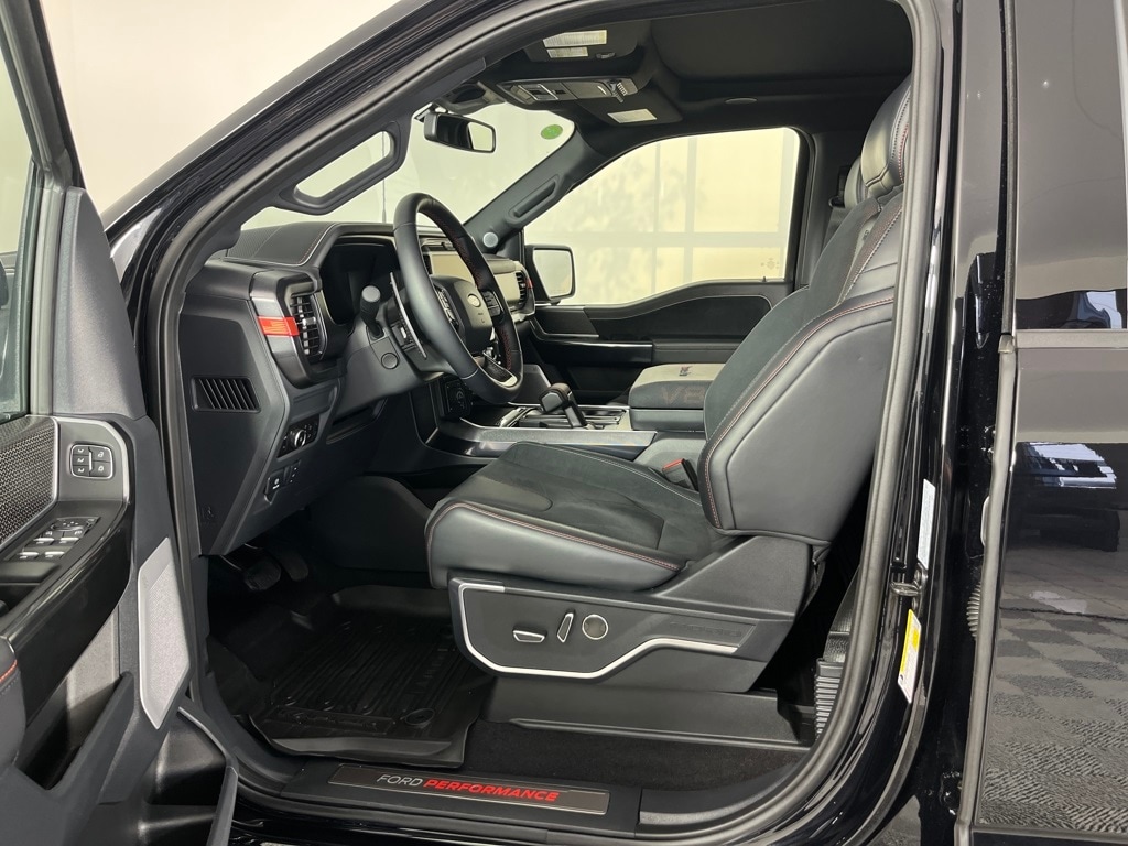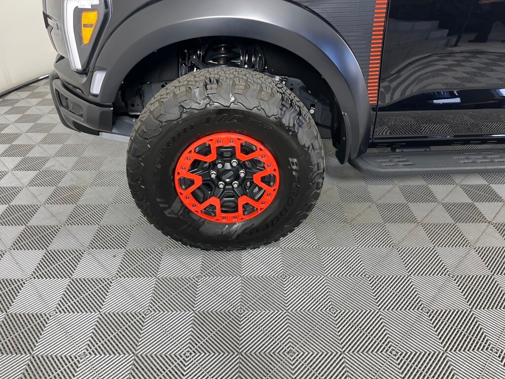 EQUIPMENT GROUP 803A RAPTOR R Raptor R Exterior Graphics, GVWR: 7,500 lbs, Interior Code Orange Raptor R Badging, Raptor R Exterior Theme, Modular Front Bumper, Removes 2KW Pro Power Onboard, Engine: 5.2L Supercharged V8, Raptor R Unique Hood Vent w/R Badge, Raptor R Interior Theme, Unique Carbon Fiber Appliques, Raptor R Unique Grille, Dual Valve Shocks, Raptor R Badge Tailgate Applique, Code Orange Stitching Doors & Instrument Panel, Wheels: Raptor R Unique 17 Forged Aluminum, Bead lock capable, Tires: 37x12.5R17 BSW All-Terrain, Code Orange Front Tow Hooks, Upgraded Dual Exhaust, RETRACTABLE TONNEAU PICKUP BOX COVER, TWIN PANEL MOONROOF, TOUGH BED SPRAY-IN BEDLINER, TRANSMISSION: ELECTRONIC 10-SPEED AUTOMATIC SelectShift w/paddle shifters and terrain management modes: normal, sport, tow-haul, slippery, rock crawl, off-road and baja (STD). Ford Raptor with Agate Black exterior and Black w/ Orange Stitching interior features a 8 Cylinder Engine with 450 HP at 5250 RPM*.