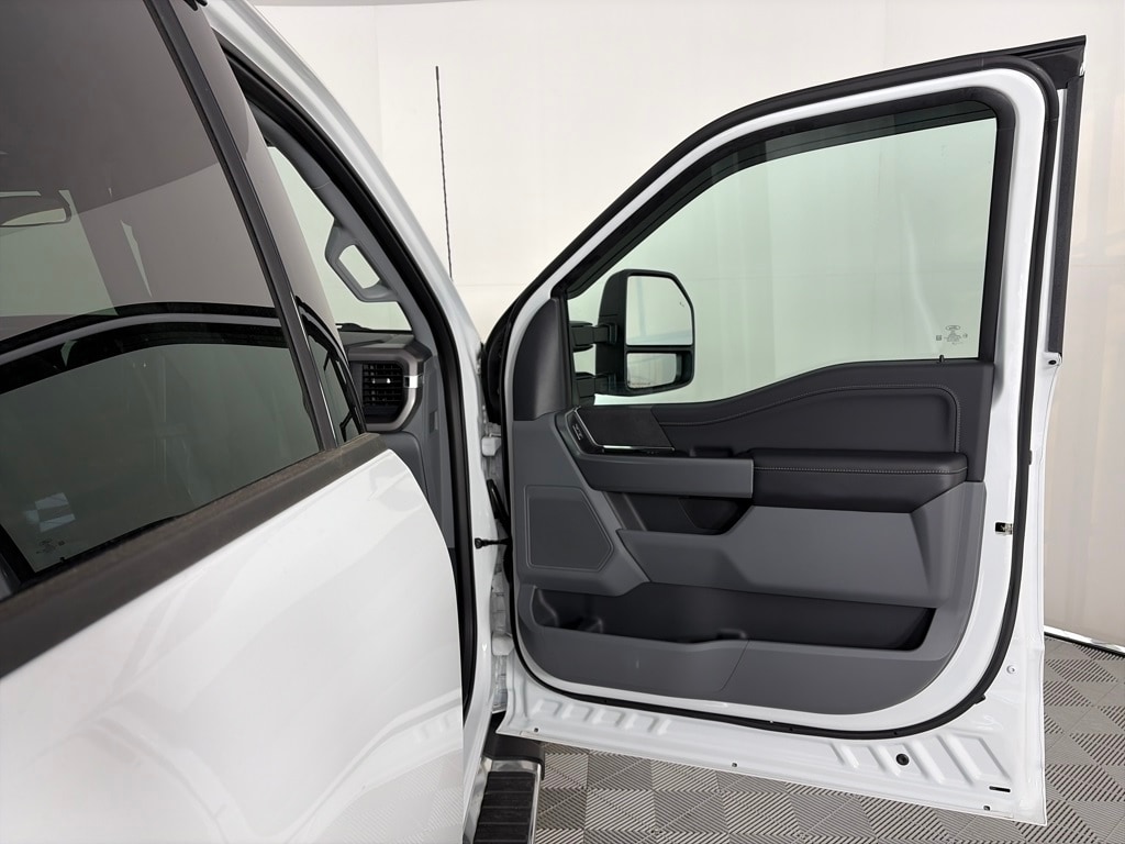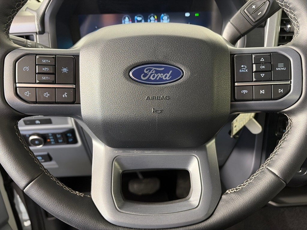 EQUIPMENT GROUP 301A STANDARD Chrome Door & Tailgate Handles, Wrapped Steering Wheel, Black Painted Grille w/Chrome Center Bar, coast to coast black mesh, Dual-Zone Electronic Automatic Temperature Control, (DEATC), 6 Angular Bright Anodized Step Bar, Chrome Single-Tip Exhaust, ELECTRONIC LOCKING W/3.55 AXLE RATIO, MANUAL-FOLDING HEATED PWR GLASS TRAILER TOW MIRROR Manually telescoping, turn signal and black skull caps, TRANSMISSION: ELECTRONIC 10-SPEED AUTOMATIC SelectShift w/progressive range select and selectable drive modes: normal, ECO, sport, tow/haul, slippery, deep snow/sand and mud/rut (STD). Ford XLT with Oxford White exterior and Medium Dark Slate interior features a 8 Cylinder Engine with 400 HP at 6000 RPM*.