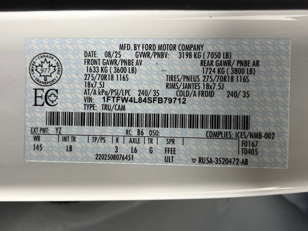 TWIN PANEL MOONROOF, TRANSMISSION: ELECTRONIC 10-SPEED AUTOMATIC SelectShift w/progressive range select and selectable drive modes: normal, ECO, sport, tow/haul, slippery, deep snow/sand and mud/rut (STD). Ford Tremor with Oxford White exterior and Black interior features a 8 Cylinder Engine with 400 HP at 6000 RPM*.