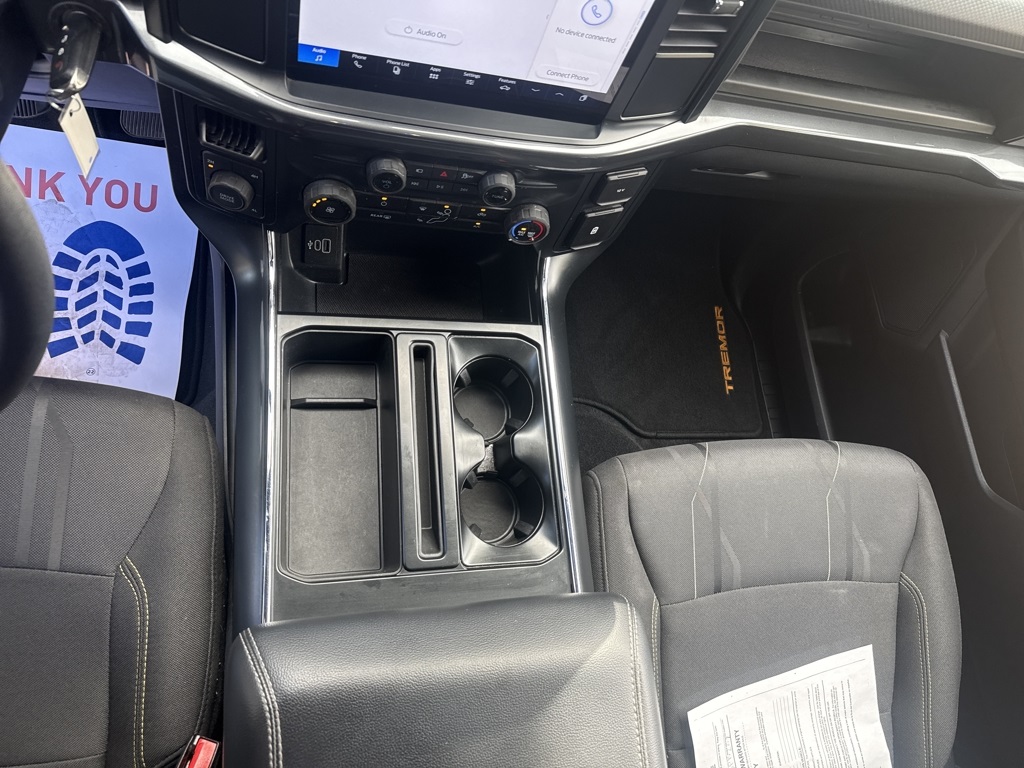 GVWR: 6,650 lbs Payload Package, Ford Certified, 4WD, 3.55 Axle Ratio, 4-Wheel Disc Brakes, 6 Speakers, ABS brakes, Air Conditioning, Alloy wheels, AM/FM radio: SiriusXM with 360L, Auto High-beam Headlights, Brake assist, Bumpers: body-color, Compass, Delay-off headlights, Driver door bin, Dual front impact airbags, Dual front side impact airbags, Electronic Stability Control, Emergency communication system: SYNC 4 911 Assist, Front anti-roll bar, Front Bucket Seats, Front Center Armrest, Front reading lights, Front wheel independent suspension, Fully automatic headlights, Heated door mirrors, Illuminated entry, Low tire pressure warning, Occupant sensing airbag, Outside temperature display, Overhead airbag, Overhead console, Panic alarm, Passenger door bin, Passenger vanity mirror, Power door mirrors, Power steering, Power windows, Radio data system, Radio: AM/FM Stereo w/SiriusXM 360L, Rear Parking Sensors, Rear step bumper, Rear window defroster, Remote keyless entry, Security system, Speed control, Split folding rear seat, Steering wheel mounted audio controls, SYNC 4 w/Enhanced Voice Recognition, Tachometer, Telescoping steering wheel, Tilt steering wheel, Traction control, Trip computer, Variably intermittent wipers, Voltmeter, and Wheels: 18" Gloss Black.