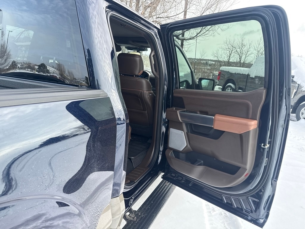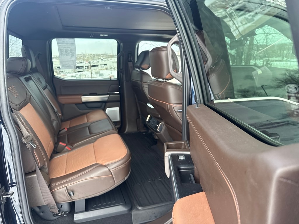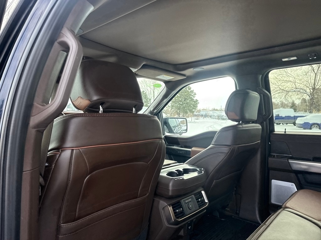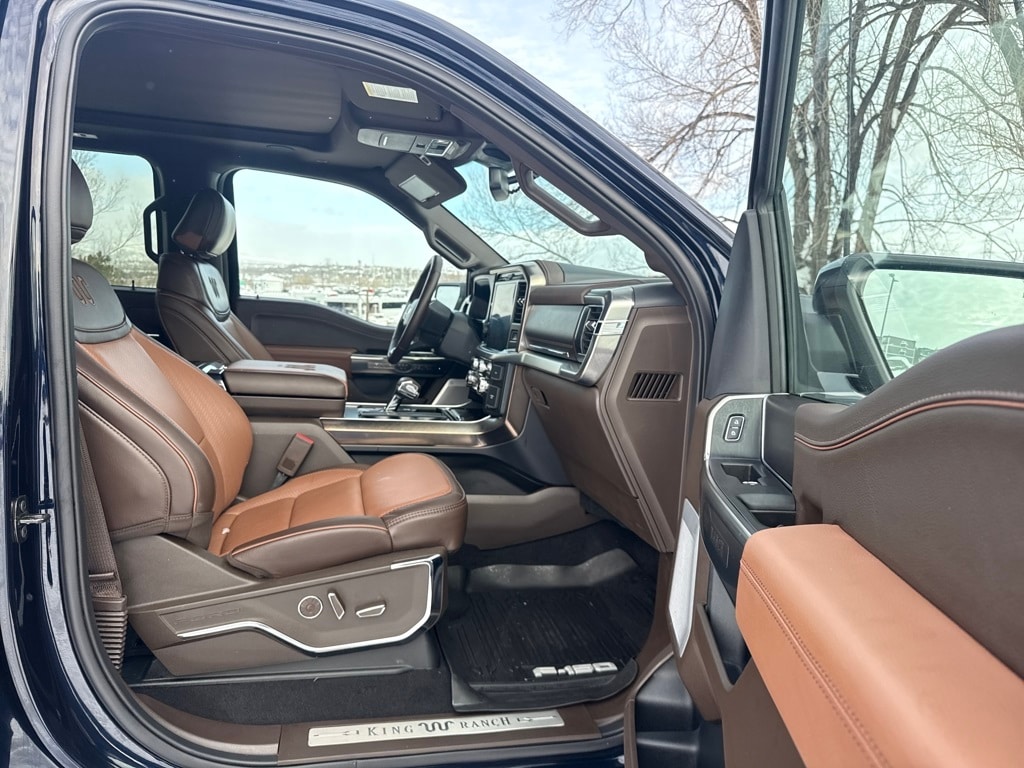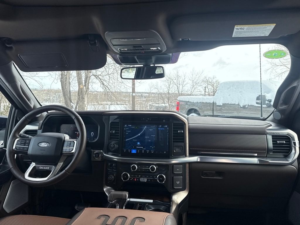 Equipment Group 601A High, FX4 Off-Road Package, Ford Gold Certified Certified, 4WD, 14 Speakers, 4-Wheel Disc Brakes, ABS brakes, Adjustable pedals, Air Conditioning, Alloy wheels, AM/FM radio: SiriusXM with 360L, Auto High-beam Headlights, Auto tilt-away steering wheel, Auto-dimming door mirrors, Auto-dimming Rear-View mirror, Automatic temperature control, Brake assist, Chrome wheels, Compass, Delay-off headlights, Driver door bin, Driver vanity mirror, Dual front impact airbags, Dual front side impact airbags, Electronic Locking w/3.55 Axle Ratio, Electronic Stability Control, Emergency communication system: SYNC 4 911 Assist, Front anti-roll bar, Front Bucket Seats, Front Center Armrest, Front dual zone A/C, Front fog lights, Front License Plate Bracket, Front reading lights, Front wheel independent suspension, Fully automatic headlights, Garage door transmitter, Genuine wood dashboard insert, Heads-Up Display, Heated door mirrors, Heated front seats, Heated rear seats, Heated steering wheel, Illuminated entry, Internet access capable: FordPass Connect 5G, King Ranch Multicontour Leather Bucket Seats, Leather steering wheel, Low tire pressure warning, Memory seat, Navigation system: Connected Navigation, Occupant sensing airbag, Outside temperature display, Overhead airbag, Overhead console, Panic alarm, Passenger door bin, Passenger vanity mirror, Pedal memory, Power door mirrors, Power driver seat, Power moonroof, Power passenger seat, Power steering, Power windows, Radio data system, Radio: B&O Unleashed Sound System by Bang & Olufsen, Rain sensing wipers, Rear reading lights, Rear seat center armrest, Rear step bumper, Rear window defroster, Remote keyless entry, Security system, Speed control, Split folding rear seat, Steering wheel memory, Steering wheel mounted audio controls, SYNC 4 w/Enhanced Voice Recognition, Tachometer, Telescoping steering wheel, Tilt steering wheel, Traction control, Trip computer, Turn signal indicator mirrors, Variably intermittent wipers, Ventilated front seats, Voltmeter, and Wheels: 20" Chrome-Like PVD.
