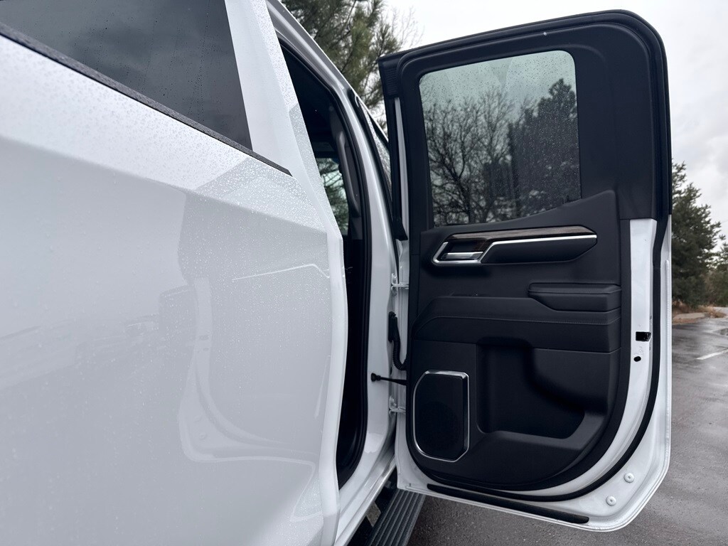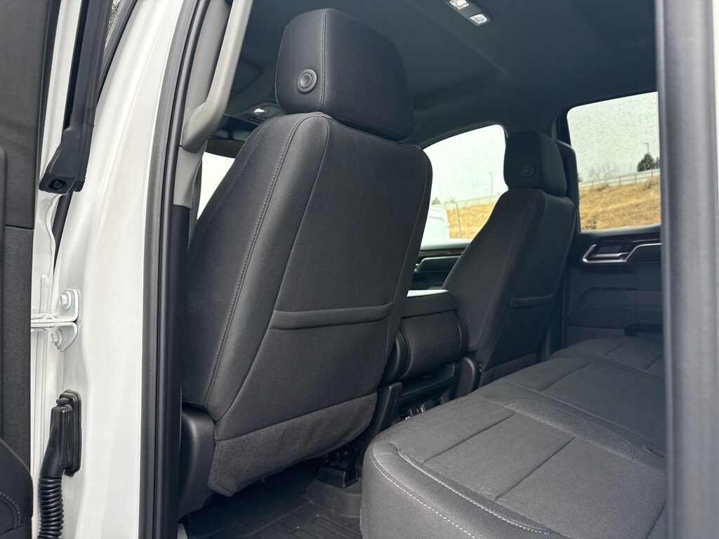 High Capacity Suspension Package, Trailering Package (Hitch Guidance), GM Certified, 8-Speed Automatic, 4WD, Black Cloth, 10-Way Power Driver Seat Adjuster w/Lumbar, 120-Volt Bed Mounted Power Outlet, 120-Volt Interior Power Outlet, 2 Charge/Data USB Ports, 2 Type-C Charge-Only Rear USB Ports, 220 Amp Alternator, 3.42 Rear Axle Ratio, 4-Way Manual Passenger Seat Adjuster, 4-Wheel Disc Brakes, 6 Speakers, 6-Speaker Audio System Feature, ABS brakes, Air Conditioning, Alloy wheels, AM/FM radio: SiriusXM with 360L, Apple CarPlay/Android Auto, Auto High-beam Headlights, Auto-Locking Rear Differential, Automatic Emergency Braking, Automatic temperature control, Body Color Header w/Gloss Black Mesh Grille Bars, Brake assist, Buckle to Drive, Bumpers: body-color, Cloth Seat Trim, Color-Keyed Carpeting Floor Covering, Compass, Deep-Tinted Glass, Delay-off headlights, Driver door bin, Driver vanity mirror, Dual front impact airbags, Dual front side impact airbags, Electric Rear-Window Defogger, Electronic Stability Control, Following Distance Indicator, Forward Collision Alert, Front 40/20/40 Split-Bench Seat, Front anti-roll bar, Front Center Armrest w/Storage, Front dual zone A/C, Front fog lights, Front Frame-Mounted Black Recovery Hooks, Front License Plate Kit, Front Pedestrian Braking, Front reading lights, Front Rubberized-Vinyl Floor Mats, Front wheel independent suspension, Fully automatic headlights, Genuine wood dashboard insert, GMC Connected Access Capable, HD Rear Vision Camera, Heated door mirrors, Heated Driver & Front Outboard Passenger Seating, Heated front seats, Heated steering wheel, Illuminated entry, IntelliBeam Automatic High Beam On/Off, Keyless Open & Start, Lane Keep Assist w/Lane Departure Warning, LED Cargo Area Lighting, Low tire pressure warning, Manual Tilt-Wheel & Telescoping Steering Column, Navigation System, Occupant sensing airbag, OnStar & GMC Connected Services Capable, Outside temperature display, Overhead airbag, Overhead console, Panic alarm, Passenger door bin, Passenger vanity mirror, Power Door Locks, Power door mirrors, Power driver seat, Power Front Windows w/Driver Express Up/Down, Power Front Windows w/Passenger Express Down, Power Rear Windows w/Express Down, Power steering, Power windows, Premium audio system: GMC Infotainment System, Push Button Start, Radio data system, Radio: Premium GMC Infotainment Audio System, Rear reading lights, Rear Rubberized-Vinyl Floor Mats, Rear step bumper, Rear window defroster, Remote keyless entry, Remote Vehicle Starter System, Security system, SiriusXM w/360L, Speed control, Speed-sensing steering, Split folding rear seat, Standard Tailgate, Steering Wheel Audio Controls, Steering wheel mounted audio controls, Tachometer, Telescoping steering wheel, Theft Deterrent System (Unauthorized Entry), Tilt steering wheel, Traction control, Trip computer, Variably intermittent wipers, Voltmeter, Wheels: 20" x 9" High Gloss Black Painted Aluminum, Wi-Fi Hotspot Capable, and Wireless Apple CarPlay/Wireless Android Auto.