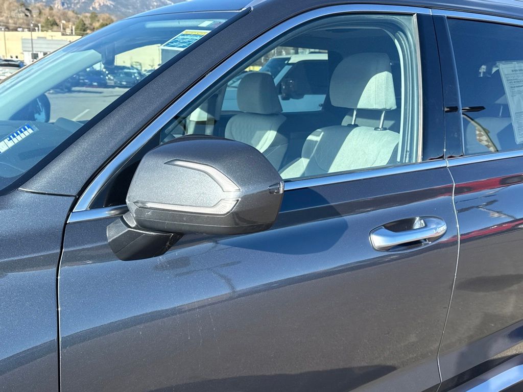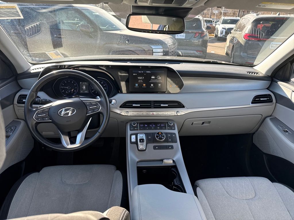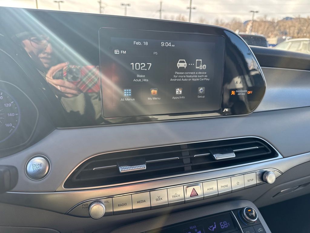 Hyundai Select Used Certified, 3.648 Axle Ratio, 3rd row seats: split-bench, 4-Wheel Disc Brakes, 6 Speakers, ABS brakes, Air Conditioning, Alloy wheels, AM/FM radio, Apple CarPlay & Android Auto, Auto High-beam Headlights, Auto-dimming Rear-View mirror, Automatic temperature control, Brake assist, Bumpers: body-color, Cargo Tray, Carpeted Floor Mats, Delay-off headlights, Driver door bin, Driver vanity mirror, Dual front impact airbags, Dual front side impact airbags, Electronic Stability Control, Four wheel independent suspension, Front anti-roll bar, Front Bucket Seats, Front Center Armrest, Front dual zone A/C, Front reading lights, Fully automatic headlights, Garage door transmitter: HomeLink, Heated door mirrors, Heated Front Bucket Seats, Heated front seats, Illuminated entry, Knee airbag, Low tire pressure warning, Occupant sensing airbag, Outside temperature display, Overhead airbag, Overhead console, Panic alarm, Passenger door bin, Passenger vanity mirror, Power door mirrors, Power driver seat, Power steering, Power Sunroof P5, Power windows, Radio data system, Radio: AM/FM/MP3 Display Audio, Rear air conditioning, Rear anti-roll bar, Rear window defroster, Rear window wiper, Reclining 3rd row seat, Remote keyless entry, Roof Rack Cross Rails, Security system, Speed control, Speed-sensing steering, Split folding rear seat, Spoiler, Stain Resistant Cloth Seat Trim, Steering wheel mounted audio controls, Sunroof, Tachometer, Telescoping steering wheel, Tilt steering wheel, Traction control, Trip computer, Turn signal indicator mirrors, Variably intermittent wipers, Wheel Locks, and Wheels: 18" x 7.5J Machine Finish Alloy.