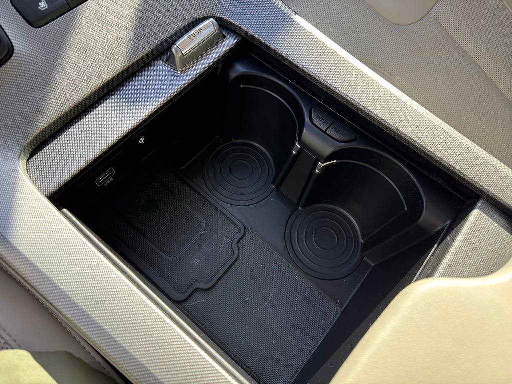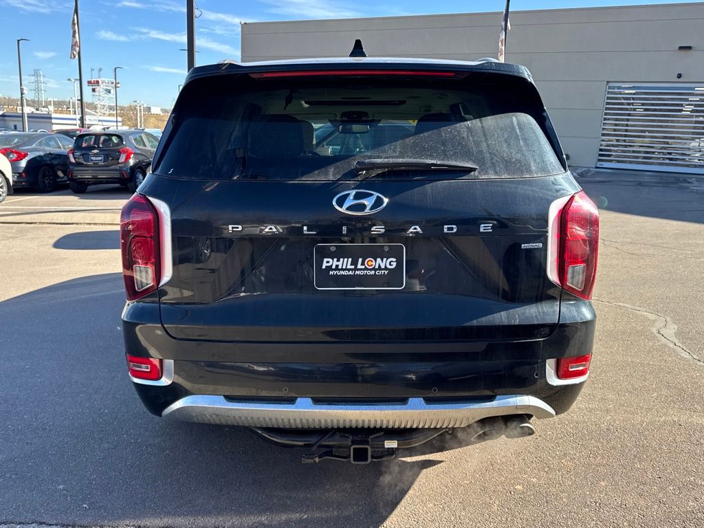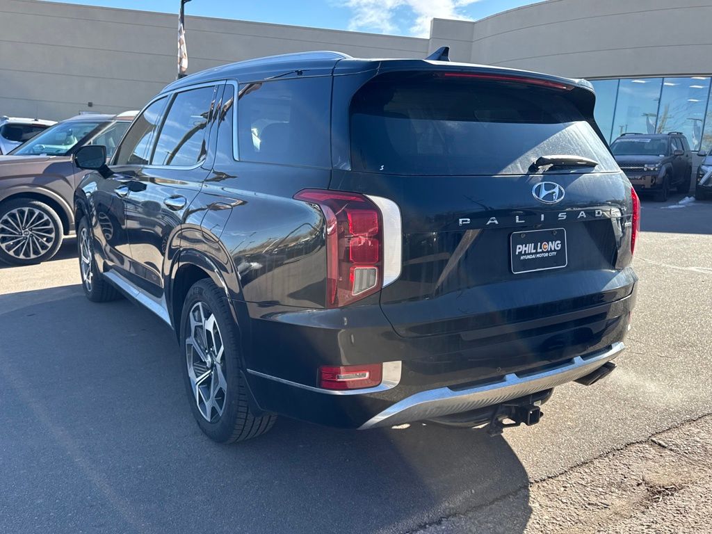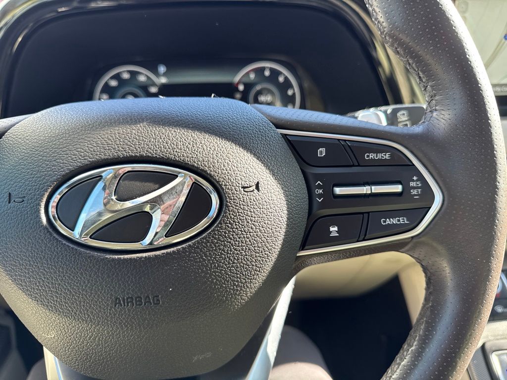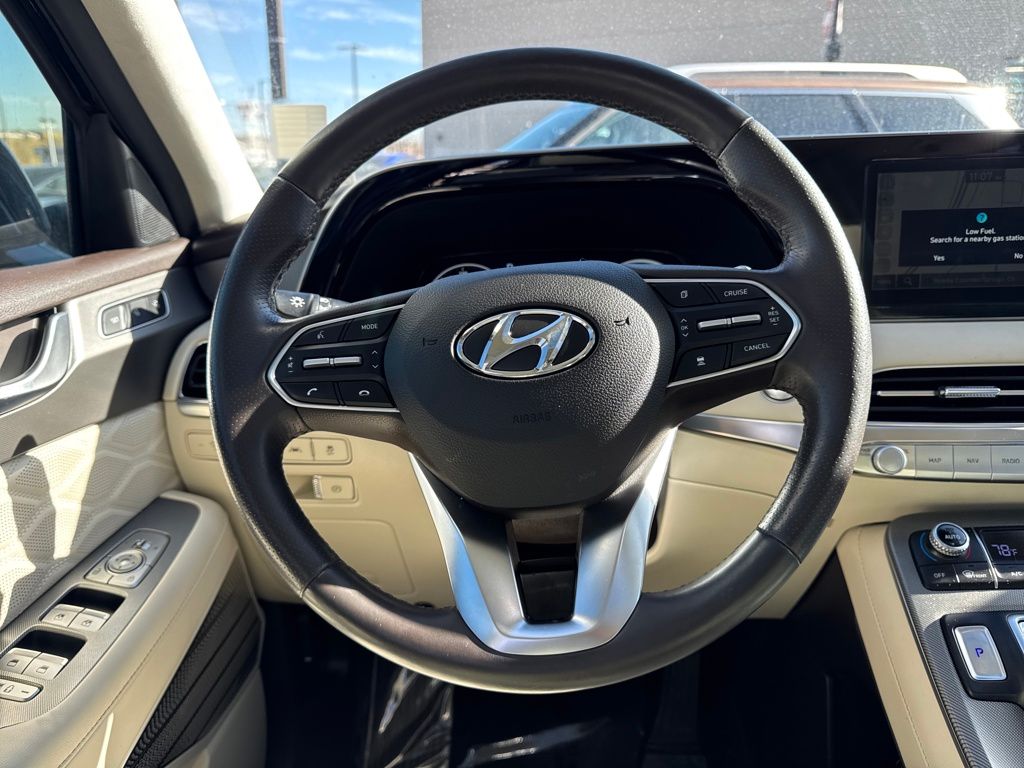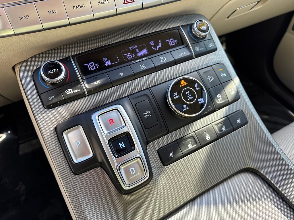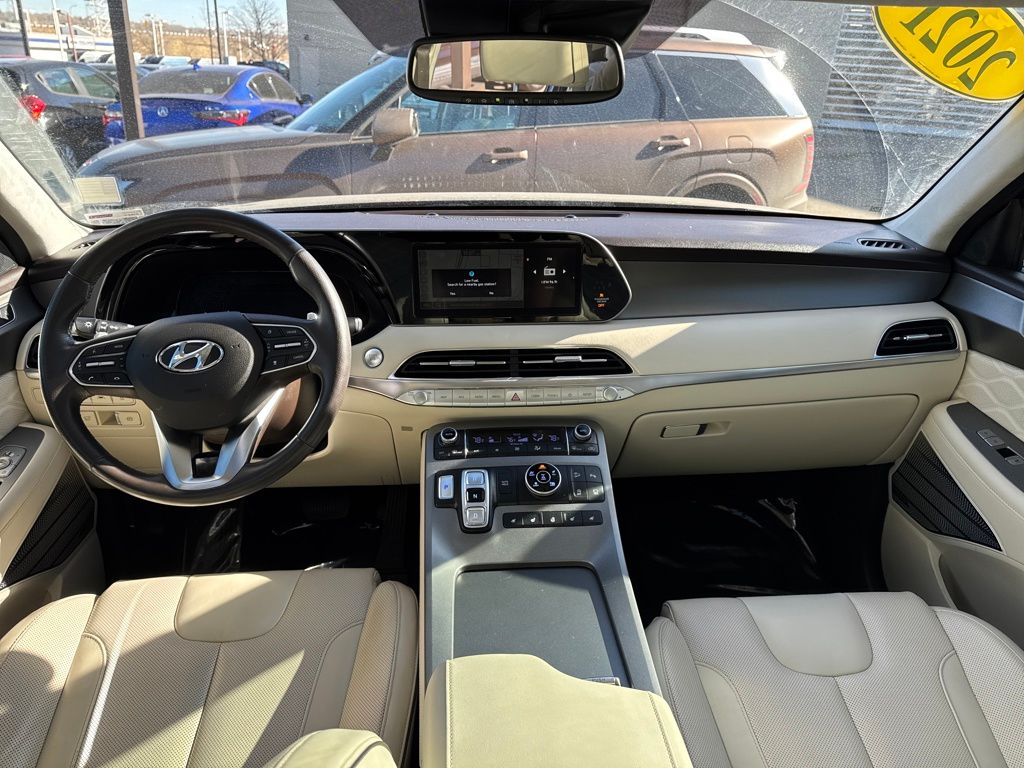 Option Group 01, Hyundai Select Used Certified, 12 Speakers, 3.648 Axle Ratio, 3rd row seats: split-bench, 4-Wheel Disc Brakes, ABS brakes, Air Conditioning, Alloy wheels, AM/FM radio: SiriusXM, Apple CarPlay & Android Auto, Auto High-beam Headlights, Auto-dimming Rear-View mirror, Auto-leveling suspension, Automatic temperature control, Brake assist, Bumper Applique, Bumpers: body-color, Cargo Net, Cargo Tray, Carpeted Floor Mats, Compass, Delay-off headlights, Driver door bin, Driver vanity mirror, Dual front impact airbags, Dual front side impact airbags, Electronic Stability Control, Emergency communication system: Blue Link Connected Car Service (3-year complimentary subscription), Four wheel independent suspension, Front anti-roll bar, Front Bucket Seats, Front Center Armrest, Front dual zone A/C, Front reading lights, Fully automatic headlights, Garage door transmitter: HomeLink, harman/kardon® Speakers, Heads-Up Display, Heated & Ventilated Front Bucket Seats, Heated door mirrors, Heated front seats, Heated rear seats, Heated steering wheel, Illuminated entry, Knee airbag, Low tire pressure warning, Memory seat, Mudguards, Navigation System, Occupant sensing airbag, Outside temperature display, Overhead airbag, Overhead console, Panic alarm, Passenger door bin, Passenger vanity mirror, Power door mirrors, Power driver seat, Power Liftgate, Power moonroof, Power passenger seat, Power steering, Power windows, Premium Nappa Leather Seat Trim, Radio data system, Radio: AM/FM/MP3 Premium Audio System, Rain sensing wipers, Rear air conditioning, Rear anti-roll bar, Rear reading lights, Rear window defroster, Rear window wiper, Reclining 3rd row seat, Remote keyless entry, Security system, Speed control, Speed-sensing steering, Split folding rear seat, Spoiler, Steering wheel mounted audio controls, Tachometer, Telescoping steering wheel, Tilt steering wheel, Tow Hitch, Traction control, Trip computer, Turn signal indicator mirrors, Variably intermittent wipers, Ventilated front seats, Ventilated rear seats, and Wheels: 20" x 7.5J Calligraphy Exclusive Alloy.