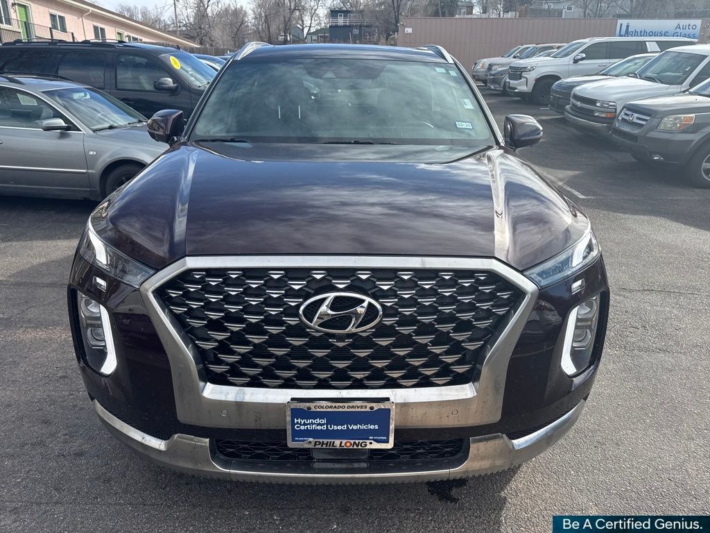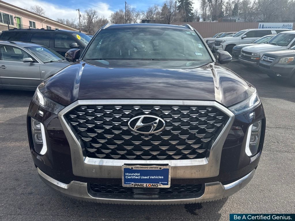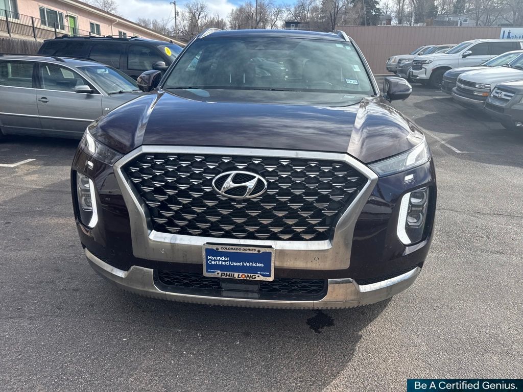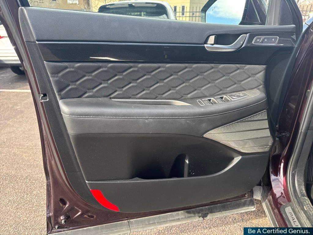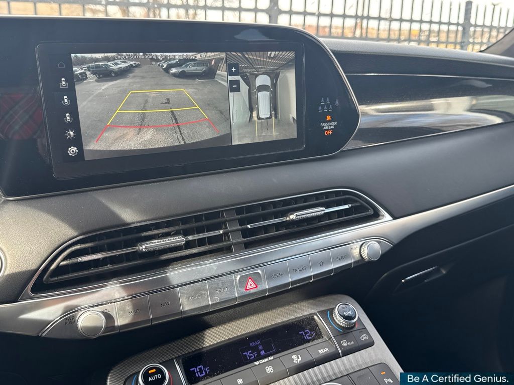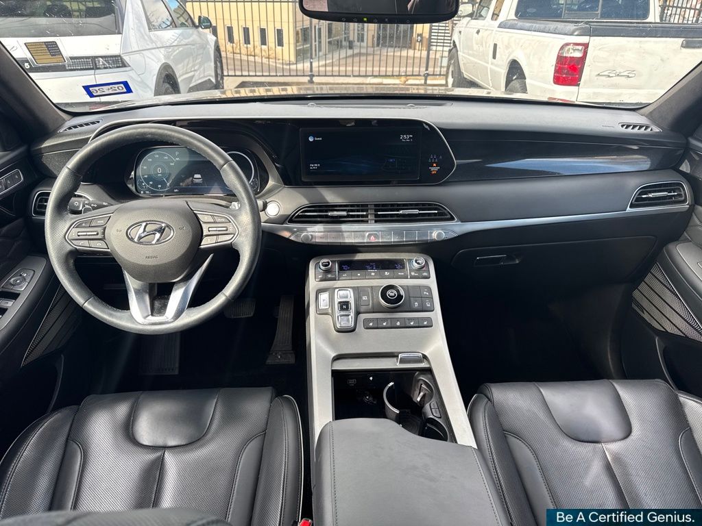 Option Group 01, Hyundai Certified Used Vehicles Certified, 12 Speakers, 3.648 Axle Ratio, 3rd row seats: split-bench, 4-Wheel Disc Brakes, ABS brakes, Air Conditioning, Alloy wheels, AM/FM radio: SiriusXM, Apple CarPlay & Android Auto, Auto High-beam Headlights, Auto-dimming Rear-View mirror, Auto-leveling suspension, Automatic temperature control, Brake assist, Bumpers: body-color, Cargo Net, Carpeted Floor Mats, Compass, Delay-off headlights, Driver door bin, Driver vanity mirror, Dual front impact airbags, Dual front side impact airbags, Electronic Stability Control, Emergency communication system: Blue Link Connected Car Service (3-year complimentary subscription), Four wheel independent suspension, Front anti-roll bar, Front Bucket Seats, Front Center Armrest, Front dual zone A/C, Front reading lights, Fully automatic headlights, Garage door transmitter: HomeLink, harman/kardon® Speakers, Heads-Up Display, Heated & Ventilated Front Bucket Seats, Heated door mirrors, Heated front seats, Heated rear seats, Heated steering wheel, Illuminated entry, Knee airbag, Low tire pressure warning, Memory seat, Navigation System, Occupant sensing airbag, Outside temperature display, Overhead airbag, Overhead console, Panic alarm, Passenger door bin, Passenger vanity mirror, Power door mirrors, Power driver seat, Power Liftgate, Power moonroof, Power passenger seat, Power steering, Power windows, Premium Nappa Leather Seat Trim, Radio data system, Radio: AM/FM/MP3 Premium Audio System, Rain sensing wipers, Rear air conditioning, Rear anti-roll bar, Rear audio controls, Rear reading lights, Rear window defroster, Rear window wiper, Reclining 3rd row seat, Remote keyless entry, Security system, Speed control, Speed-sensing steering, Split folding rear seat, Spoiler, Steering wheel mounted audio controls, Tachometer, Telescoping steering wheel, Tilt steering wheel, Traction control, Trip computer, Turn signal indicator mirrors, Variably intermittent wipers, Ventilated front seats, Ventilated rear seats, Wheel Locks, and Wheels: 20" x 7.5J Calligraphy Exclusive Alloy.