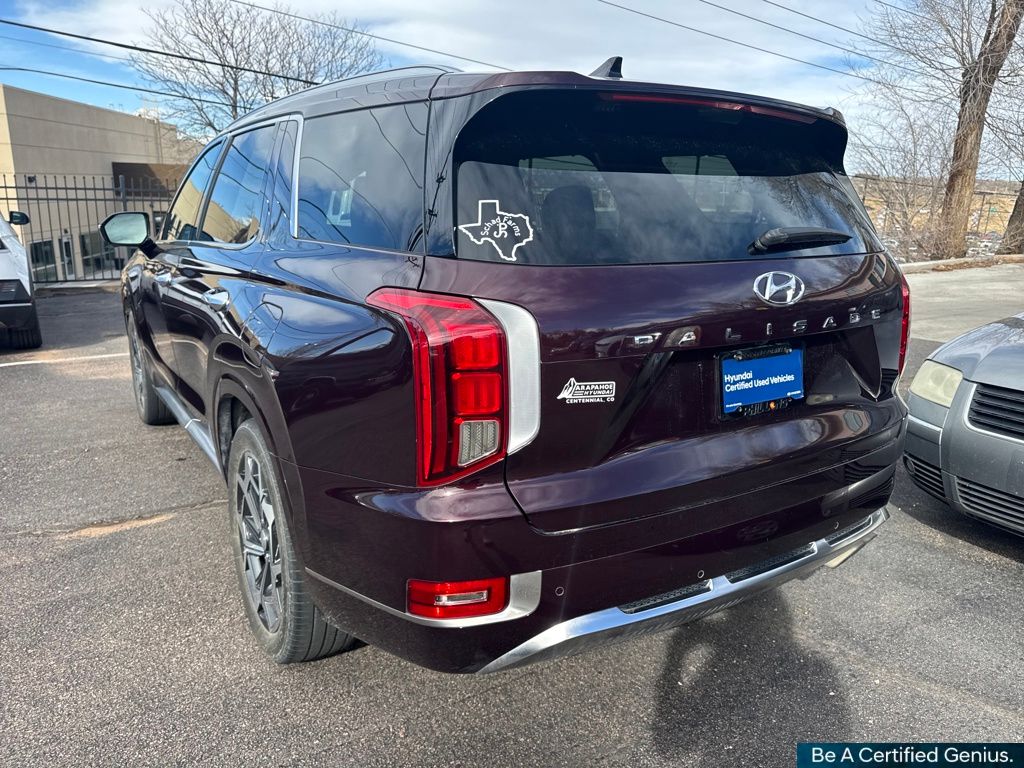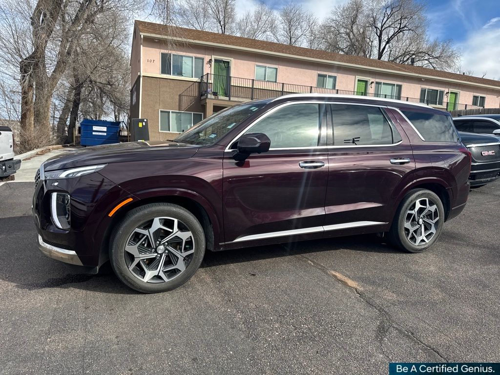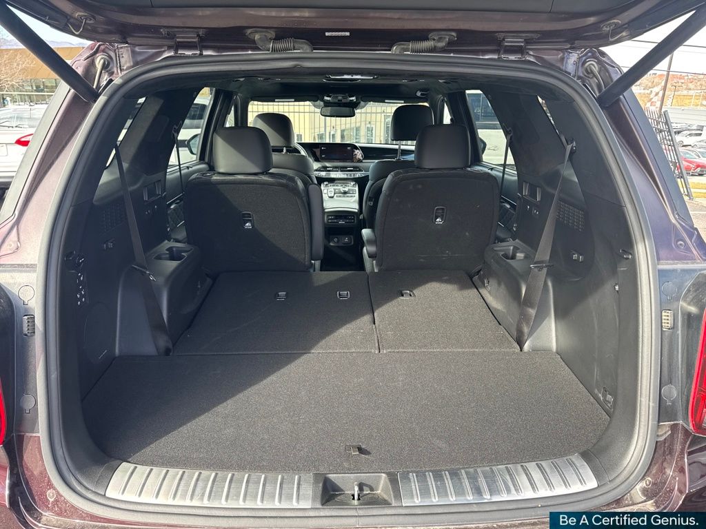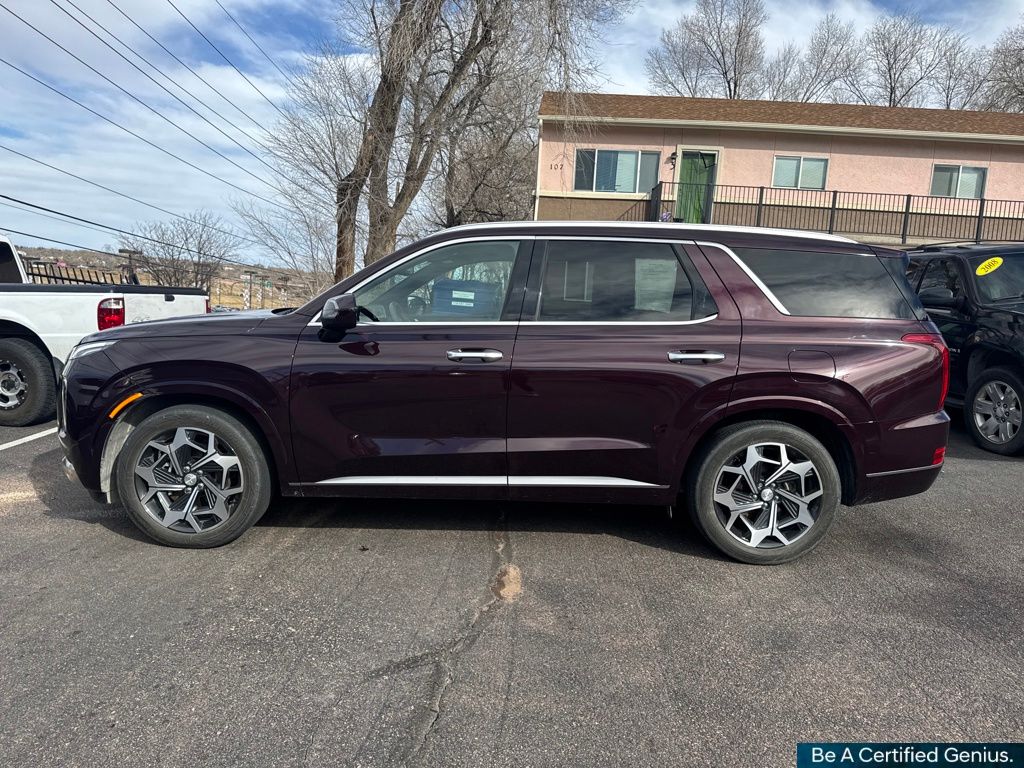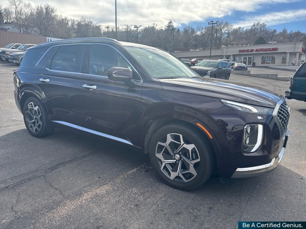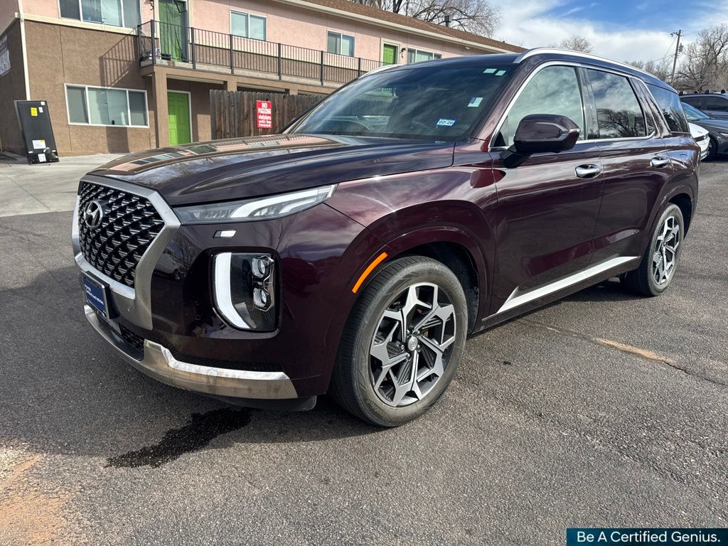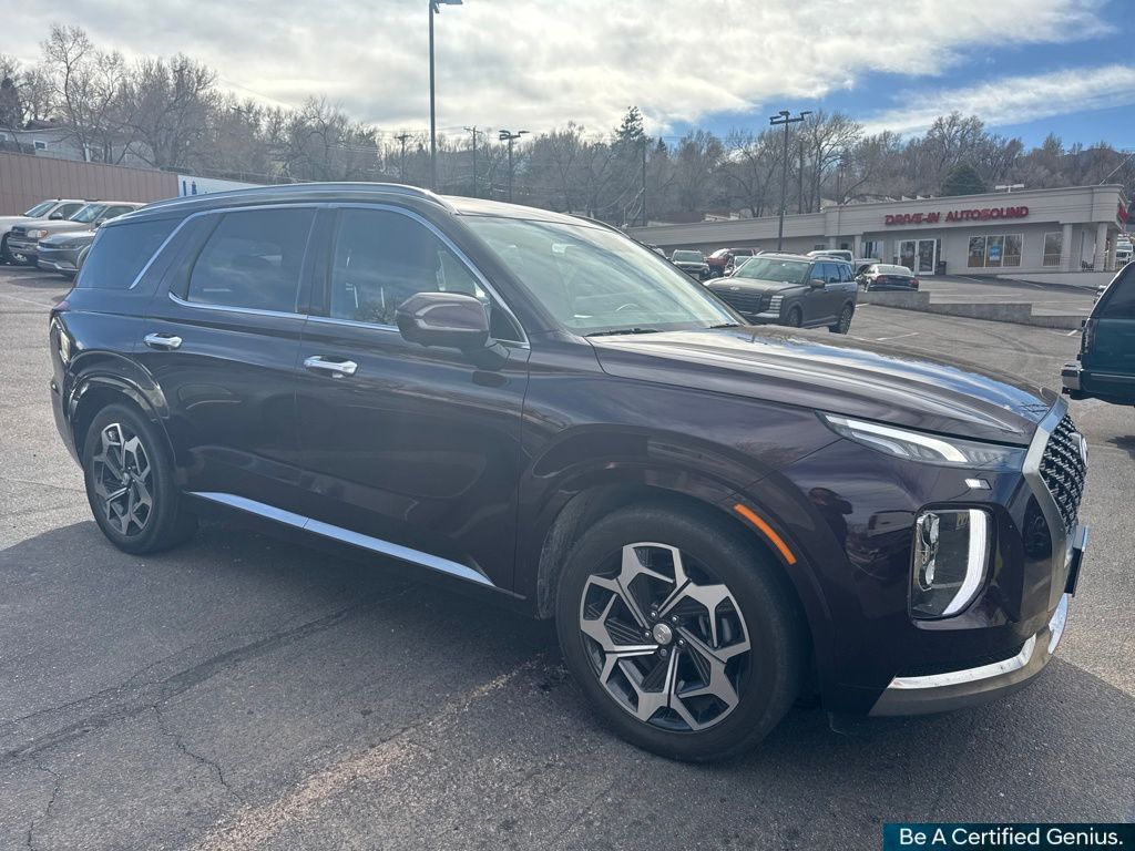 Option Group 01, Hyundai Certified Used Vehicles Certified, 12 Speakers, 3.648 Axle Ratio, 3rd row seats: split-bench, 4-Wheel Disc Brakes, ABS brakes, Air Conditioning, Alloy wheels, AM/FM radio: SiriusXM, Apple CarPlay & Android Auto, Auto High-beam Headlights, Auto-dimming Rear-View mirror, Auto-leveling suspension, Automatic temperature control, Brake assist, Bumpers: body-color, Cargo Net, Carpeted Floor Mats, Compass, Delay-off headlights, Driver door bin, Driver vanity mirror, Dual front impact airbags, Dual front side impact airbags, Electronic Stability Control, Emergency communication system: Blue Link Connected Car Service (3-year complimentary subscription), Four wheel independent suspension, Front anti-roll bar, Front Bucket Seats, Front Center Armrest, Front dual zone A/C, Front reading lights, Fully automatic headlights, Garage door transmitter: HomeLink, harman/kardon® Speakers, Heads-Up Display, Heated & Ventilated Front Bucket Seats, Heated door mirrors, Heated front seats, Heated rear seats, Heated steering wheel, Illuminated entry, Knee airbag, Low tire pressure warning, Memory seat, Navigation System, Occupant sensing airbag, Outside temperature display, Overhead airbag, Overhead console, Panic alarm, Passenger door bin, Passenger vanity mirror, Power door mirrors, Power driver seat, Power Liftgate, Power moonroof, Power passenger seat, Power steering, Power windows, Premium Nappa Leather Seat Trim, Radio data system, Radio: AM/FM/MP3 Premium Audio System, Rain sensing wipers, Rear air conditioning, Rear anti-roll bar, Rear audio controls, Rear reading lights, Rear window defroster, Rear window wiper, Reclining 3rd row seat, Remote keyless entry, Security system, Speed control, Speed-sensing steering, Split folding rear seat, Spoiler, Steering wheel mounted audio controls, Tachometer, Telescoping steering wheel, Tilt steering wheel, Traction control, Trip computer, Turn signal indicator mirrors, Variably intermittent wipers, Ventilated front seats, Ventilated rear seats, Wheel Locks, and Wheels: 20" x 7.5J Calligraphy Exclusive Alloy.