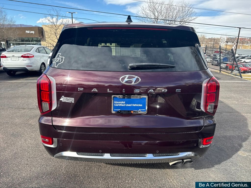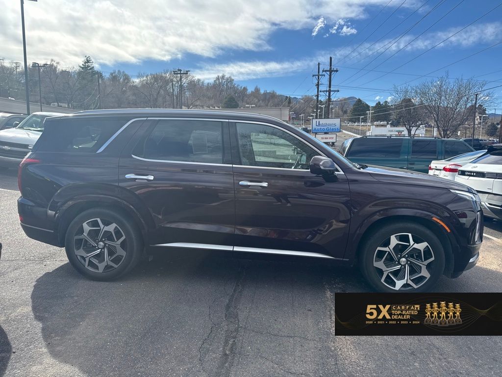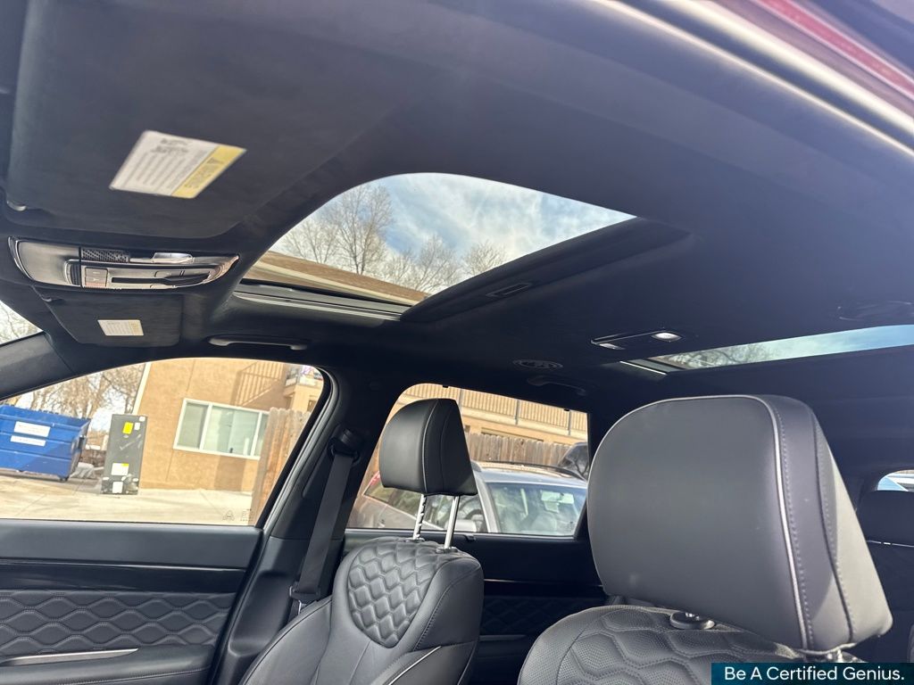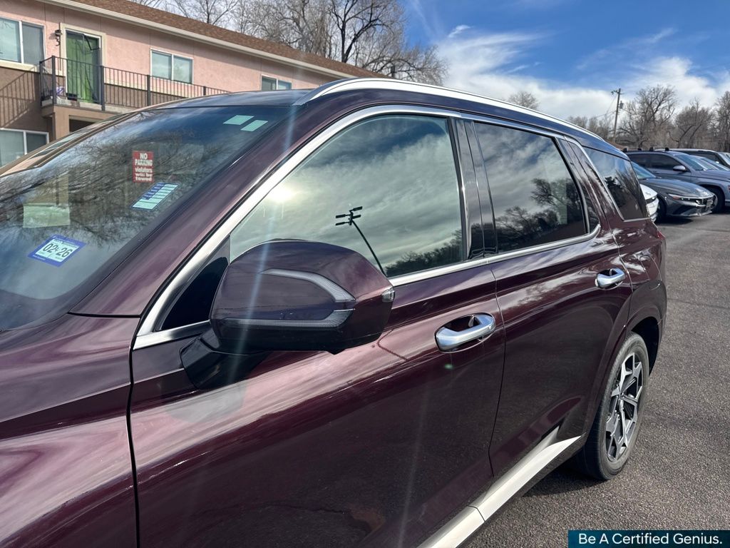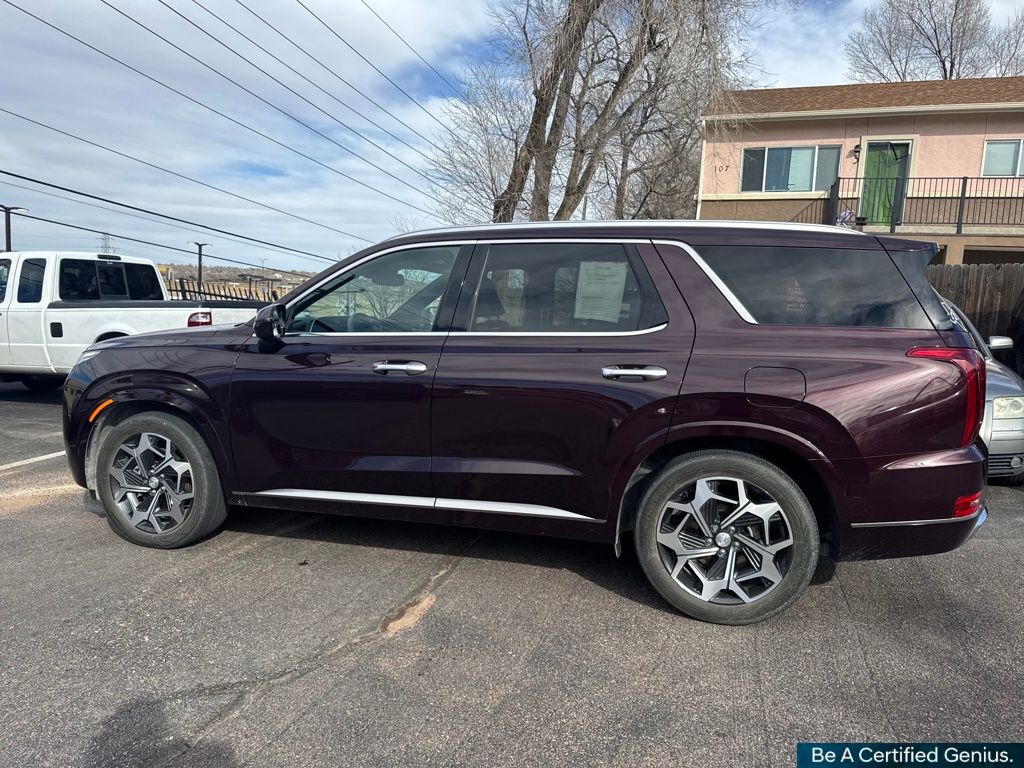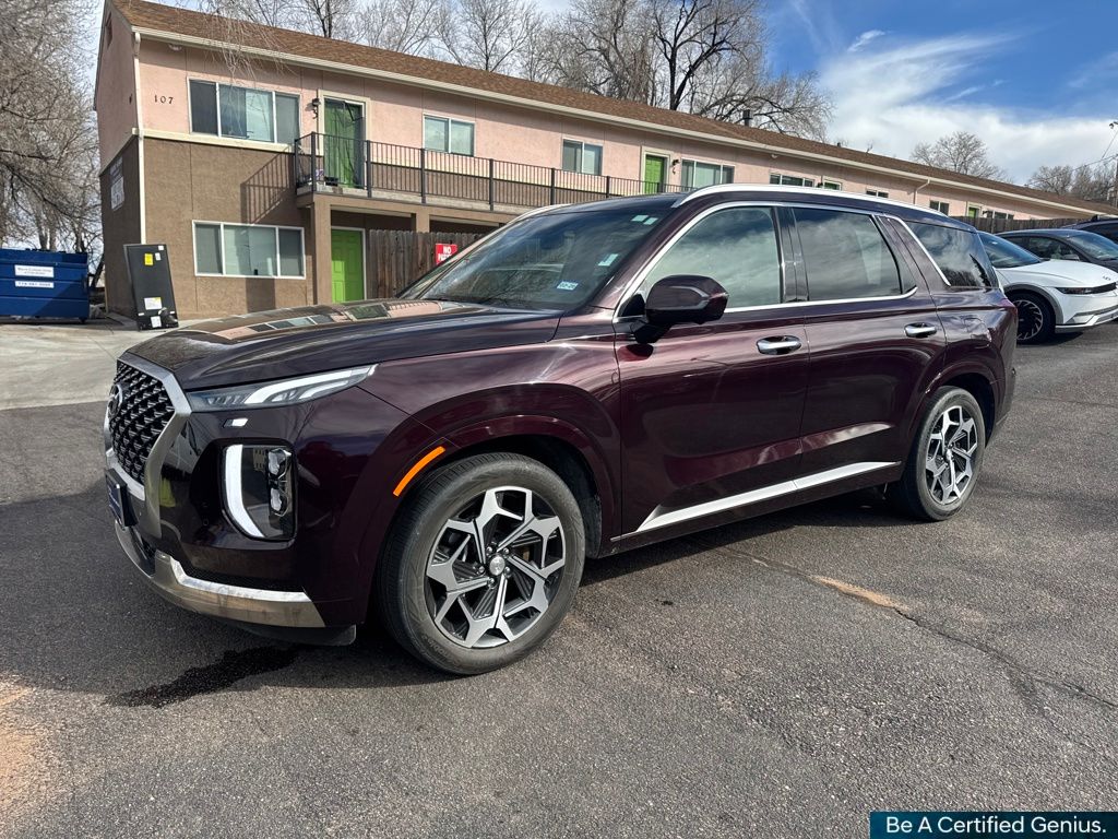 Option Group 01, Hyundai Certified Used Vehicles Certified, 12 Speakers, 3.648 Axle Ratio, 3rd row seats: split-bench, 4-Wheel Disc Brakes, ABS brakes, Air Conditioning, Alloy wheels, AM/FM radio: SiriusXM, Apple CarPlay & Android Auto, Auto High-beam Headlights, Auto-dimming Rear-View mirror, Auto-leveling suspension, Automatic temperature control, Brake assist, Bumpers: body-color, Cargo Net, Carpeted Floor Mats, Compass, Delay-off headlights, Driver door bin, Driver vanity mirror, Dual front impact airbags, Dual front side impact airbags, Electronic Stability Control, Emergency communication system: Blue Link Connected Car Service (3-year complimentary subscription), Four wheel independent suspension, Front anti-roll bar, Front Bucket Seats, Front Center Armrest, Front dual zone A/C, Front reading lights, Fully automatic headlights, Garage door transmitter: HomeLink, harman/kardon® Speakers, Heads-Up Display, Heated & Ventilated Front Bucket Seats, Heated door mirrors, Heated front seats, Heated rear seats, Heated steering wheel, Illuminated entry, Knee airbag, Low tire pressure warning, Memory seat, Navigation System, Occupant sensing airbag, Outside temperature display, Overhead airbag, Overhead console, Panic alarm, Passenger door bin, Passenger vanity mirror, Power door mirrors, Power driver seat, Power Liftgate, Power moonroof, Power passenger seat, Power steering, Power windows, Premium Nappa Leather Seat Trim, Radio data system, Radio: AM/FM/MP3 Premium Audio System, Rain sensing wipers, Rear air conditioning, Rear anti-roll bar, Rear audio controls, Rear reading lights, Rear window defroster, Rear window wiper, Reclining 3rd row seat, Remote keyless entry, Security system, Speed control, Speed-sensing steering, Split folding rear seat, Spoiler, Steering wheel mounted audio controls, Tachometer, Telescoping steering wheel, Tilt steering wheel, Traction control, Trip computer, Turn signal indicator mirrors, Variably intermittent wipers, Ventilated front seats, Ventilated rear seats, Wheel Locks, and Wheels: 20" x 7.5J Calligraphy Exclusive Alloy.