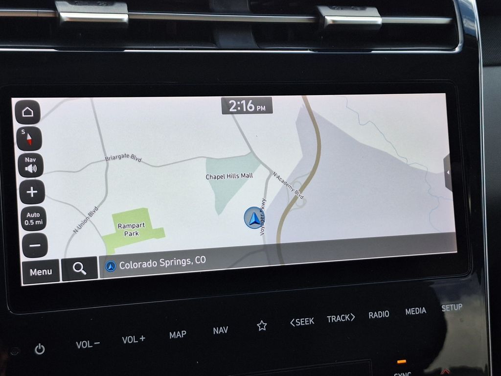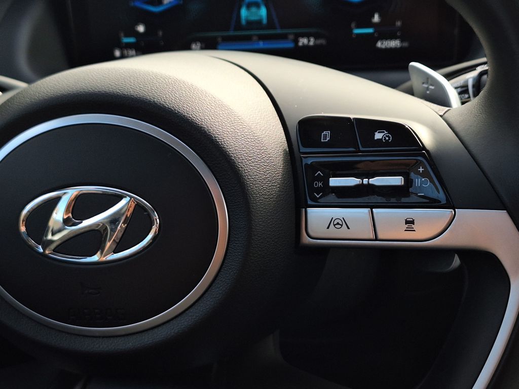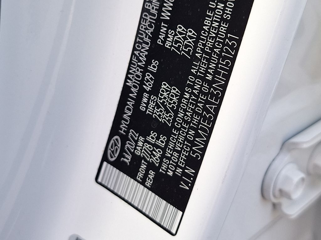 Cargo Package (Cargo Net, Cargo Tray, and First Aid Kit), Option Group 01, Hyundai Certified, 3.648 Axle Ratio, 4-Wheel Disc Brakes, 8 Speakers, ABS brakes, Air Conditioning, Alloy wheels, AM/FM radio: SiriusXM, Apple CarPlay & Android Auto, Auto High-beam Headlights, Auto-dimming Rear-View mirror, Automatic temperature control, Brake assist, Bumpers: body-color, Cargo Cover, Carpeted Floor Mats, Delay-off headlights, Driver door bin, Driver vanity mirror, Dual front impact airbags, Dual front side impact airbags, Electronic Stability Control, Emergency communication system: Blue Link Connected Car Service (3-year complimentary subscription), Four wheel independent suspension, Front and Rear Mudguards, Front anti-roll bar, Front Bucket Seats, Front Center Armrest, Front dual zone A/C, Front reading lights, Fully automatic headlights, Garage door transmitter: HomeLink, Heated & Ventilated Front Bucket Seats, Heated door mirrors, Heated front seats, Heated rear seats, Heated steering wheel, Illuminated entry, Leather Seat Trim, Low tire pressure warning, Memory seat, Navigation System, Occupant sensing airbag, Outside temperature display, Overhead airbag, Overhead console, Panic alarm, Passenger door bin, Passenger vanity mirror, Power door mirrors, Power driver seat, Power Liftgate, Power moonroof, Power passenger seat, Power steering, Power windows, Radio data system, Radio: Bose Premium w/AM/FM/HD/SiriusXM Audio System, Rain sensing wipers, Rear anti-roll bar, Rear reading lights, Rear seat center armrest, Rear window defroster, Rear window wiper, Remote keyless entry, Roof rack: rails only, Security system, Speed control, Split folding rear seat, Spoiler, Steering wheel mounted audio controls, Tachometer, Telescoping steering wheel, Tilt steering wheel, Traction control, Trip computer, Turn signal indicator mirrors, Variably intermittent wipers, Ventilated front seats, and Wheels: 19" x 7.5J" Machine-Face Finish Alloy.