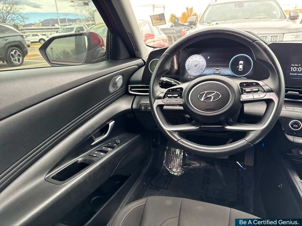 Convenience Package (2nd Row USB Charge Port, Electronic Parking Brake, Forward Collision Avoidance Assist, Full 10.25" LCD TFT Cluster, Heated Front Seats, Heated Outside Mirrors, Leather-Wrapped Steering Wheel, LED Interior Lights, Option Group 02, Radio: AM/FM/HD/SiriusXM Audio System, Smart Cruise Control w/Stop & Go, Wheels: 17" x 7.0J Machine Finish Alloy, and Wireless Charging Pad), Hyundai Certified Used Vehicles Certified, 16" x 6.5J Alloy Wheels, 4-Wheel Disc Brakes, 6 Speakers, ABS brakes, Air Conditioning, Alloy wheels, AM/FM radio: SiriusXM, Apple CarPlay & Android Auto, Auto High-beam Headlights, Automatic temperature control, Brake assist, Bumpers: body-color, Carpeted Floor Mats, Cloth Seat Trim, Delay-off headlights, Driver door bin, Driver vanity mirror, Dual front impact airbags, Dual front side impact airbags, Electronic Stability Control, Emergency communication system: Blue Link Connected Car Service (3-year complimentary subscription), Exterior Parking Camera Rear, Front anti-roll bar, Front Bucket Seats, Front Center Armrest, Front dual zone A/C, Front reading lights, Front wheel independent suspension, Fully automatic headlights, Illuminated entry, Interior Light Kit, Low tire pressure warning, Occupant sensing airbag, Outside temperature display, Overhead airbag, Overhead console, Panic alarm, Passenger door bin, Passenger vanity mirror, Power door mirrors, Power steering, Power windows, Radio: AM/FM/HD/SiriusXM Display Audio, Rear Bumper Applique, Rear window defroster, Remote keyless entry, Security system, Speed control, Speed-sensing steering, Steering wheel mounted audio controls, Tachometer, Telescoping steering wheel, Tilt steering wheel, Traction control, Trip computer, Variably intermittent wipers, and Wheel Locks.