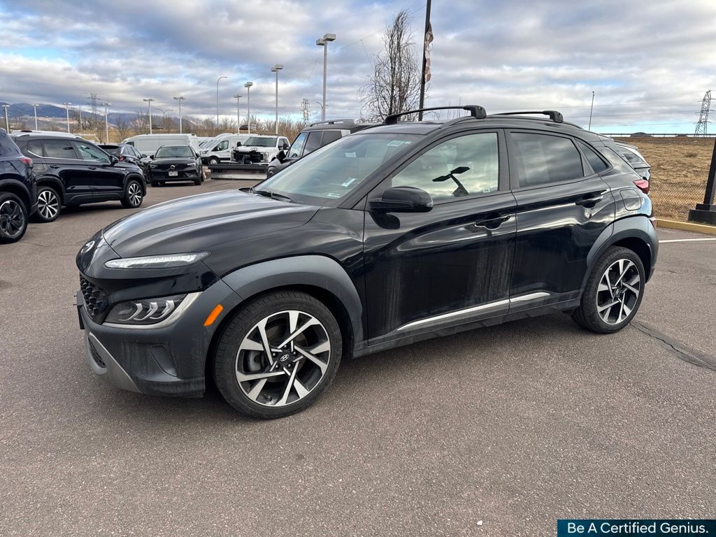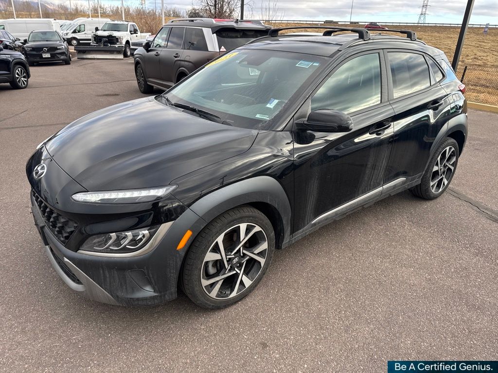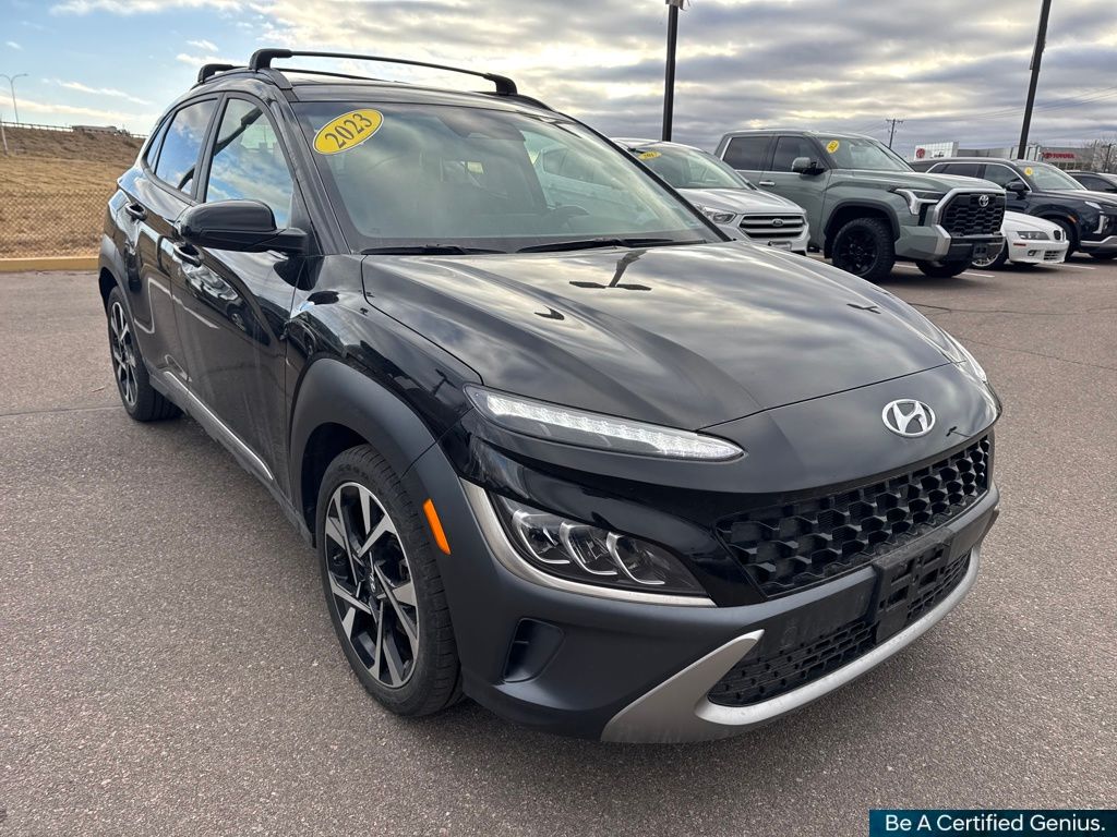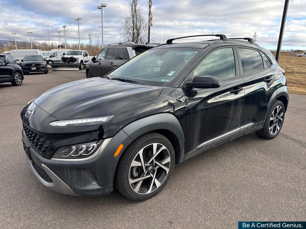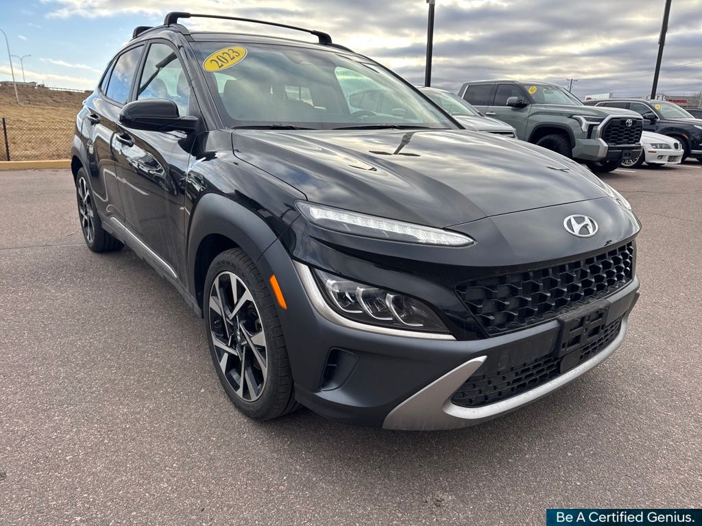 Certified. Ultra Black Pearl 2023 Hyundai Kona Limited AWD Shiftronic I4 27/32 City/Highway MPG
