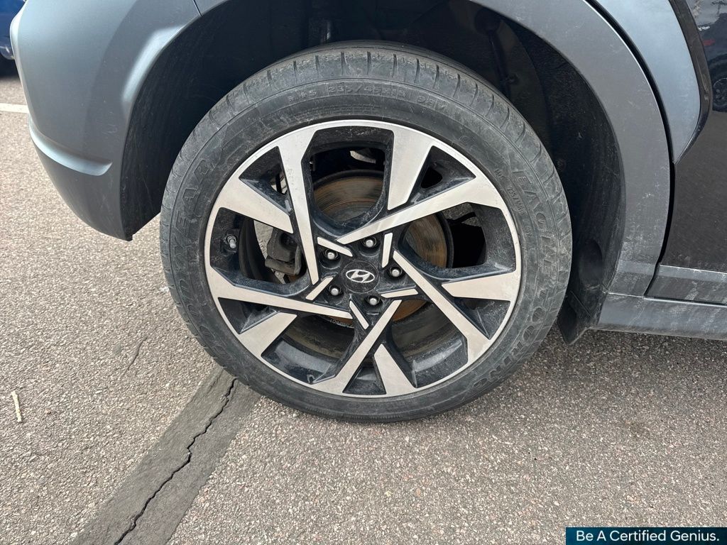 Option Group 01, Hyundai Certified Used Vehicles Certified, 18" x 7.5J Alloy Wheels, 3.174 Axle Ratio, 4-Wheel Disc Brakes, 8 Speakers, ABS brakes, Air Conditioning, Alloy wheels, AM/FM radio: SiriusXM, Apple CarPlay & Android Auto, Auto High-beam Headlights, Auto-dimming Rear-View mirror, Automatic temperature control, Brake assist, Bumpers: body-color, Cargo Net, Cargo Tray, Carpeted Floor Mats, Delay-off headlights, Driver door bin, Driver vanity mirror, Dual front impact airbags, Dual front side impact airbags, Electronic Stability Control, Emergency communication system: Blue Link Connected Car Service (3-year complimentary subscription), Exterior Parking Camera Rear, Four wheel independent suspension, Front anti-roll bar, Front Bucket Seats, Front Center Armrest, Front reading lights, Fully automatic headlights, Garage door transmitter: HomeLink, harman/kardon® Speakers, Heated door mirrors, Heated Front Bucket Seats, Heated front seats, Illuminated entry, Leather Seat Trim, Leather Shift Knob, Leather steering wheel, Low tire pressure warning, Navigation System, Occupant sensing airbag, Outside temperature display, Overhead airbag, Overhead console, Panic alarm, Passenger door bin, Passenger vanity mirror, Power door mirrors, Power driver seat, Power moonroof, Power steering, Power windows, Radio: harman/kardon Premium Audio System, Rain sensing wipers, Rear anti-roll bar, Rear seat center armrest, Rear window defroster, Rear window wiper, Remote keyless entry, Roof Rack Cross Rails (DISC), Security system, Speed control, Speed-sensing steering, Split folding rear seat, Spoiler, Steering wheel mounted audio controls, Tachometer, Telescoping steering wheel, Tilt steering wheel, Traction control, Trip computer, Turn signal indicator mirrors, and Variably intermittent wipers.
