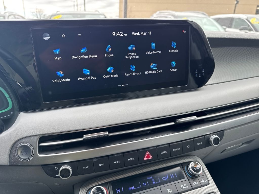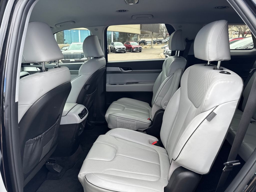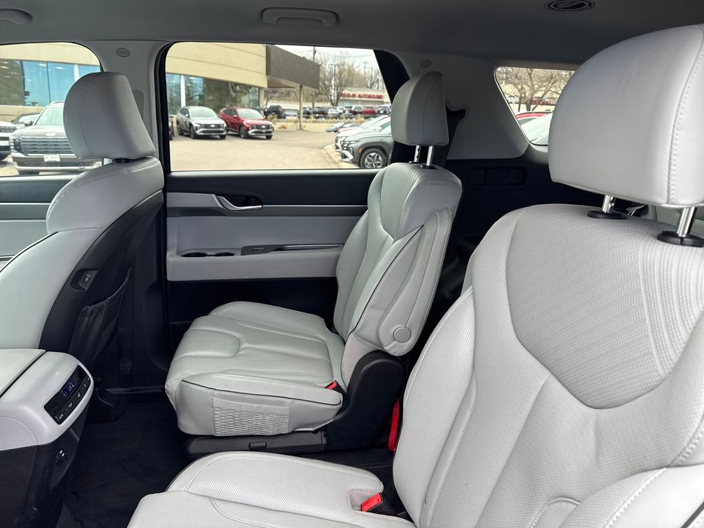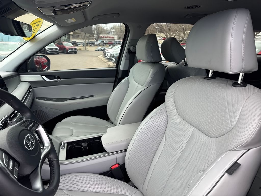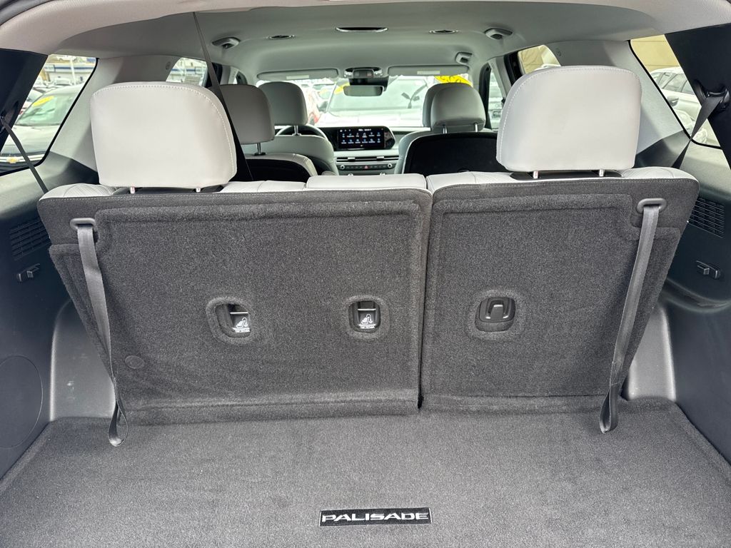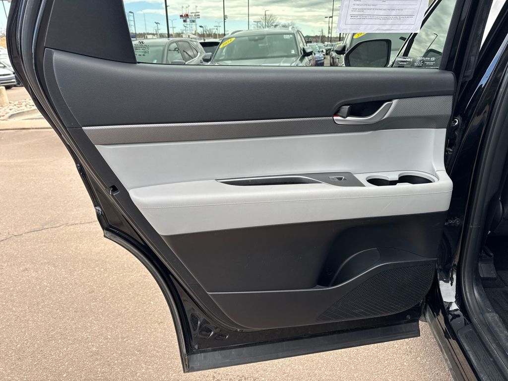 Option Group 01, Hyundai Certified Used Vehicles Certified, 3.648 Axle Ratio, 3rd row seats: split-bench, 4-Wheel Disc Brakes, 6 Speakers, ABS brakes, Air Conditioning, Alloy wheels, AM/FM radio: SiriusXM, Apple CarPlay & Android Auto, Auto High-beam Headlights, Auto-dimming door mirrors, Auto-dimming Rear-View mirror, Automatic temperature control, Brake assist, Bumpers: body-color, Cargo Cover/Screen, Cargo Net, Cargo Tray, Carpeted Floor Mats, Delay-off headlights, Driver door bin, Driver vanity mirror, Dual front impact airbags, Dual front side impact airbags, Electronic Stability Control, Emergency communication system: Blue Link Connected Car Service (3-year complimentary subscription), Exterior Parking Camera Rear, Four wheel independent suspension, Front anti-roll bar, Front Bucket Seats, Front Center Armrest, Front dual zone A/C, Front reading lights, Fully automatic headlights, Garage door transmitter: HomeLink, H-Tex Leatherette Seat Trim, Heated door mirrors, Heated Front Bucket Seats, Heated front seats, Illuminated entry, Knee airbag, Low tire pressure warning, Navigation System, Occupant sensing airbag, Outside temperature display, Overhead airbag, Overhead console, Panic alarm, Passenger door bin, Passenger vanity mirror, Power door mirrors, Power driver seat, Power Liftgate, Power passenger seat, Power steering, Power windows, Radio data system, Radio: AM/FM/MP3 Audio System, Rear air conditioning, Rear anti-roll bar, Rear audio controls, Rear Bumper Applique, Rear reading lights, Rear side impact airbag, Rear window defroster, Rear window wiper, Reclining 3rd row seat, Remote keyless entry, Security system, Speed control, Speed-sensing steering, Splash Trim, Split folding rear seat, Spoiler, Steering wheel mounted audio controls, Tachometer, Telescoping steering wheel, Tilt steering wheel, Traction control, Trip computer, Turn signal indicator mirrors, Variably intermittent wipers, Wheel Locks, and Wheels: 18" x 7.5J Machine-Faced Alloy.