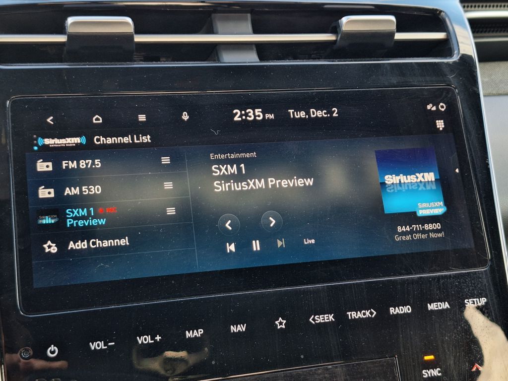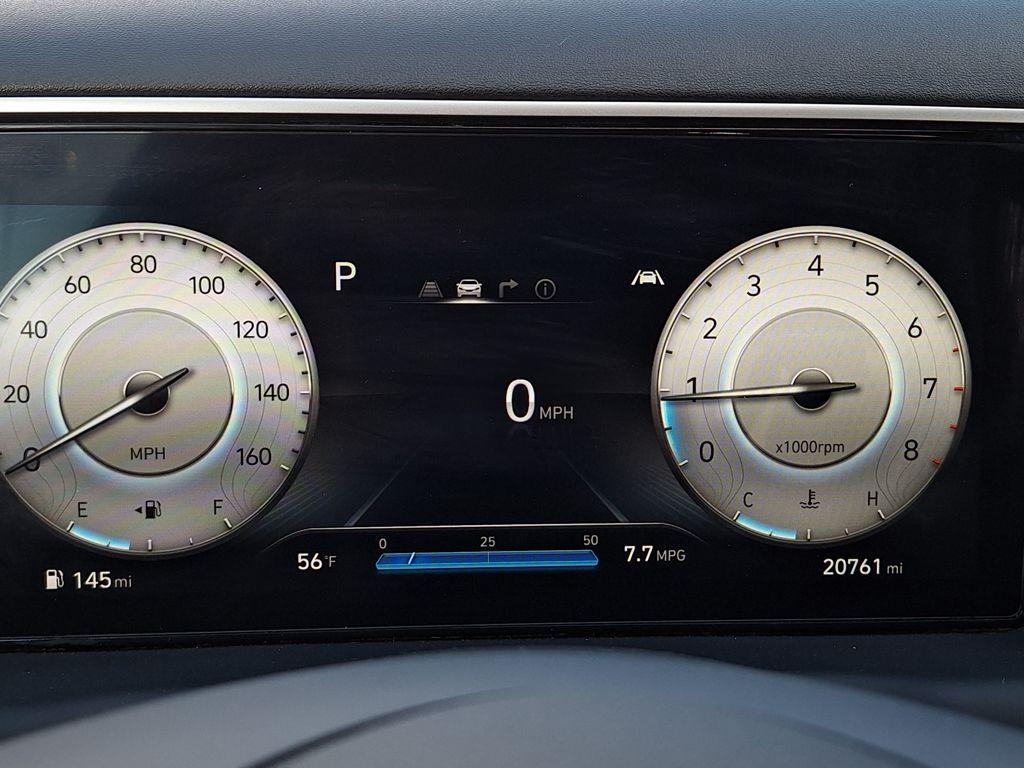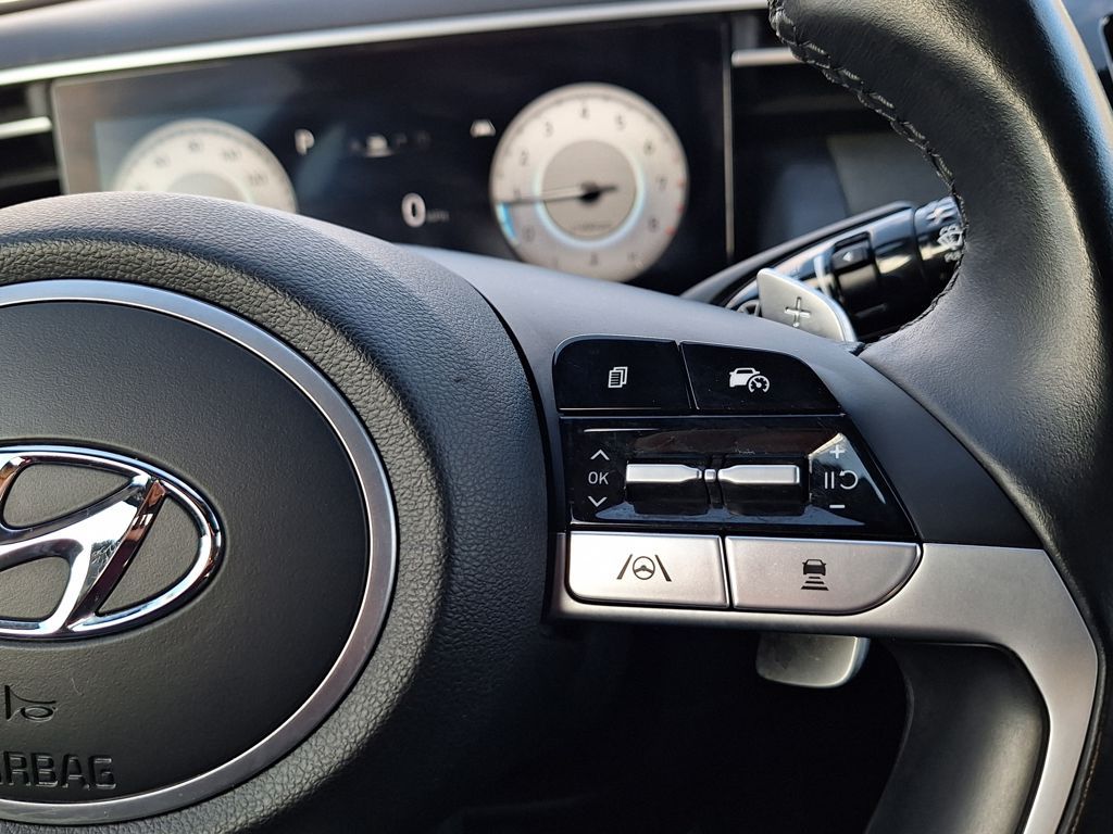 Cargo Package (Bed Mat, Envelop Cargo Net, and First Aid Kit), Option Group 01, Hyundai Certified, 3.316 Axle Ratio, 4-Wheel Disc Brakes, 8 Speakers, ABS brakes, Air Conditioning, Alloy wheels, AM/FM radio: SiriusXM, Apple CarPlay & Android Auto, Auto High-beam Headlights, Auto-dimming Rear-View mirror, Auto-leveling suspension, Automatic temperature control, Brake assist, Bumpers: body-color, Carpeted Floor Mats, Delay-off headlights, Driver door bin, Driver vanity mirror, Dual front impact airbags, Dual front side impact airbags, Electronic Stability Control, Emergency communication system: Blue Link Connected Car Service (3-year complimentary subscription), Exterior Parking Camera Rear, Four wheel independent suspension, Front anti-roll bar, Front Bucket Seats, Front Center Armrest, Front dual zone A/C, Front reading lights, Fully automatic headlights, Garage door transmitter: HomeLink, Heated & Ventilated Front Bucket Seats, Heated door mirrors, Heated front seats, Heated steering wheel, Illuminated entry, Leather Seat Trim, Leather Shift Knob, Low tire pressure warning, Mudguards, Navigation System, Occupant sensing airbag, Outside temperature display, Overhead airbag, Overhead console, Panic alarm, Passenger door bin, Passenger vanity mirror, Power door mirrors, Power driver seat, Power moonroof, Power steering, Power windows, Radio data system, Radio: AM/FM/HD Bose Premium Audio System, Rain sensing wipers, Rear anti-roll bar, Rear step bumper, Rear window defroster, Remote keyless entry, Security system, Speed control, Speed-sensing steering, Split folding rear seat, Spoiler, Steering wheel mounted audio controls, Tachometer, Telescoping steering wheel, Tilt steering wheel, Traction control, Trip computer, Turn signal indicator mirrors, Variably intermittent wipers, Ventilated front seats, and Wheels: 20" x 7.5J Alloy.