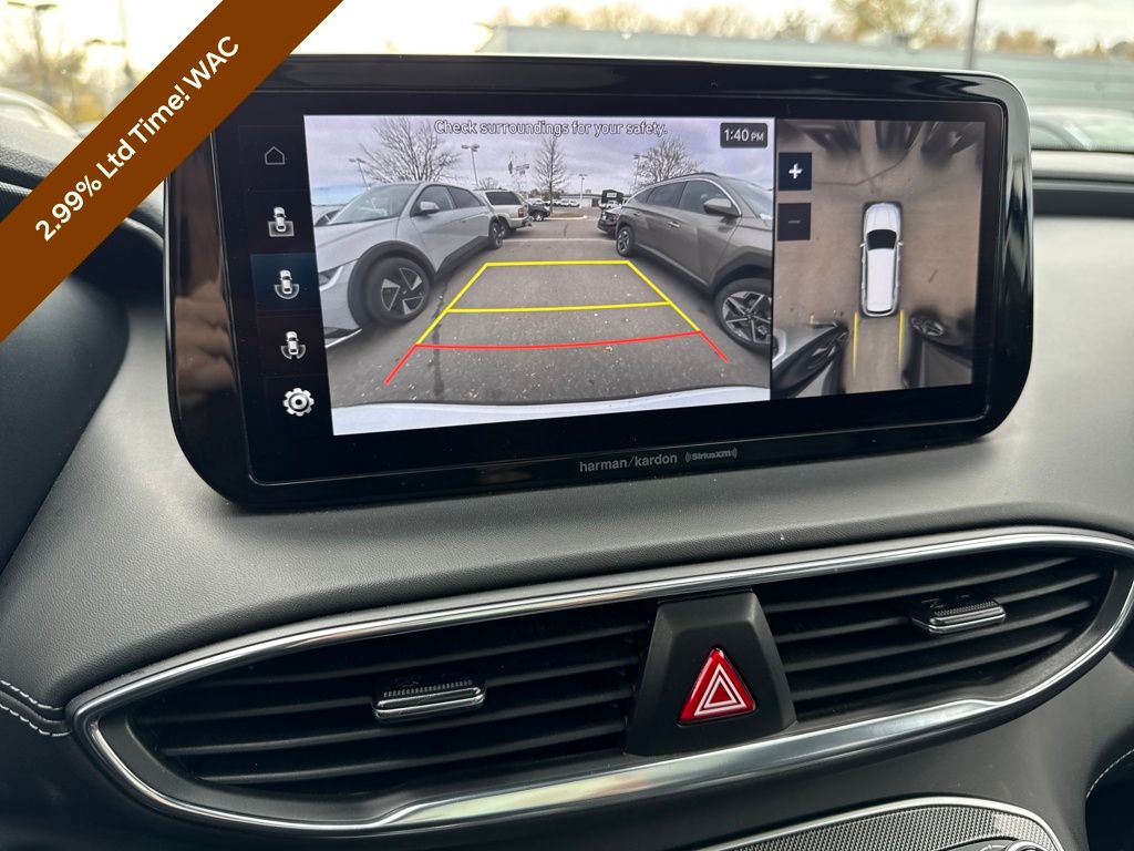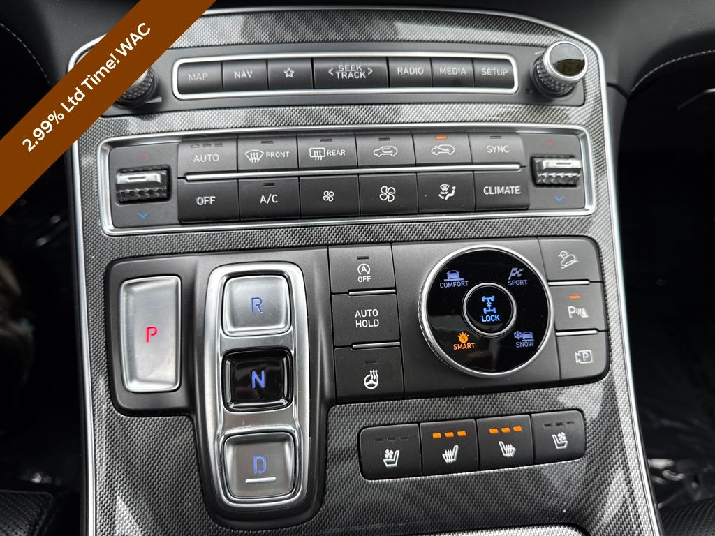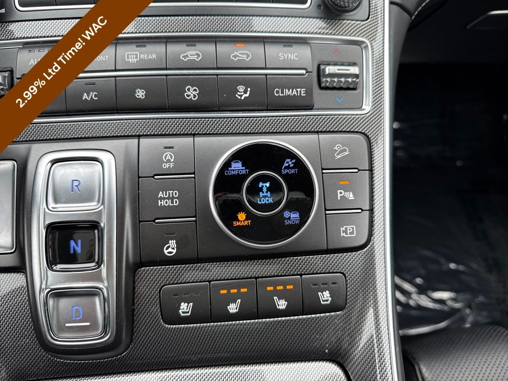 Option Group 01, Hyundai Certified Used Vehicles Certified, AWD, Black Leather, 12 Speakers, 4-Wheel Disc Brakes, ABS brakes, Air Conditioning, Alloy wheels, AM/FM radio: SiriusXM, Apple CarPlay & Android Auto, Auto High-beam Headlights, Auto-dimming Rear-View mirror, Automatic temperature control, Axle Ratio: 3.316, Brake assist, Bumpers: body-color, Delay-off headlights, Driver door bin, Driver vanity mirror, Dual front impact airbags, Dual front side impact airbags, Electronic Stability Control, Emergency communication system, Exterior Parking Camera Rear, Four wheel independent suspension, Front anti-roll bar, Front Bucket Seats, Front Center Armrest, Front dual zone A/C, Front reading lights, Fully automatic headlights, Garage door transmitter: HomeLink, harman/kardon® Speakers, Heated & Ventilated Front Bucket Seats, Heated door mirrors, Heated front seats, Heated rear seats, Heated steering wheel, Illuminated entry, Leather Seat Trim, Leather steering wheel, Low tire pressure warning, Memory seat, Navigation System, Occupant sensing airbag, Outside temperature display, Overhead airbag, Overhead console, Panic alarm, Passenger door bin, Passenger vanity mirror, Power door mirrors, Power driver seat, Power Liftgate, Power moonroof, Power passenger seat, Power steering, Power windows, Radio: AM/FM Harman Kardon Display Audio, Rain sensing wipers, Rear anti-roll bar, Rear seat center armrest, Rear window defroster, Rear window wiper, Remote keyless entry, Security system, Speed control, Speed-sensing steering, Split folding rear seat, Spoiler, Steering wheel mounted audio controls, Tachometer, Telescoping steering wheel, Tilt steering wheel, Traction control, Trip computer, Turn signal indicator mirrors, Variably intermittent wipers, Ventilated front seats, and Wheels: 19" x 7.5J Alloy.