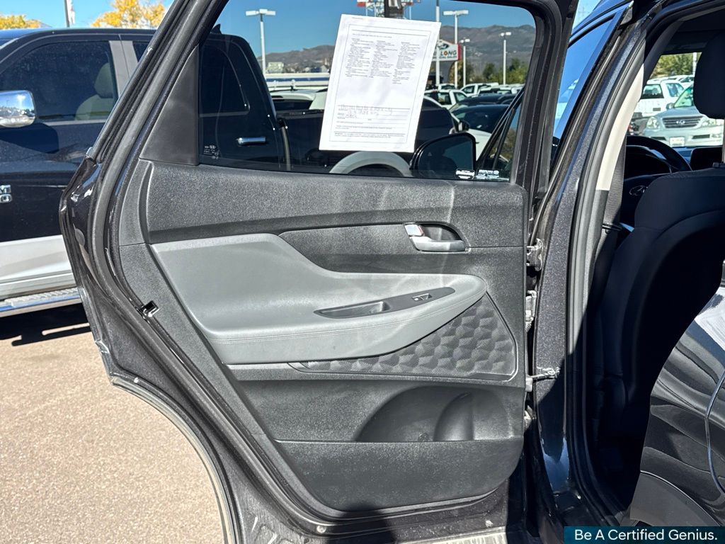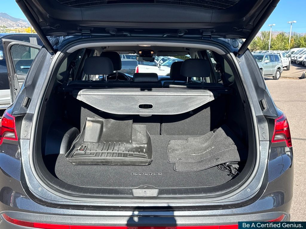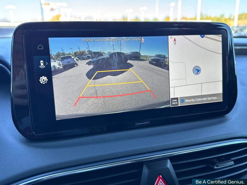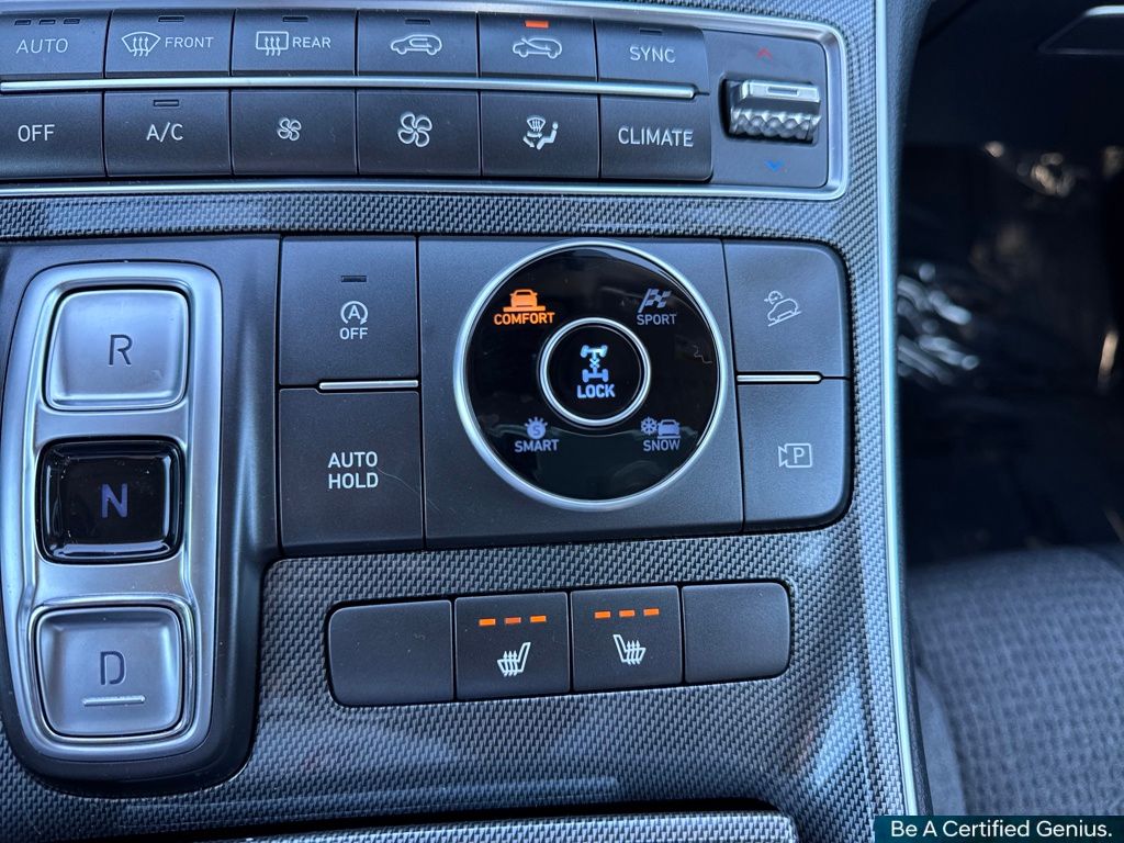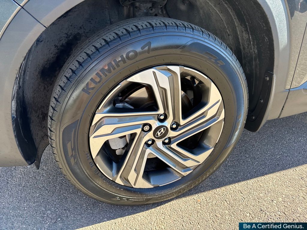 Cargo Package (Cargo Net, Cargo Tray, and First Aid Kit), Option Group 01, Hyundai Certified Used Vehicles Certified, AWD, Gray Cloth, 18" x 7.5J Alloy Wheels, 4-Wheel Disc Brakes, 6 Speakers, ABS brakes, Air Conditioning, Alloy wheels, AM/FM radio: SiriusXM, Apple CarPlay & Android Auto, Auto High-beam Headlights, Automatic temperature control, Axle Ratio: 4.081, Brake assist, Bumpers: body-color, Carpeted Floor Mats, Delay-off headlights, Driver door bin, Driver vanity mirror, Dual front impact airbags, Dual front side impact airbags, Electronic Stability Control, Emergency communication system, Exterior Parking Camera Rear, Four wheel independent suspension, Front anti-roll bar, Front Bucket Seats, Front Center Armrest, Front dual zone A/C, Front reading lights, Fully automatic headlights, Heated door mirrors, Heated Front Bucket Seats, Heated front seats, Illuminated entry, Leather steering wheel, Low tire pressure warning, Mudguards, Navigation System, Occupant sensing airbag, Outside temperature display, Overhead airbag, Overhead console, Panic alarm, Passenger door bin, Passenger vanity mirror, Power door mirrors, Power driver seat, Power Liftgate, Power steering, Power windows, Radio: AM/FM Display Audio, Rear anti-roll bar, Rear seat center armrest, Rear window defroster, Rear window wiper, Remote keyless entry, Security system, Speed control, Speed-sensing steering, Split folding rear seat, Spoiler, Stain-Resistant Cloth Seat Trim, Steering wheel mounted audio controls, Tachometer, Telescoping steering wheel, Tilt steering wheel, Traction control, Trip computer, Turn signal indicator mirrors, and Variably intermittent wipers.