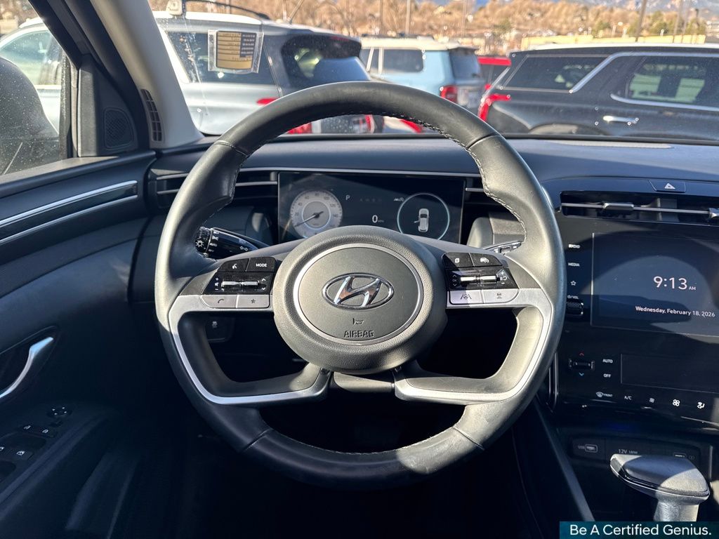 Convenience Package (10.25" Digital Instrument Cluster, Auto-Dimming Interior Mirror w/Homelink, Dual Automatic Temperature Control, H-Tex Seat Trim, Leather-Wrapped Shift Knob, Leather-Wrapped Steering Wheel, LED Interior Lights (Room, Map), Option Group 02, Power Sunroof, Ultrasonic Rear Occupant Alert, and Wheels: 19" x 7.5J" Machine-Face Finish Alloy), Hyundai Certified Used Vehicles Certified, AWD, 3.648 Axle Ratio, 4-Wheel Disc Brakes, 6 Speakers, ABS brakes, Air Conditioning, Alloy wheels, AM/FM radio: SiriusXM, Apple CarPlay & Android Auto, Auto High-beam Headlights, Brake assist, Bumpers: body-color, Cargo Cover, Cargo Net, Cargo Tray, Carpeted Floor Mats, Delay-off headlights, Driver door bin, Driver vanity mirror, Dual front impact airbags, Dual front side impact airbags, Electronic Stability Control, Emergency communication system: Blue Link Connected Car Service (3-year complimentary subscription), First Aid Kit, Four wheel independent suspension, Front anti-roll bar, Front Bucket Seats, Front Center Armrest, Front reading lights, Fully automatic headlights, Heated door mirrors, Heated Front Bucket Seats, Heated front seats, Illuminated entry, Low tire pressure warning, Occupant sensing airbag, Outside temperature display, Overhead airbag, Overhead console, Panic alarm, Passenger door bin, Passenger vanity mirror, Power door mirrors, Power driver seat, Power Liftgate, Power steering, Power windows, Radio data system, Radio: AM/FM/HD/SiriusXM Audio System, Rear anti-roll bar, Rear Bumper Applique, Rear seat center armrest, Rear window defroster, Rear window wiper, Remote keyless entry, Roof rack: rails only, Security system, Speed control, Split folding rear seat, Spoiler, Stain & Odor Resistant Cloth Seat Trim, Steering wheel mounted audio controls, Tachometer, Telescoping steering wheel, Tilt steering wheel, Traction control, Trip computer, Turn signal indicator mirrors, Variably intermittent wipers, and Wheels: 17" x 7.0J" Alloy.