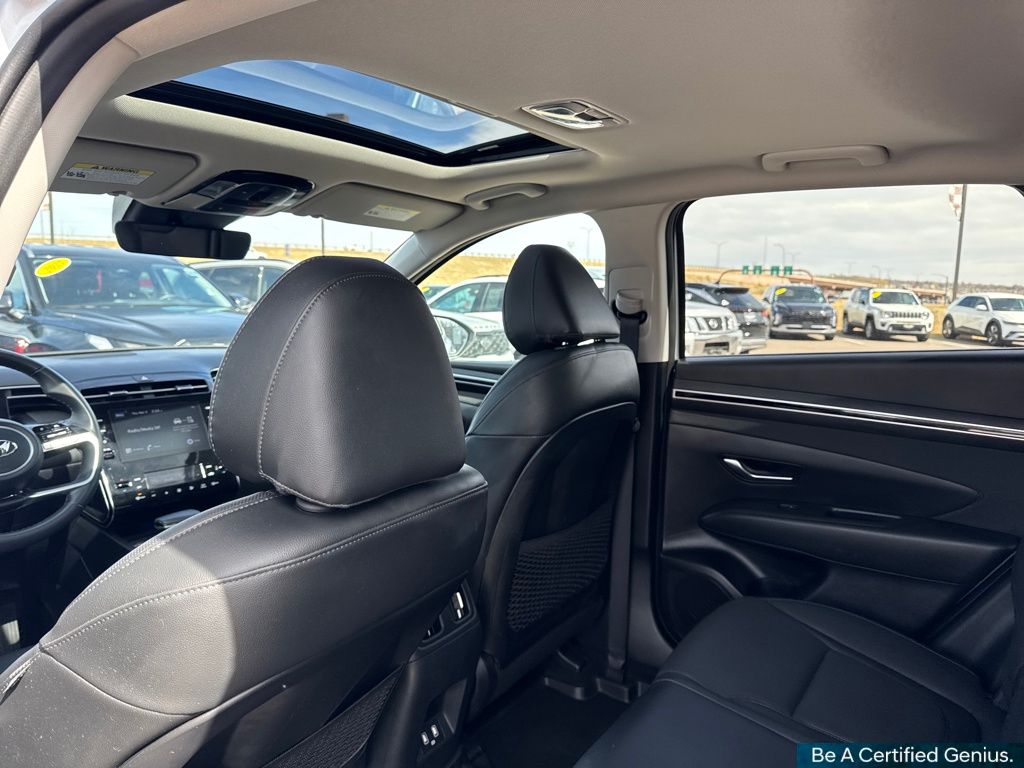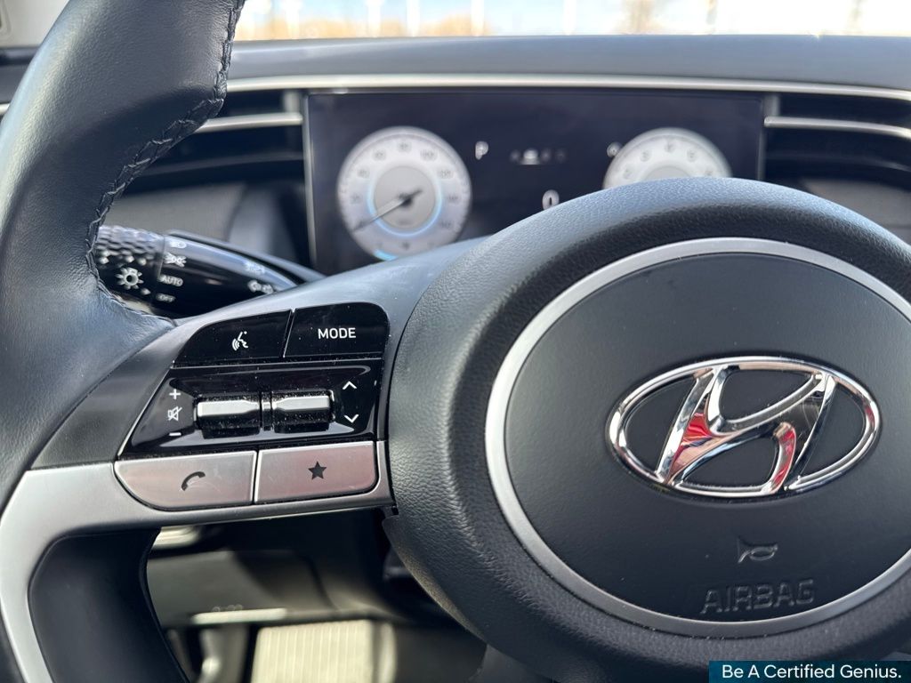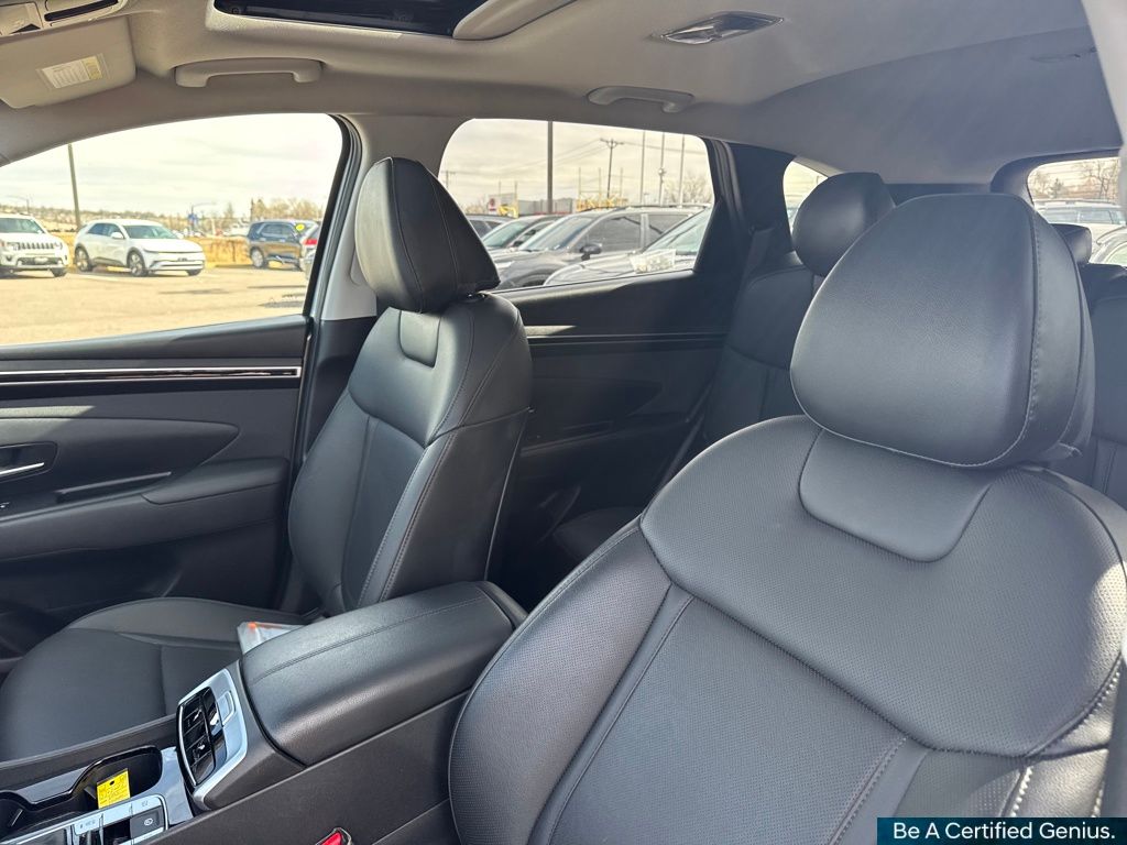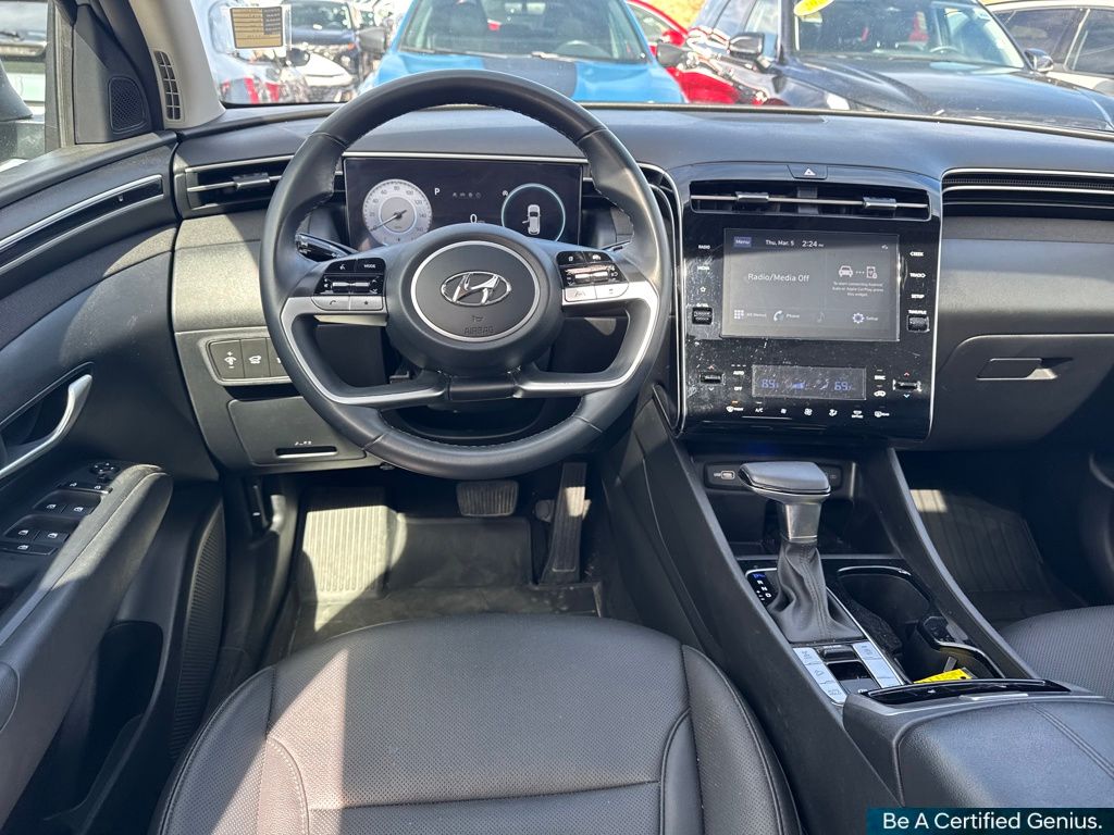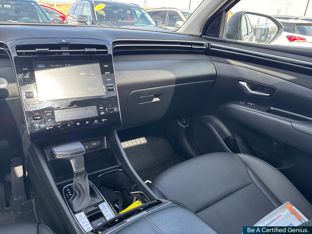 Convenience Package (10.25" Digital Instrument Cluster, Auto-Dimming Interior Mirror w/Homelink, Dual Automatic Temperature Control, H-Tex Seat Trim, Leather-Wrapped Shift Knob, Leather-Wrapped Steering Wheel, LED Interior Lights (Room, Map), Option Group 02, Power Sunroof, Ultrasonic Rear Occupant Alert, and Wheels: 19" x 7.5J" Machine-Face Finish Alloy), Hyundai Certified Used Vehicles Certified, AWD, 3.648 Axle Ratio, 4-Wheel Disc Brakes, 6 Speakers, ABS brakes, Air Conditioning, Alloy wheels, AM/FM radio: SiriusXM, Apple CarPlay & Android Auto, Auto High-beam Headlights, Brake assist, Bumpers: body-color, Cargo Net, Cargo Tray, Carpeted Floor Mats, Delay-off headlights, Driver door bin, Driver vanity mirror, Dual front impact airbags, Dual front side impact airbags, Electronic Stability Control, Emergency communication system: Blue Link Connected Car Service (3-year complimentary subscription), First Aid Kit, Four wheel independent suspension, Front and Rear Mudguards, Front anti-roll bar, Front Bucket Seats, Front Center Armrest, Front reading lights, Fully automatic headlights, Heated door mirrors, Heated Front Bucket Seats, Heated front seats, Illuminated entry, Low tire pressure warning, Occupant sensing airbag, Outside temperature display, Overhead airbag, Overhead console, Panic alarm, Passenger door bin, Passenger vanity mirror, Power door mirrors, Power driver seat, Power Liftgate, Power steering, Power windows, Radio data system, Radio: AM/FM/HD/SiriusXM Audio System, Rear anti-roll bar, Rear Bumper Applique, Rear seat center armrest, Rear window defroster, Rear window wiper, Remote keyless entry, Roof rack: rails only, Security system, Speed control, Split folding rear seat, Spoiler, Stain & Odor Resistant Cloth Seat Trim, Steering wheel mounted audio controls, Tachometer, Telescoping steering wheel, Tilt steering wheel, Traction control, Trip computer, Turn signal indicator mirrors, Variably intermittent wipers, and Wheels: 17" x 7.0J" Alloy.