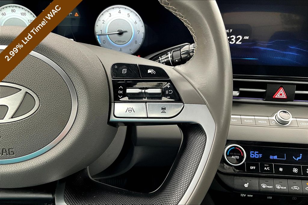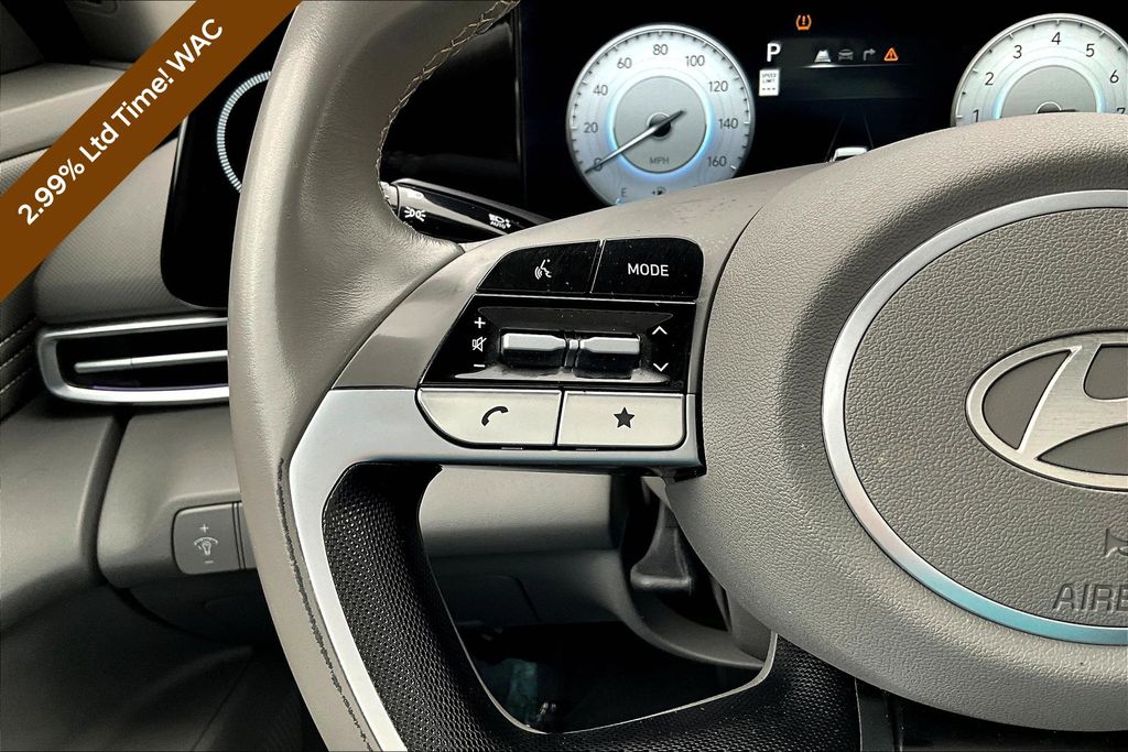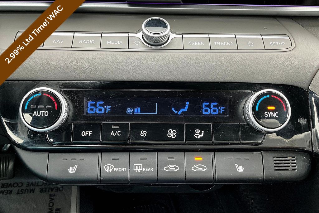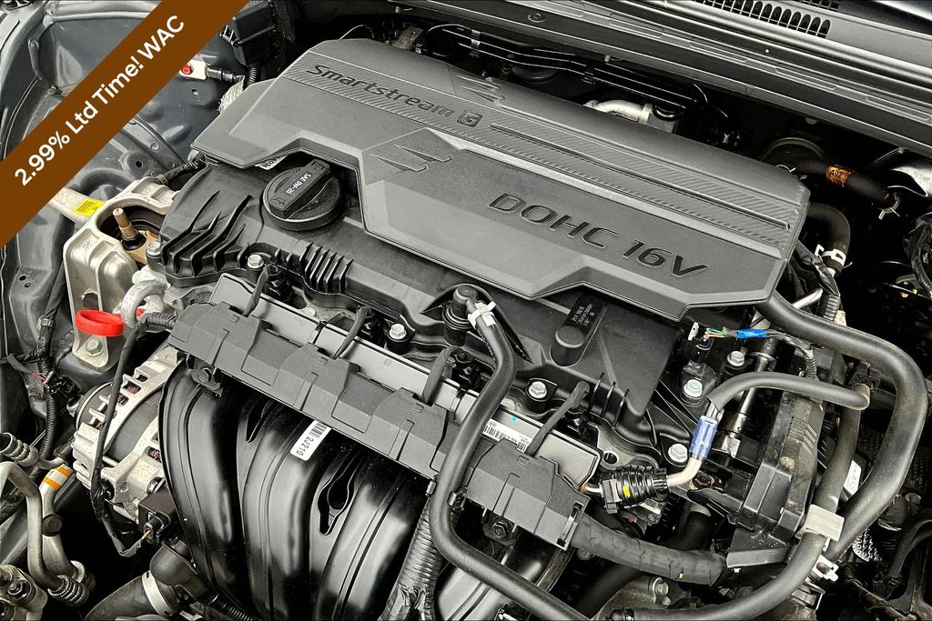 Convenience Package (60/40 Split Fldng Rr Seatback w/Armrest & Cup Hld, Dynamic Voice Recognition, Electronic Parking Brake, Forward Collision Avoidance Assist, Heated Front Seats, Heated Outside Mirrors, Leather-Wrapped Steering Wheel, Option Group 02, Smart Cruise Control w/Stop & Go, Wheels: 17" x 7.0J Machine Finish Alloy, and Wireless Charging Pad (QI)), Hyundai Certified Used Vehicles Certified, 16" x 6.5J Alloy Wheels, 4-Wheel Disc Brakes, 6 Speakers, ABS brakes, Air Conditioning, Alloy wheels, AM/FM radio: SiriusXM, Apple CarPlay & Android Auto, Auto High-beam Headlights, Automatic temperature control, Brake assist, Bumpers: body-color, Cargo Net, Carpeted Floor Mats, Cloth Seat Trim, Delay-off headlights, Driver door bin, Driver vanity mirror, Dual front impact airbags, Dual front side impact airbags, Electronic Stability Control, Emergency communication system: Bluelink+, Exterior Parking Camera Rear, First Aid Kit, Front anti-roll bar, Front Bucket Seats, Front Center Armrest, Front dual zone A/C, Front reading lights, Front wheel independent suspension, Fully automatic headlights, Illuminated entry, Low tire pressure warning, Navigation System, Occupant sensing airbag, Outside temperature display, Overhead airbag, Overhead console, Panic alarm, Passenger door bin, Passenger vanity mirror, Power door mirrors, Power steering, Power windows, Radio: AM/FM/HD/SiriusXM Display Audio, Rear Bumper Applique, Rear side impact airbag, Rear window defroster, Remote keyless entry, Reversible Cargo Tray, Roadside Assistance Kit, Security system, Speed control, Speed-sensing steering, Steering wheel mounted audio controls, Tachometer, Telescoping steering wheel, Tilt steering wheel, Traction control, Trip computer, and Variably intermittent wipers.