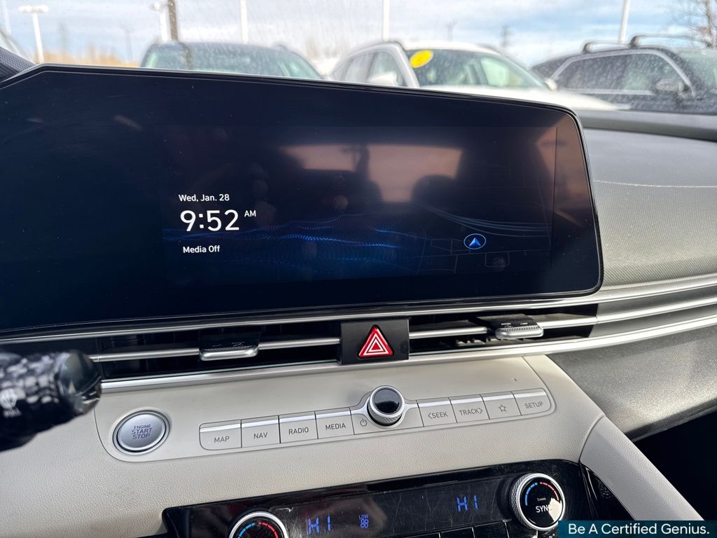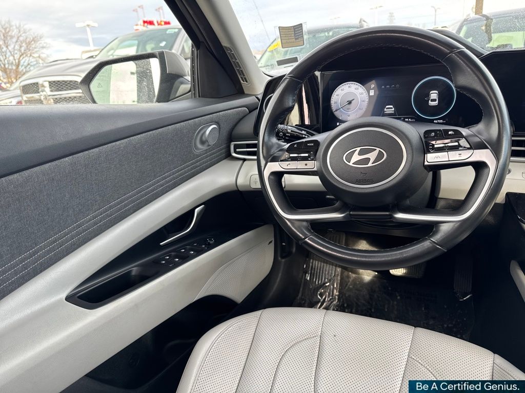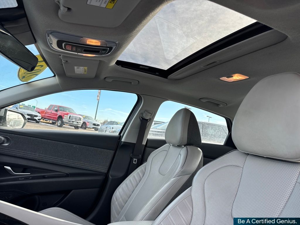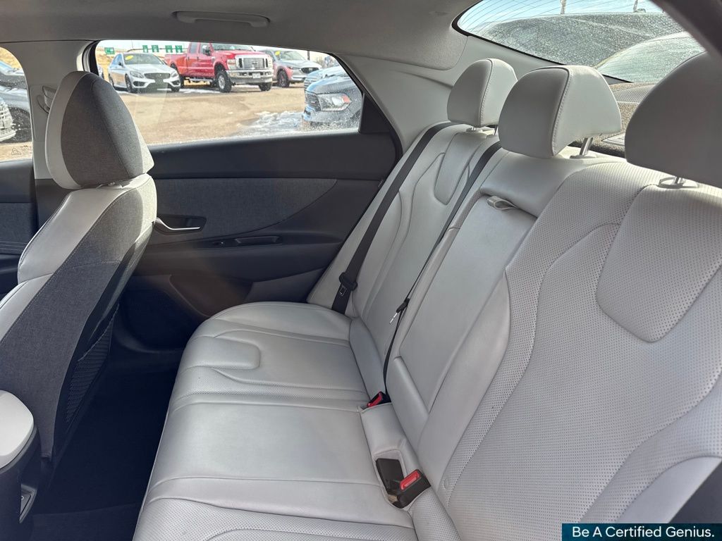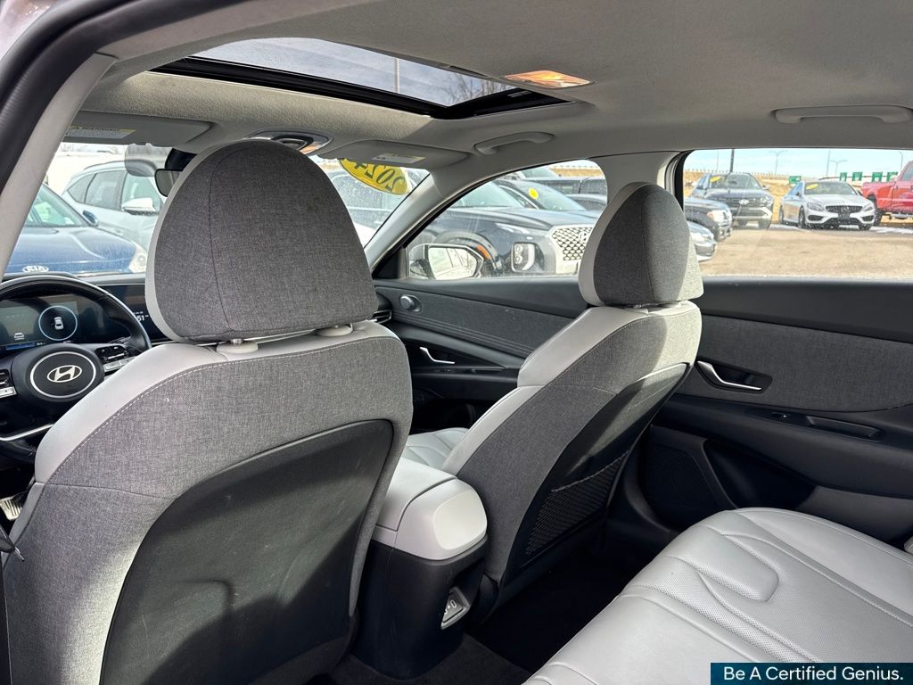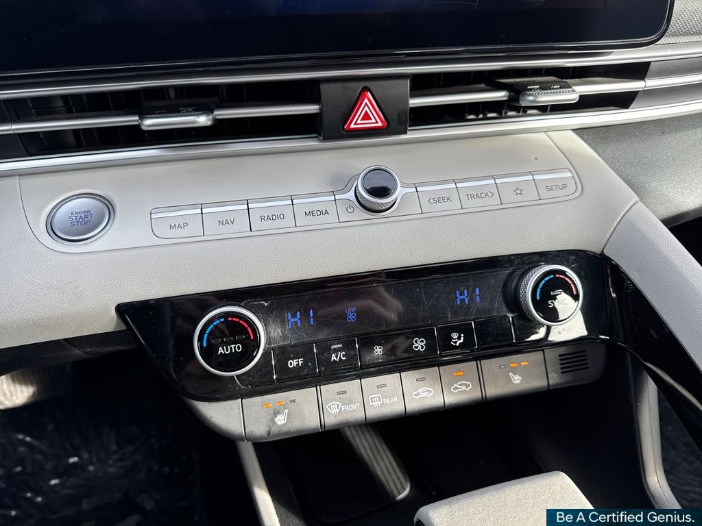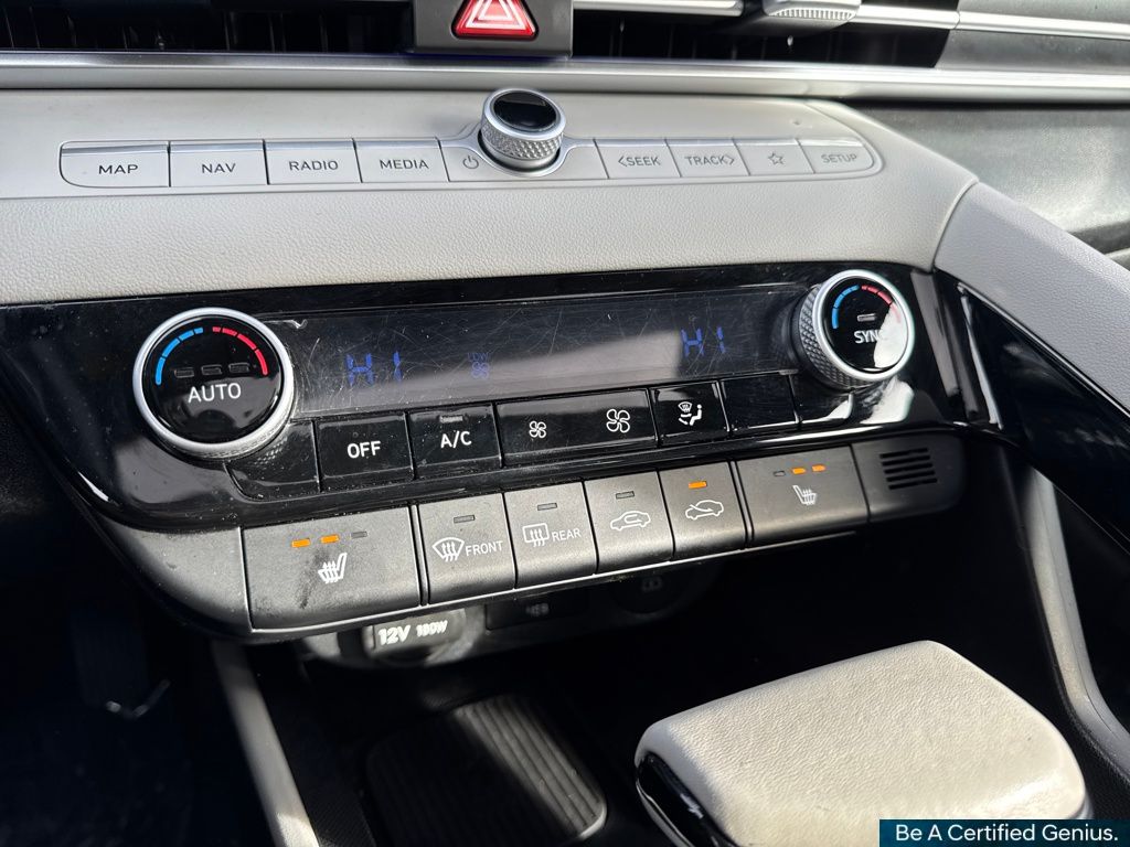 Option Group 01, Hyundai Certified Used Vehicles Certified, 17" x 7.0J Alloy Wheels, 4-Wheel Disc Brakes, 8 Speakers, ABS brakes, Air Conditioning, Alloy wheels, AM/FM radio: SiriusXM, Apple CarPlay & Android Auto, Auto High-beam Headlights, Auto-dimming Rear-View mirror, Automatic temperature control, Brake assist, Bumpers: body-color, Delay-off headlights, Driver door bin, Driver vanity mirror, Dual front impact airbags, Dual front side impact airbags, Electronic Stability Control, Emergency communication system: Bluelink+, Front anti-roll bar, Front Bucket Seats, Front Center Armrest, Front dual zone A/C, Front reading lights, Front wheel independent suspension, Fully automatic headlights, Heated door mirrors, Heated Front Bucket Seats, Heated front seats, Illuminated entry, Leatherette Seats, Low tire pressure warning, Navigation System, Occupant sensing airbag, Outside temperature display, Overhead airbag, Overhead console, Panic alarm, Passenger door bin, Passenger vanity mirror, Power door mirrors, Power driver seat, Power moonroof, Power steering, Power windows, Radio: AM/FM/HD/SiriusXM Display Audio, Rear seat center armrest, Rear side impact airbag, Rear window defroster, Remote keyless entry, Security system, Speed control, Speed-sensing steering, Split folding rear seat, Steering wheel mounted audio controls, Tachometer, Telescoping steering wheel, Tilt steering wheel, Traction control, Trip computer, Turn signal indicator mirrors, and Variably intermittent wipers.