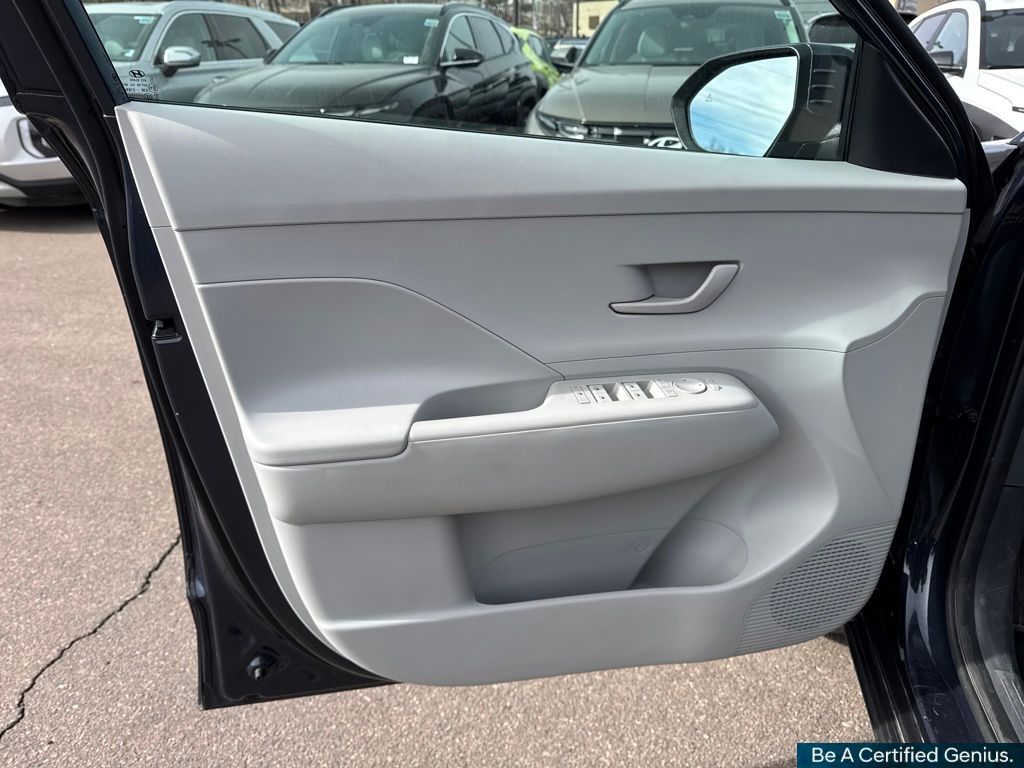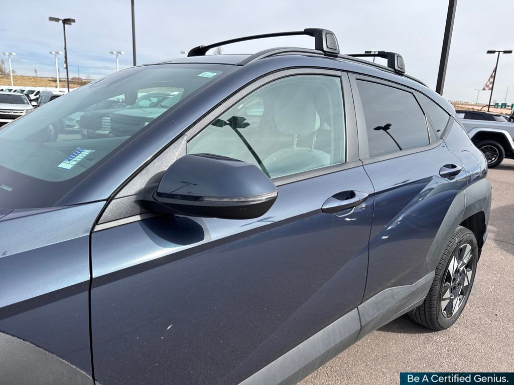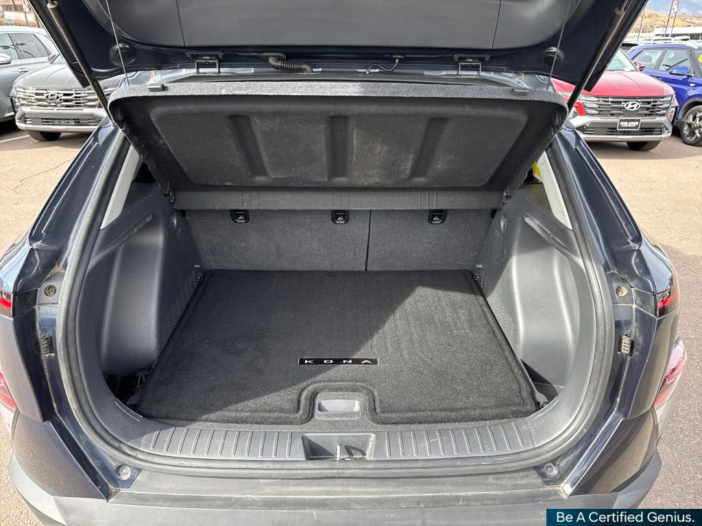 Option Group 01, Hyundai Certified Used Vehicles Certified, 4-Wheel Disc Brakes, 6 Speakers, 6.052 Axle Ratio, ABS brakes, Air Conditioning, Alloy wheels, AM/FM radio: SiriusXM, Apple CarPlay & Android Auto, Auto High-beam Headlights, Automatic temperature control, Brake assist, Bumpers: body-color, Cargo Net, Cargo Tray, Carpeted Floor Mats, Cloth Seat Trim, Cross Rails, Delay-off headlights, Driver door bin, Driver vanity mirror, Dual front impact airbags, Dual front side impact airbags, Electronic Stability Control, Emergency communication system: Bluelink+, Exterior Parking Camera Rear, First Aid Kit, Four wheel independent suspension, Front anti-roll bar, Front Bucket Seats, Front Center Armrest, Front dual zone A/C, Front reading lights, Fully automatic headlights, Heated door mirrors, Illuminated entry, Leather Shift Knob, Leather steering wheel, Low tire pressure warning, Occupant sensing airbag, Outside temperature display, Overhead airbag, Panic alarm, Passenger door bin, Passenger vanity mirror, Power door mirrors, Power driver seat, Power steering, Power windows, Radio: AM/FM/HD Radio/SiriusXM Audio System, Rear anti-roll bar, Rear seat center armrest, Rear window defroster, Rear window wiper, Remote keyless entry, Security system, Speed control, Speed-sensing steering, Split folding rear seat, Spoiler, Steering wheel mounted audio controls, Tachometer, Telescoping steering wheel, Tilt steering wheel, Traction control, Trip computer, Turn signal indicator mirrors, Variably intermittent wipers, and Wheels: 18" x 7.0J Glossy Black Alloy.