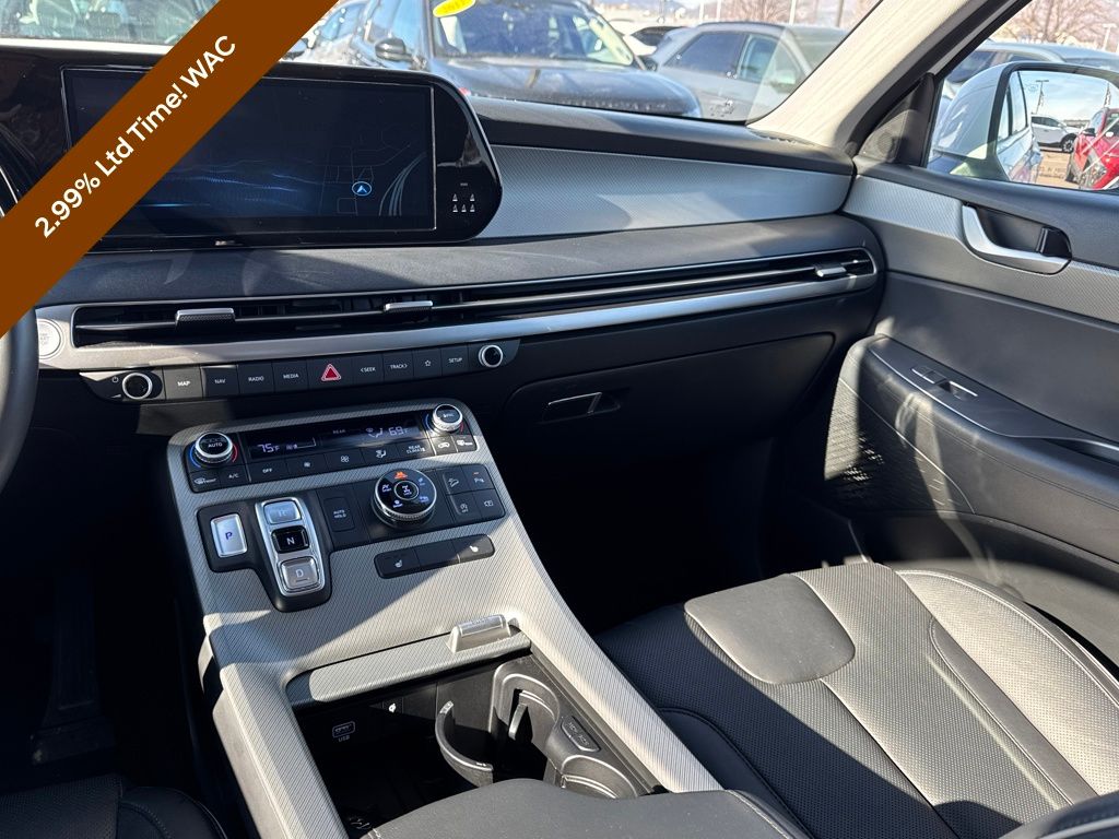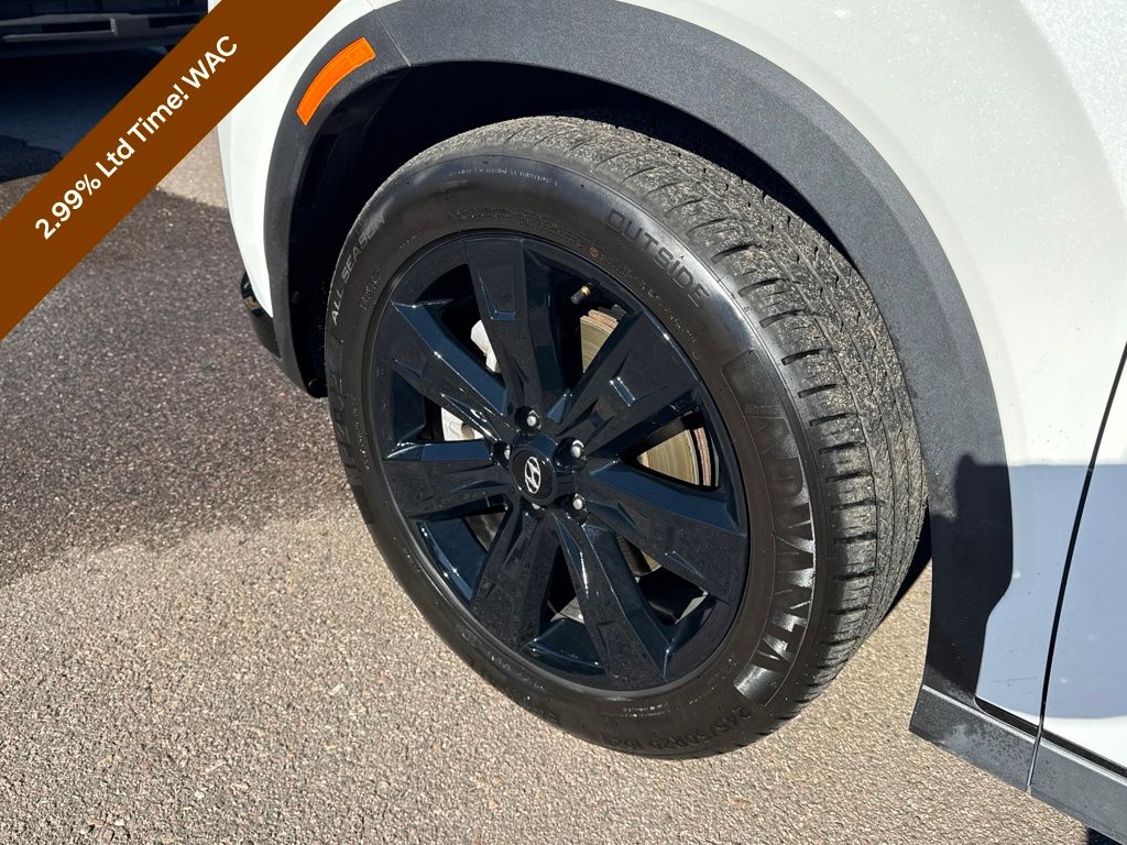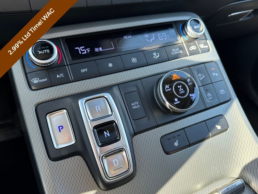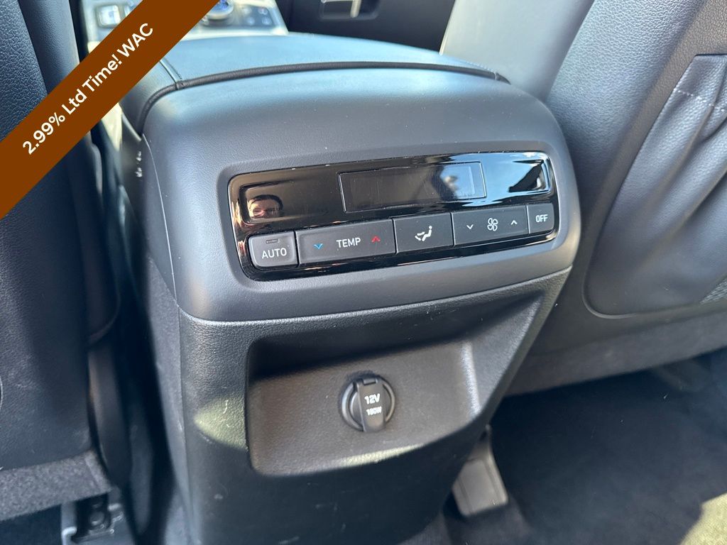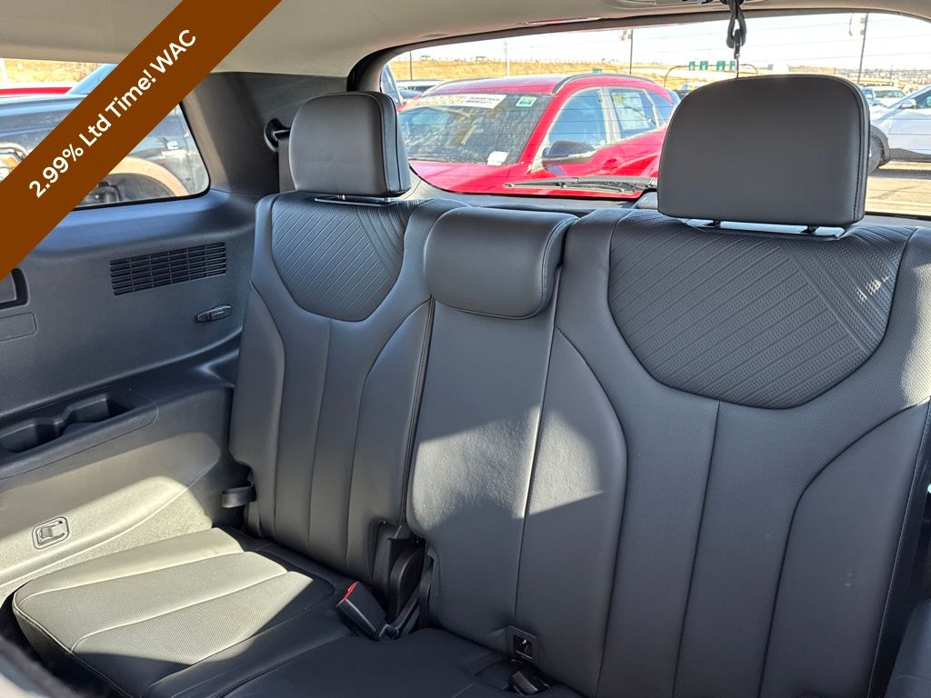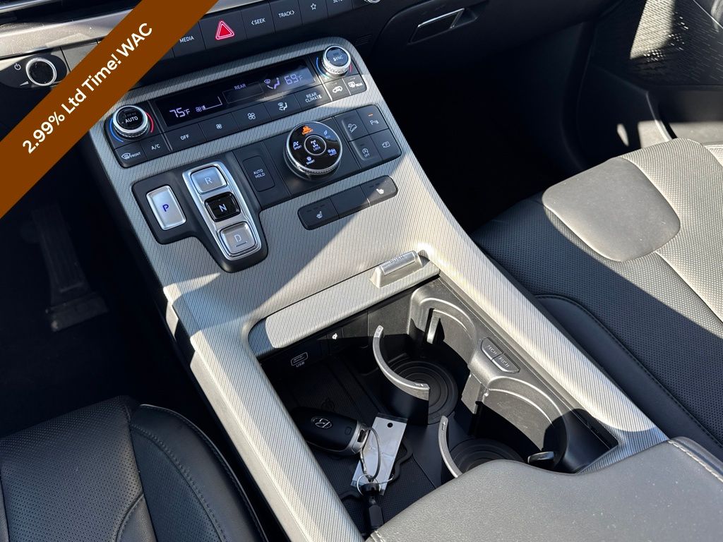 Option Group 01, Hyundai Certified Used Vehicles Certified, 3.648 Axle Ratio, 3rd row seats: split-bench, 4-Wheel Disc Brakes, 6 Speakers, ABS brakes, Air Conditioning, Alloy wheels, AM/FM radio: SiriusXM, Apple CarPlay & Android Auto, Auto High-beam Headlights, Auto-dimming door mirrors, Auto-dimming Rear-View mirror, Auto-leveling suspension, Automatic temperature control, Brake assist, Bumpers: body-color, Delay-off headlights, Driver door bin, Driver vanity mirror, Dual front impact airbags, Dual front side impact airbags, Electronic Stability Control, Emergency communication system, Exterior Parking Camera Rear, Four wheel independent suspension, Front anti-roll bar, Front Bucket Seats, Front Center Armrest, Front dual zone A/C, Front reading lights, Fully automatic headlights, H-Tex Leatherette Seat Trim, Heated door mirrors, Heated Front Bucket Seats, Heated front seats, Illuminated entry, Knee airbag, Low tire pressure warning, Navigation System, Occupant sensing airbag, Outside temperature display, Overhead airbag, Overhead console, Panic alarm, Passenger door bin, Passenger vanity mirror, Power door mirrors, Power driver seat, Power Liftgate, Power moonroof, Power passenger seat, Power steering, Power windows, Radio data system, Radio: AM/FM/MP3 Audio System, Rear air conditioning, Rear anti-roll bar, Rear audio controls, Rear reading lights, Rear side impact airbag, Rear window defroster, Rear window wiper, Reclining 3rd row seat, Remote keyless entry, Roof rack, Security system, Speed control, Speed-sensing steering, Split folding rear seat, Spoiler, Steering wheel mounted audio controls, Tachometer, Telescoping steering wheel, Tilt steering wheel, Traction control, Trip computer, Turn signal indicator mirrors, Variably intermittent wipers, and Wheels: 20" x 7.5J Dark Alloy w/Rugged Styling.