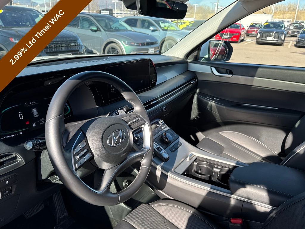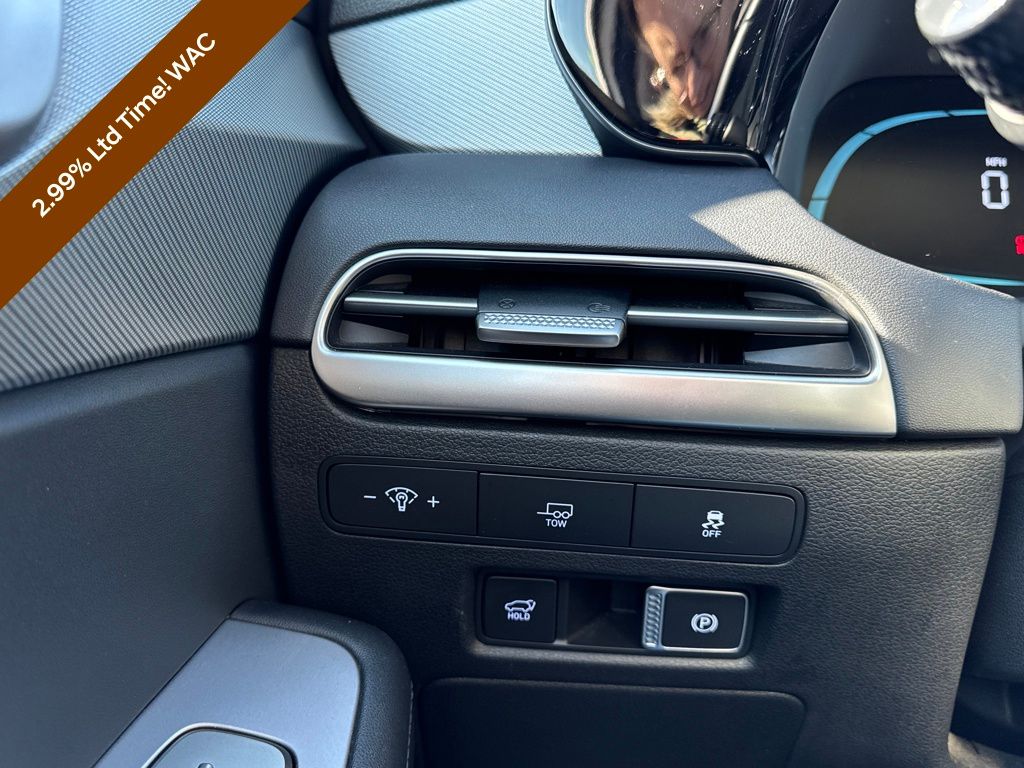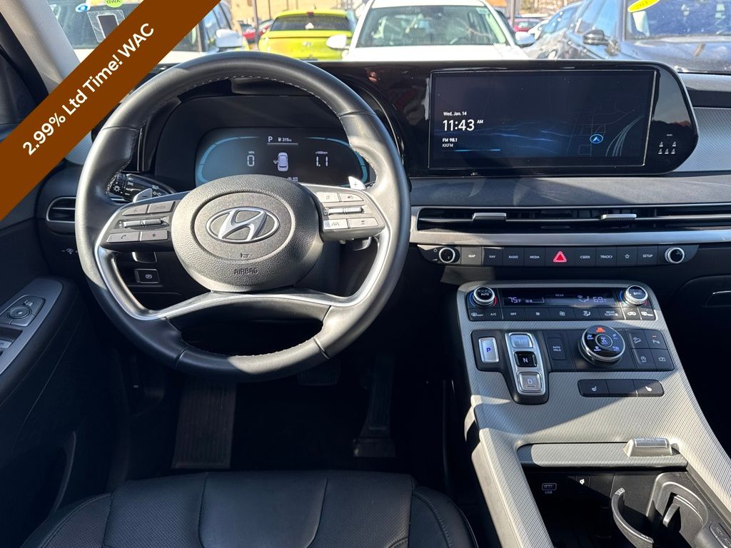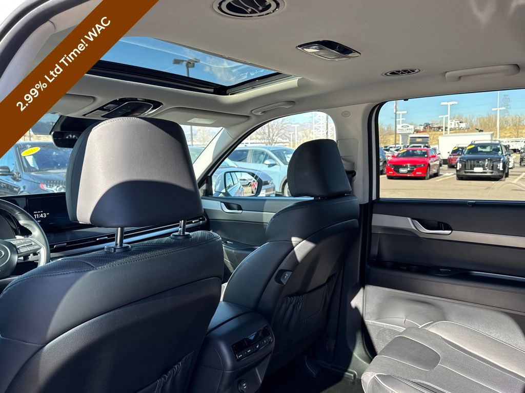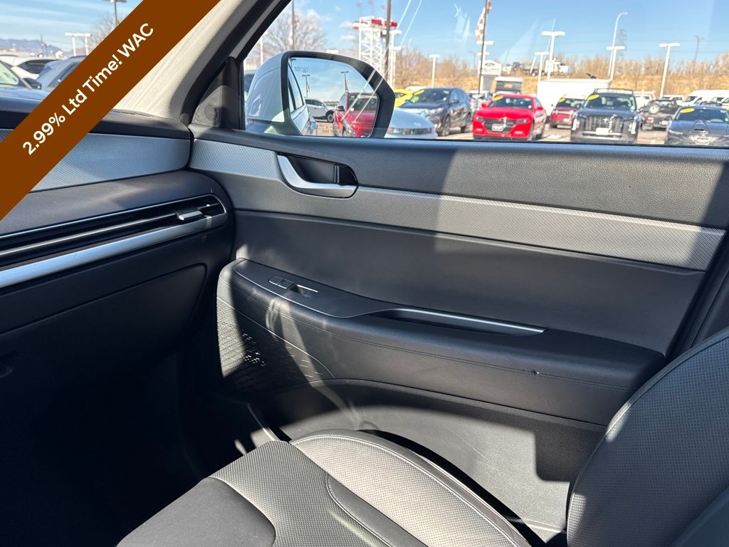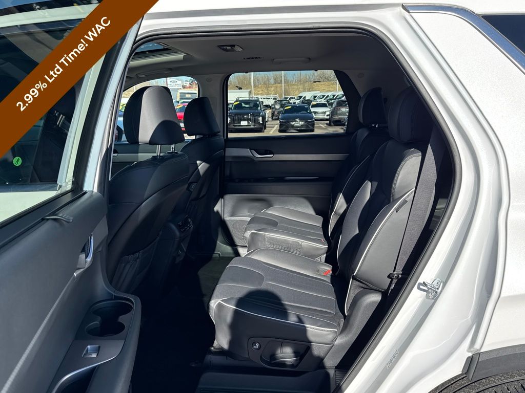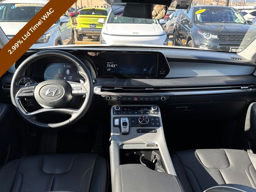 Option Group 01, Hyundai Certified Used Vehicles Certified, 3.648 Axle Ratio, 3rd row seats: split-bench, 4-Wheel Disc Brakes, 6 Speakers, ABS brakes, Air Conditioning, Alloy wheels, AM/FM radio: SiriusXM, Apple CarPlay & Android Auto, Auto High-beam Headlights, Auto-dimming door mirrors, Auto-dimming Rear-View mirror, Auto-leveling suspension, Automatic temperature control, Brake assist, Bumpers: body-color, Delay-off headlights, Driver door bin, Driver vanity mirror, Dual front impact airbags, Dual front side impact airbags, Electronic Stability Control, Emergency communication system, Exterior Parking Camera Rear, Four wheel independent suspension, Front anti-roll bar, Front Bucket Seats, Front Center Armrest, Front dual zone A/C, Front reading lights, Fully automatic headlights, H-Tex Leatherette Seat Trim, Heated door mirrors, Heated Front Bucket Seats, Heated front seats, Illuminated entry, Knee airbag, Low tire pressure warning, Navigation System, Occupant sensing airbag, Outside temperature display, Overhead airbag, Overhead console, Panic alarm, Passenger door bin, Passenger vanity mirror, Power door mirrors, Power driver seat, Power Liftgate, Power moonroof, Power passenger seat, Power steering, Power windows, Radio data system, Radio: AM/FM/MP3 Audio System, Rear air conditioning, Rear anti-roll bar, Rear audio controls, Rear reading lights, Rear side impact airbag, Rear window defroster, Rear window wiper, Reclining 3rd row seat, Remote keyless entry, Roof rack, Security system, Speed control, Speed-sensing steering, Split folding rear seat, Spoiler, Steering wheel mounted audio controls, Tachometer, Telescoping steering wheel, Tilt steering wheel, Traction control, Trip computer, Turn signal indicator mirrors, Variably intermittent wipers, and Wheels: 20" x 7.5J Dark Alloy w/Rugged Styling.