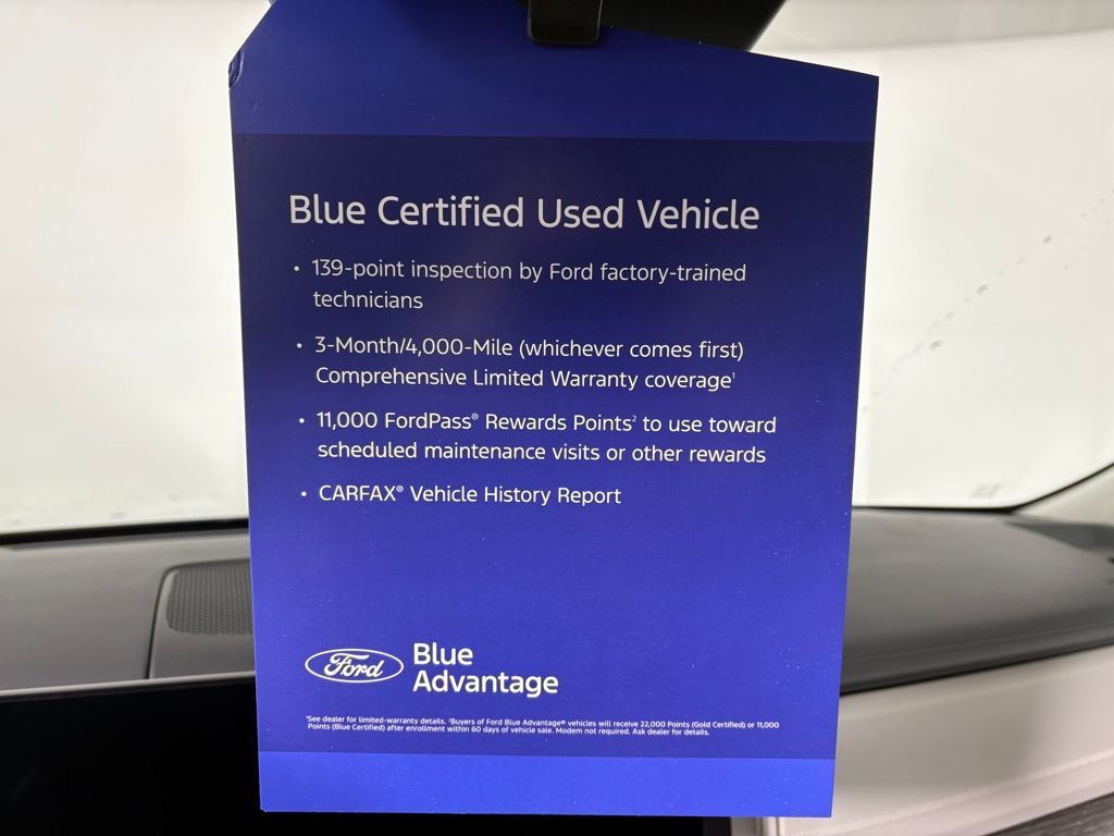 Ford Blue Certified includes:139 point vehicle inspection performed by an ASE Certified technician 3-month/4,000-mile Comprehensive Limited Warranty coverage that is fully competitive with other online retailers Blue Certification includes 11,000 FordPass Rewards Points For other manufacturers not listed above, Comprehensive Coverage is provided for 3 months or 4