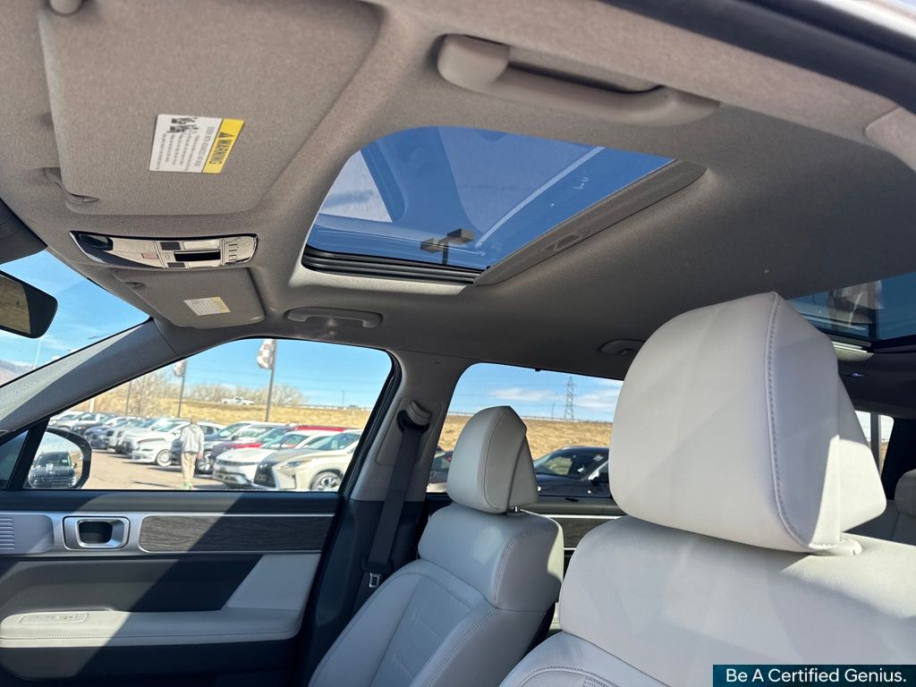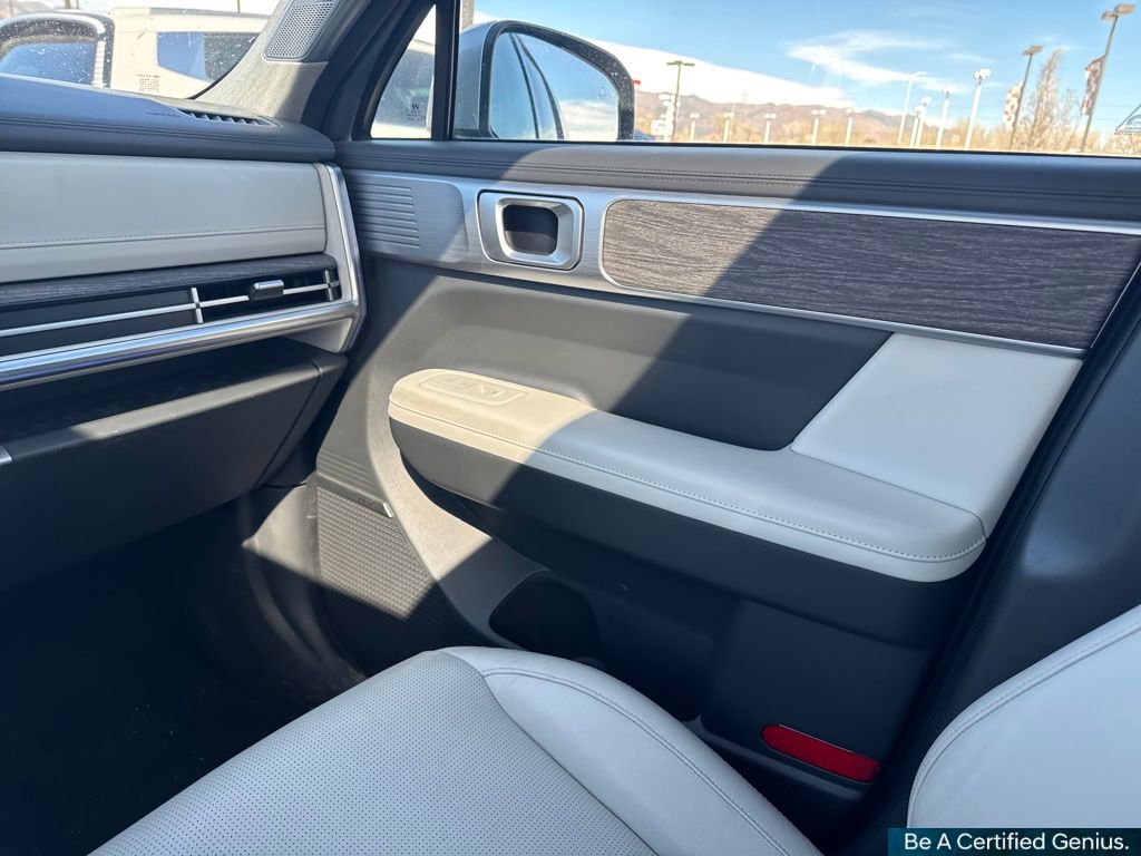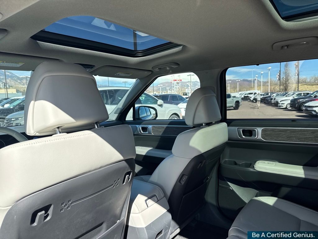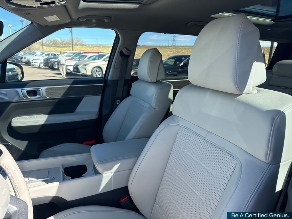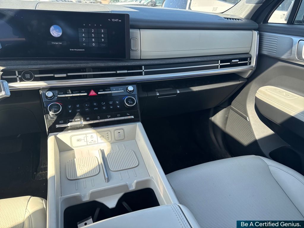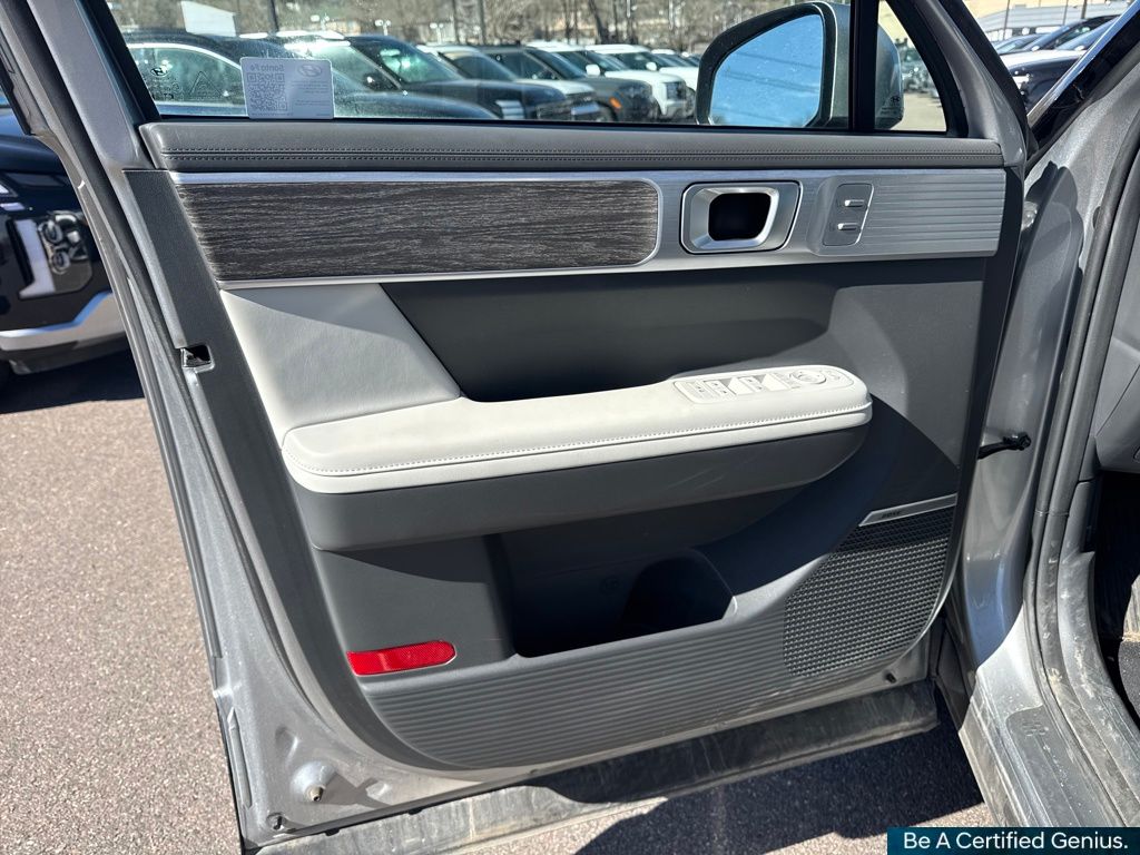 Option Group 01, Hyundai Certified Used Vehicles Certified, AWD, Gray Leather, 12 Speakers, 3rd row seats: bench, 4-Wheel Disc Brakes, ABS brakes, Air Conditioning, Alloy wheels, AM/FM radio: SiriusXM, Apple CarPlay & Android Auto, Auto High-beam Headlights, Auto-dimming Rear-View mirror, Automatic temperature control, Axle Ratio: 3.316, Brake assist, Bumpers: body-color, Carpeted Floor Mats, Delay-off headlights, Driver door bin, Driver vanity mirror, Dual front impact airbags, Dual front side impact airbags, Electronic Stability Control, Emergency communication system, Exterior Parking Camera Rear, Four wheel independent suspension, Front anti-roll bar, Front Bucket Seats, Front Center Armrest, Front dual zone A/C, Front reading lights, Fully automatic headlights, Garage door transmitter: HomeLink, Heated & Ventilated Front Bucket Seats, Heated door mirrors, Heated front seats, Heated rear seats, Heated steering wheel, Illuminated entry, Knee airbag, Leather Seat Trim, Leather steering wheel, Low tire pressure warning, Memory seat, Navigation System, Occupant sensing airbag, Outside temperature display, Overhead airbag, Overhead console, Panic alarm, Passenger door bin, Passenger vanity mirror, Power door mirrors, Power driver seat, Power Liftgate, Power moonroof, Power passenger seat, Power steering, Power windows, Radio: AM/FM/HD Bose Premium Audio System, Rain sensing wipers, Rear anti-roll bar, Rear seat center armrest, Rear side impact airbag, Rear window defroster, Rear window wiper, Remote keyless entry, Security system, Speed control, Speed-sensing steering, Split folding rear seat, Spoiler, Steering wheel mounted audio controls, Tachometer, Telescoping steering wheel, Tilt steering wheel, Tow Hitch, Traction control, Trip computer, Turn signal indicator mirrors, Variably intermittent wipers, Ventilated front seats, and Wheels: 20" x 8.5J Alloy.