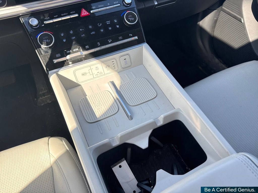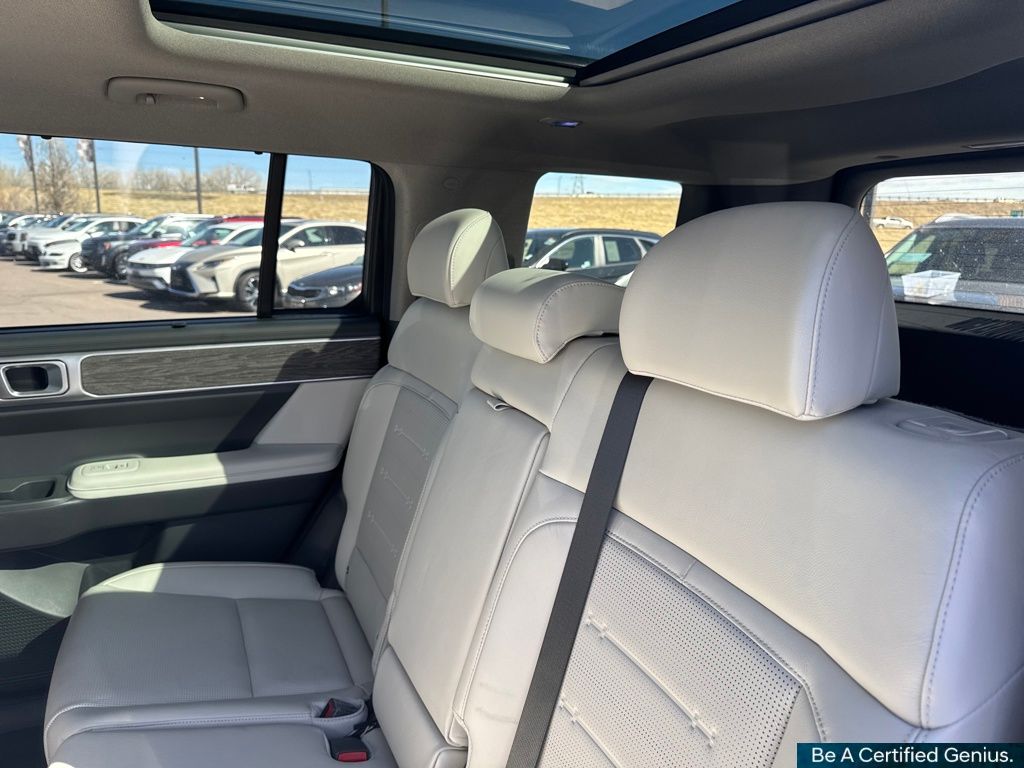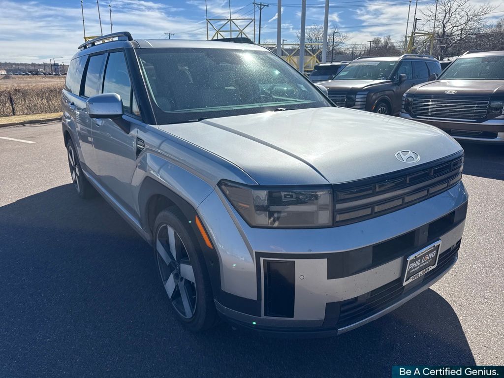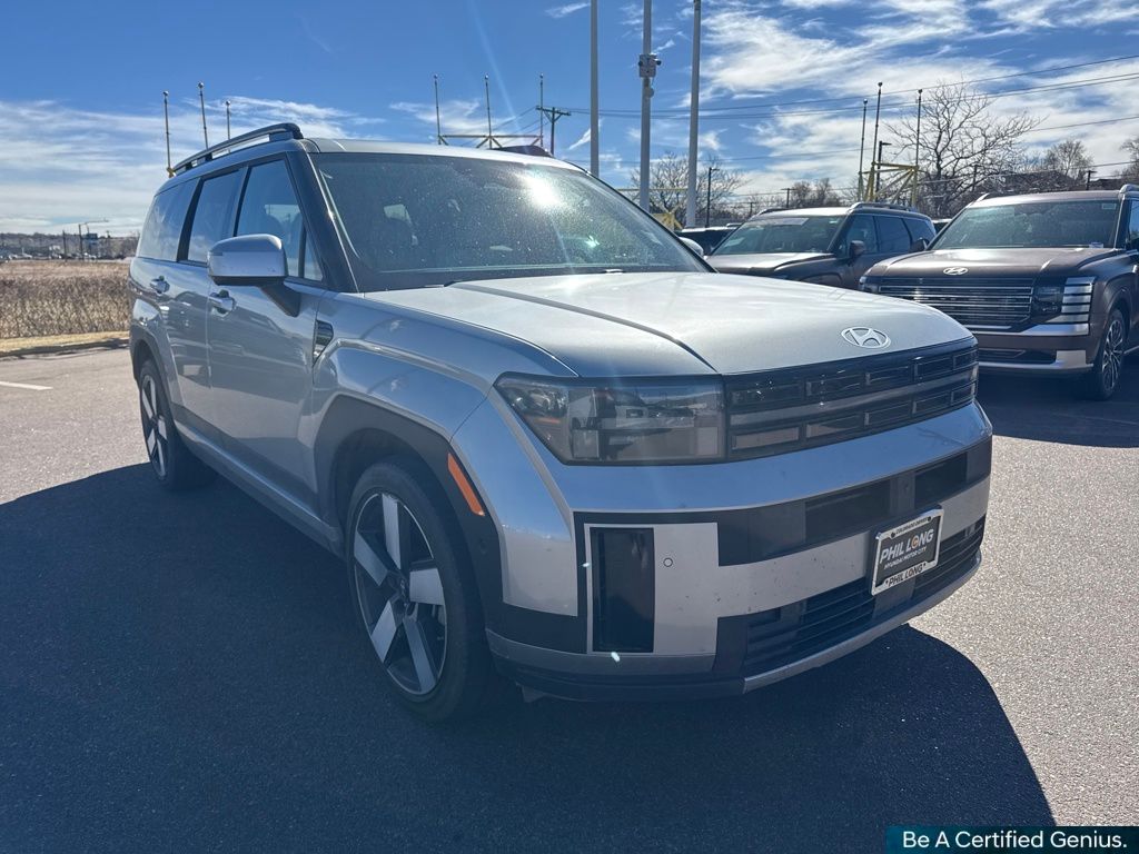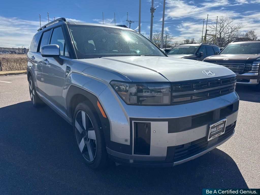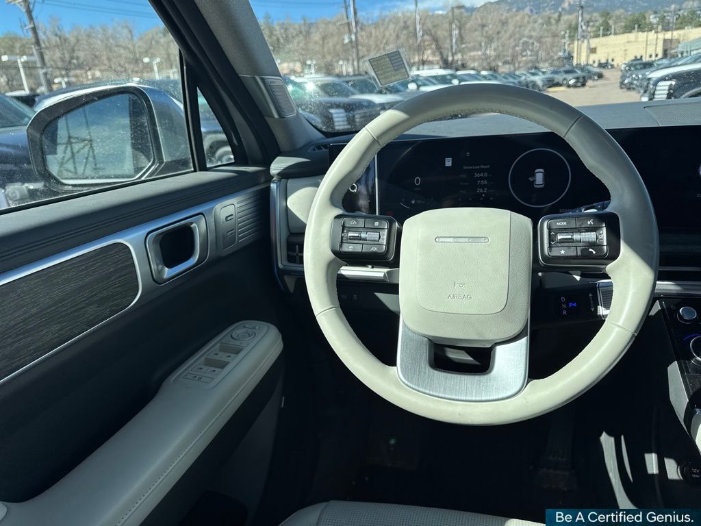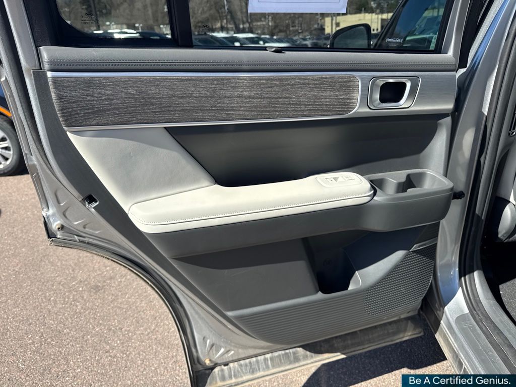 Option Group 01, Hyundai Certified Used Vehicles Certified, AWD, Gray Leather, 12 Speakers, 3rd row seats: bench, 4-Wheel Disc Brakes, ABS brakes, Air Conditioning, Alloy wheels, AM/FM radio: SiriusXM, Apple CarPlay & Android Auto, Auto High-beam Headlights, Auto-dimming Rear-View mirror, Automatic temperature control, Axle Ratio: 3.316, Brake assist, Bumpers: body-color, Carpeted Floor Mats, Delay-off headlights, Driver door bin, Driver vanity mirror, Dual front impact airbags, Dual front side impact airbags, Electronic Stability Control, Emergency communication system, Exterior Parking Camera Rear, Four wheel independent suspension, Front anti-roll bar, Front Bucket Seats, Front Center Armrest, Front dual zone A/C, Front reading lights, Fully automatic headlights, Garage door transmitter: HomeLink, Heated & Ventilated Front Bucket Seats, Heated door mirrors, Heated front seats, Heated rear seats, Heated steering wheel, Illuminated entry, Knee airbag, Leather Seat Trim, Leather steering wheel, Low tire pressure warning, Memory seat, Navigation System, Occupant sensing airbag, Outside temperature display, Overhead airbag, Overhead console, Panic alarm, Passenger door bin, Passenger vanity mirror, Power door mirrors, Power driver seat, Power Liftgate, Power moonroof, Power passenger seat, Power steering, Power windows, Radio: AM/FM/HD Bose Premium Audio System, Rain sensing wipers, Rear anti-roll bar, Rear seat center armrest, Rear side impact airbag, Rear window defroster, Rear window wiper, Remote keyless entry, Security system, Speed control, Speed-sensing steering, Split folding rear seat, Spoiler, Steering wheel mounted audio controls, Tachometer, Telescoping steering wheel, Tilt steering wheel, Tow Hitch, Traction control, Trip computer, Turn signal indicator mirrors, Variably intermittent wipers, Ventilated front seats, and Wheels: 20" x 8.5J Alloy.