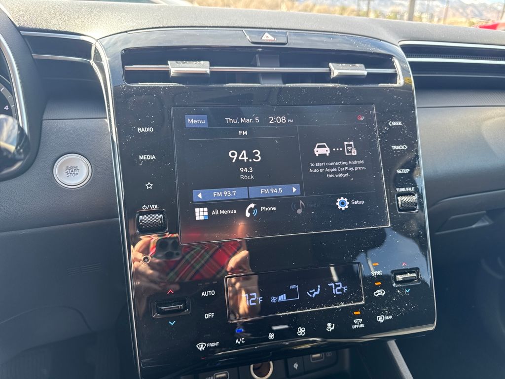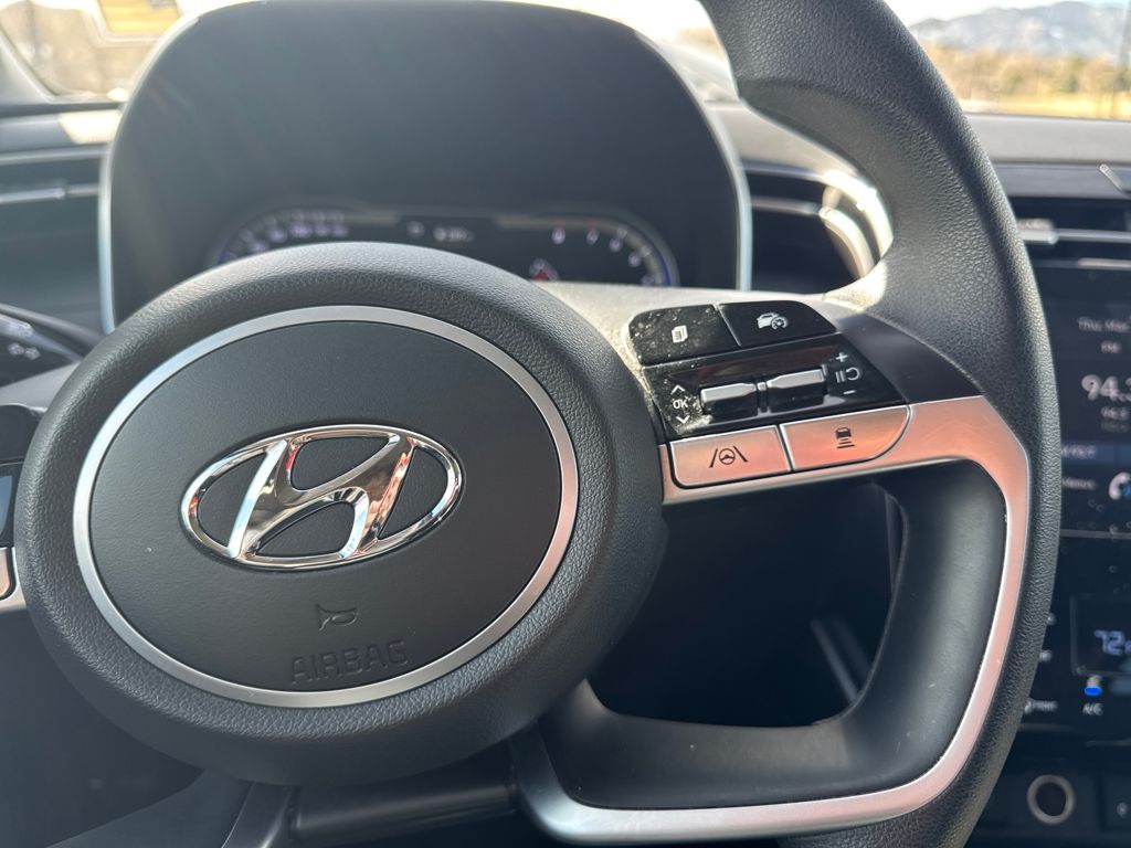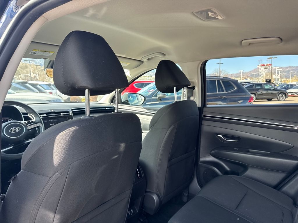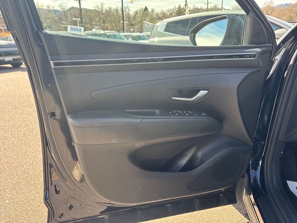 Option Group 01, Hyundai Certified Used Vehicles Certified, AWD, 3.648 Axle Ratio, 4-Wheel Disc Brakes, 6 Speakers, ABS brakes, Air Conditioning, Alloy wheels, AM/FM radio: SiriusXM, Apple CarPlay & Android Auto, Auto High-beam Headlights, Automatic temperature control, Brake assist, Bumpers: body-color, Delay-off headlights, Driver door bin, Driver vanity mirror, Dual front impact airbags, Dual front side impact airbags, Electronic Stability Control, Emergency communication system: Blue Link Connected Car Service (3-year complimentary subscription), Exterior Parking Camera Rear, Four wheel independent suspension, Front anti-roll bar, Front Bucket Seats, Front Center Armrest, Front dual zone A/C, Front reading lights, Fully automatic headlights, Heated door mirrors, Heated Front Bucket Seats, Heated front seats, Illuminated entry, Low tire pressure warning, Occupant sensing airbag, Outside temperature display, Overhead airbag, Overhead console, Panic alarm, Passenger door bin, Passenger vanity mirror, Power door mirrors, Power driver seat, Power Liftgate, Power steering, Power windows, Radio data system, Radio: AM/FM/HD Audio System, Rear anti-roll bar, Rear seat center armrest, Rear side impact airbag, Rear window defroster, Rear window wiper, Remote keyless entry, Roof rack: rails only, Security system, Speed control, Split folding rear seat, Spoiler, Stain & Odor Resistant Cloth Seat Trim, Steering wheel mounted audio controls, Tachometer, Telescoping steering wheel, Tilt steering wheel, Traction control, Trip computer, Variably intermittent wipers, Wheels: 17" x 7.0J" Alloy, and Wheels: 19" x 7.5J" Machine-Face Finish Alloy.
