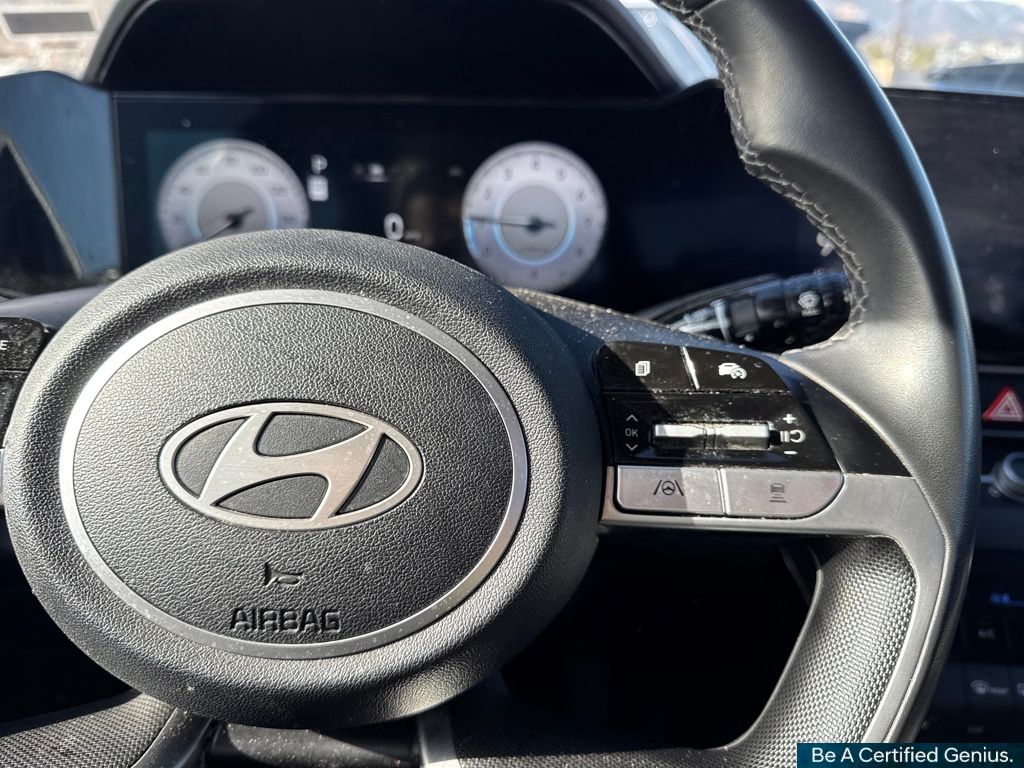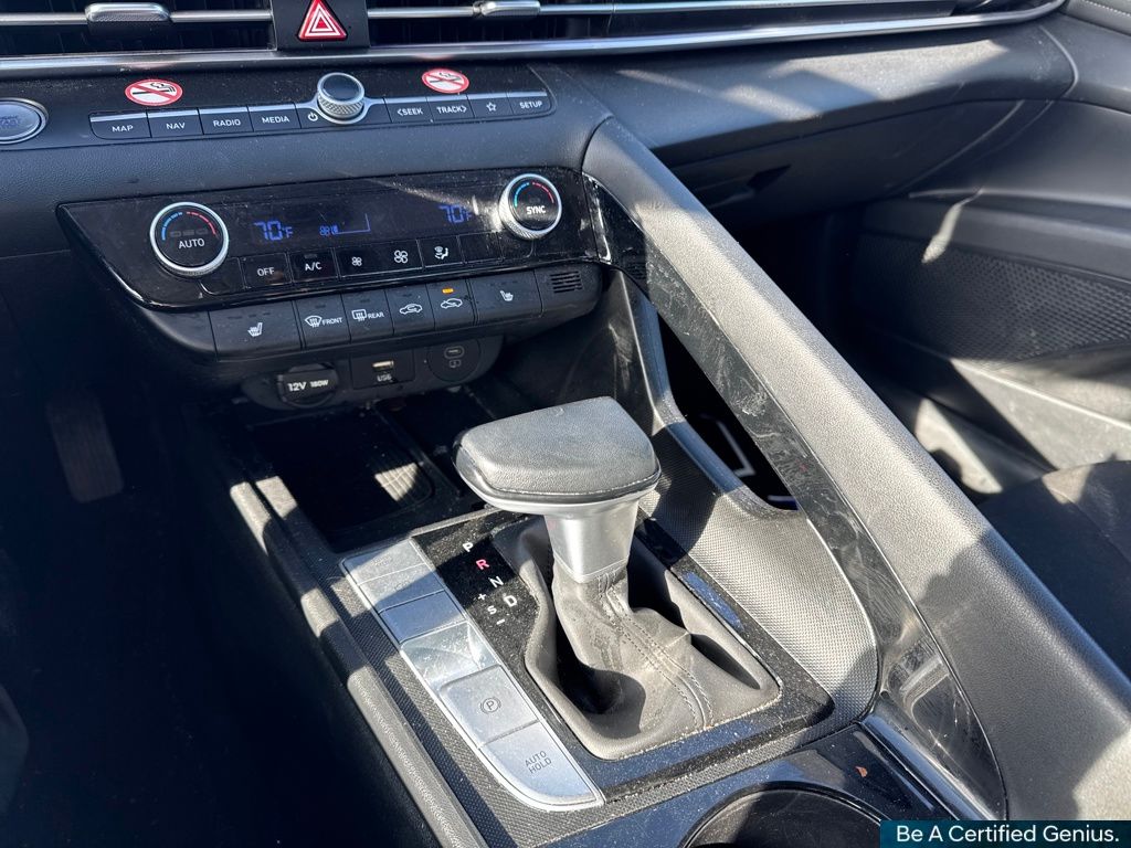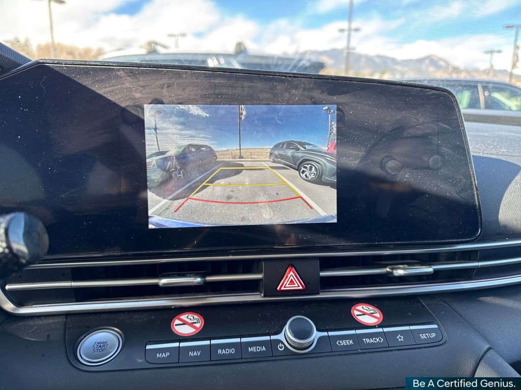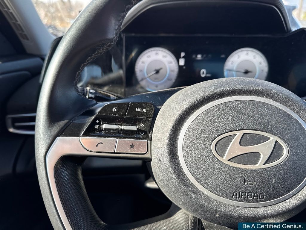 Option Group 01, Hyundai Certified Used Vehicles Certified, 17" x 7.0J Alloy Wheels, 4-Wheel Disc Brakes, 6 Speakers, ABS brakes, Air Conditioning, Alloy wheels, AM/FM radio: SiriusXM, Apple CarPlay & Android Auto, Auto High-beam Headlights, Automatic temperature control, Brake assist, Bumpers: body-color, Delay-off headlights, Driver door bin, Driver vanity mirror, Dual front impact airbags, Dual front side impact airbags, Electronic Stability Control, Emergency communication system: Bluelink+, Exterior Parking Camera Rear, Front anti-roll bar, Front Bucket Seats, Front Center Armrest, Front dual zone A/C, Front reading lights, Front wheel independent suspension, Fully automatic headlights, Heated door mirrors, Heated Front Bucket Seats, Heated front seats, Illuminated entry, Leather Shift Knob, Leather steering wheel, Low tire pressure warning, Navigation System, Occupant sensing airbag, Outside temperature display, Overhead airbag, Overhead console, Panic alarm, Passenger door bin, Passenger vanity mirror, Power door mirrors, Power moonroof, Power steering, Power windows, Premium Cloth Seat Trim, Radio: AM/FM/HD/SiriusXM Display Audio, Rear seat center armrest, Rear side impact airbag, Rear window defroster, Remote keyless entry, Security system, Speed control, Speed-sensing steering, Split folding rear seat, Steering wheel mounted audio controls, Tachometer, Telescoping steering wheel, Tilt steering wheel, Traction control, Trip computer, and Variably intermittent wipers.