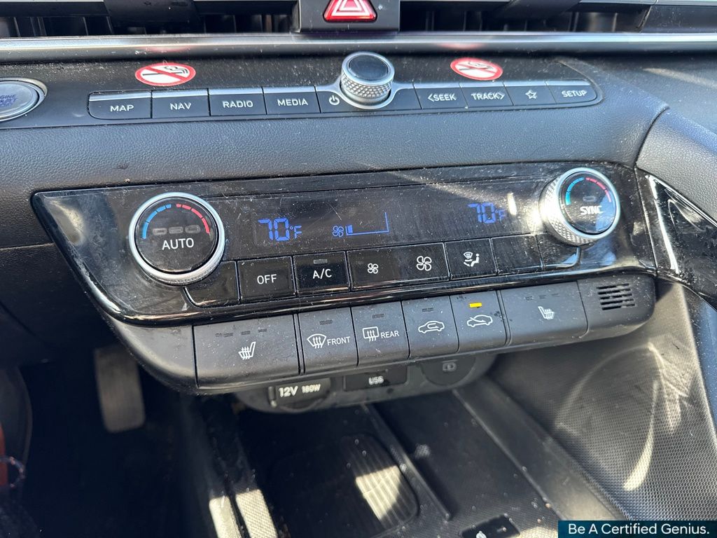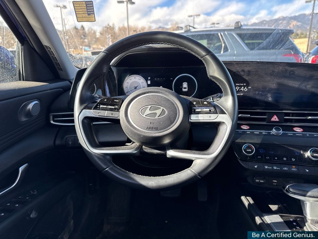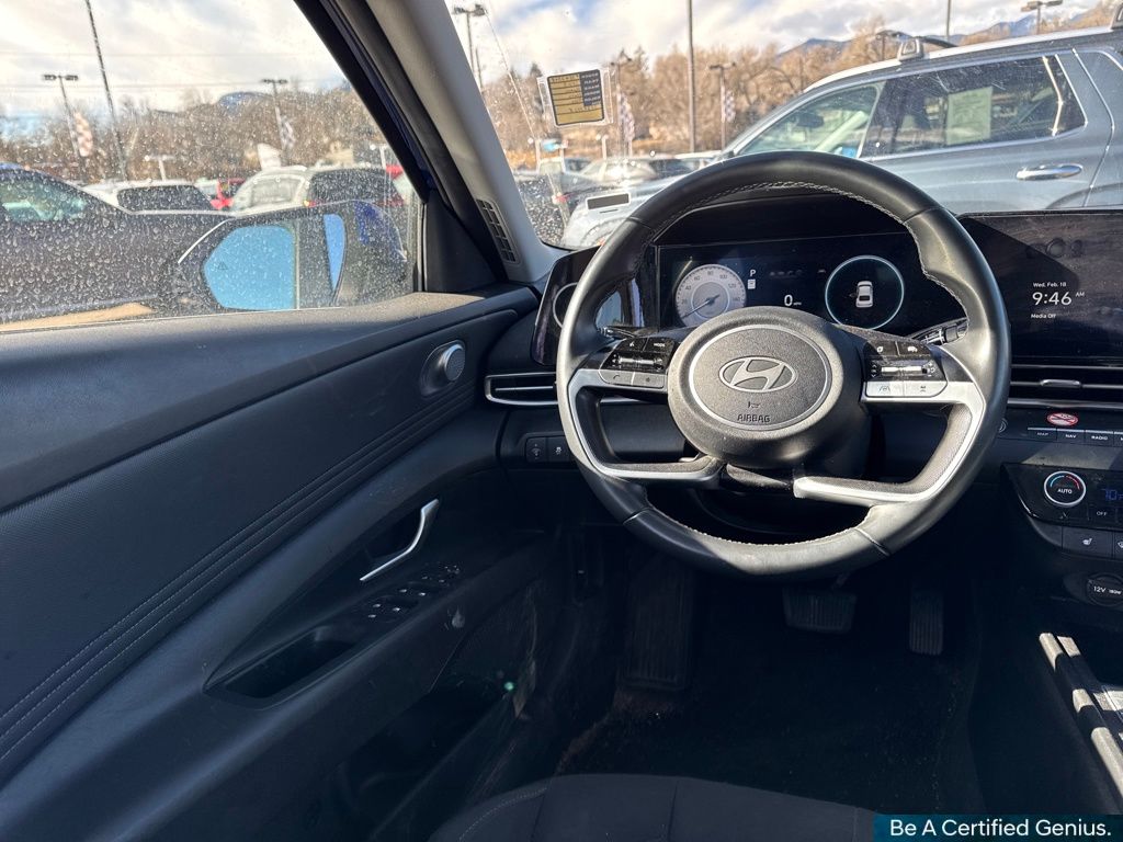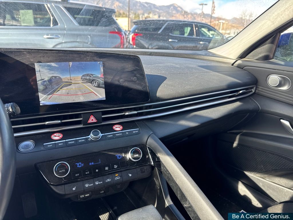 Option Group 01, Hyundai Certified Used Vehicles Certified, 17" x 7.0J Alloy Wheels, 4-Wheel Disc Brakes, 6 Speakers, ABS brakes, Air Conditioning, Alloy wheels, AM/FM radio: SiriusXM, Apple CarPlay & Android Auto, Auto High-beam Headlights, Automatic temperature control, Brake assist, Bumpers: body-color, Delay-off headlights, Driver door bin, Driver vanity mirror, Dual front impact airbags, Dual front side impact airbags, Electronic Stability Control, Emergency communication system: Bluelink+, Exterior Parking Camera Rear, Front anti-roll bar, Front Bucket Seats, Front Center Armrest, Front dual zone A/C, Front reading lights, Front wheel independent suspension, Fully automatic headlights, Heated door mirrors, Heated Front Bucket Seats, Heated front seats, Illuminated entry, Leather Shift Knob, Leather steering wheel, Low tire pressure warning, Navigation System, Occupant sensing airbag, Outside temperature display, Overhead airbag, Overhead console, Panic alarm, Passenger door bin, Passenger vanity mirror, Power door mirrors, Power moonroof, Power steering, Power windows, Premium Cloth Seat Trim, Radio: AM/FM/HD/SiriusXM Display Audio, Rear seat center armrest, Rear side impact airbag, Rear window defroster, Remote keyless entry, Security system, Speed control, Speed-sensing steering, Split folding rear seat, Steering wheel mounted audio controls, Tachometer, Telescoping steering wheel, Tilt steering wheel, Traction control, Trip computer, and Variably intermittent wipers.