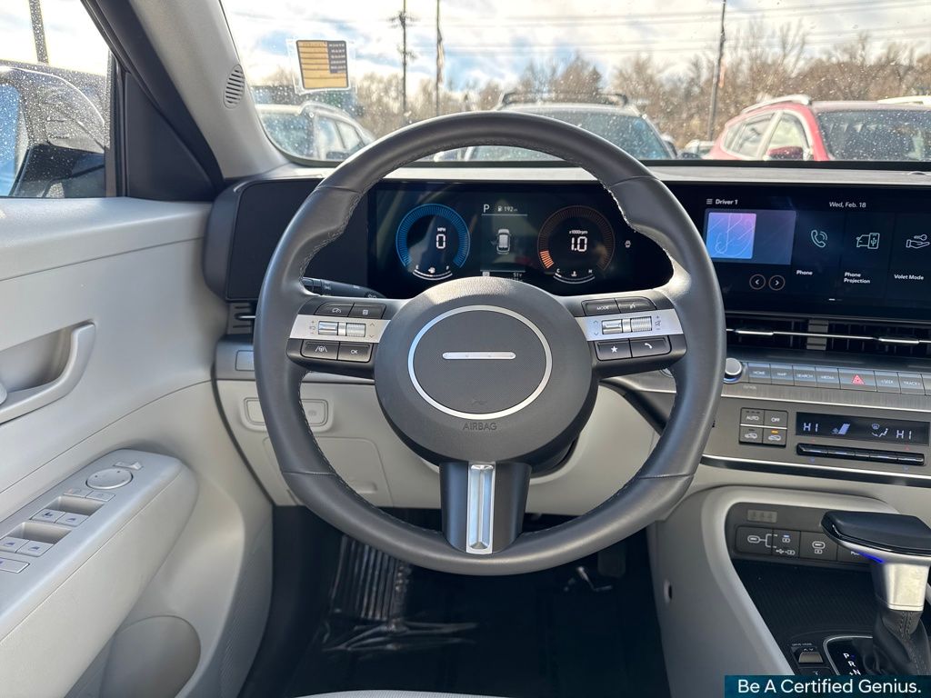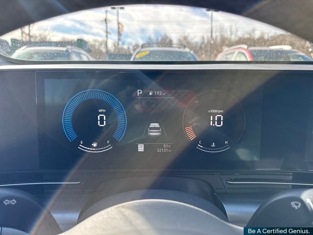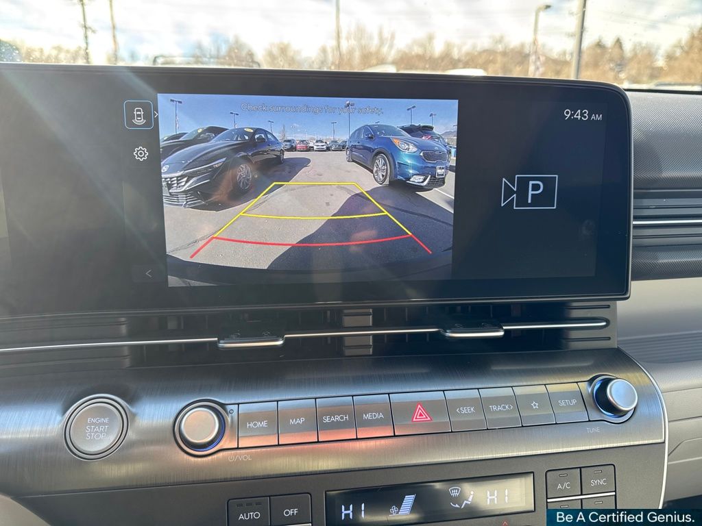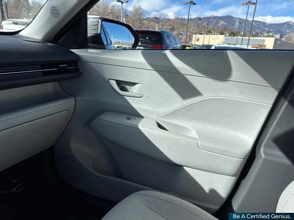 Option Group 01, Hyundai Certified Used Vehicles Certified, 4-Wheel Disc Brakes, 6 Speakers, ABS brakes, Air Conditioning, Alloy wheels, AM/FM radio: SiriusXM, Apple CarPlay & Android Auto, Auto High-beam Headlights, Automatic temperature control, Brake assist, Bumpers: body-color, Cloth Seat Trim, Delay-off headlights, Driver door bin, Driver vanity mirror, Dual front impact airbags, Dual front side impact airbags, Electronic Stability Control, Emergency communication system: Bluelink+, Exterior Parking Camera Rear, Four wheel independent suspension, Front anti-roll bar, Front Bucket Seats, Front Center Armrest, Front dual zone A/C, Front reading lights, Fully automatic headlights, Heated door mirrors, Illuminated entry, Leather steering wheel, Low tire pressure warning, Occupant sensing airbag, Outside temperature display, Overhead airbag, Panic alarm, Passenger door bin, Passenger vanity mirror, Power door mirrors, Power driver seat, Power steering, Power windows, Radio: AM/FM/HD Radio/SiriusXM Audio System, Rear anti-roll bar, Rear seat center armrest, Rear window defroster, Rear window wiper, Remote keyless entry, Security system, Speed control, Speed-sensing steering, Split folding rear seat, Spoiler, Steering wheel mounted audio controls, Tachometer, Telescoping steering wheel, Tilt steering wheel, Traction control, Trip computer, Turn signal indicator mirrors, Variably intermittent wipers, and Wheels: 18" x 7.0J Glossy Black Alloy.