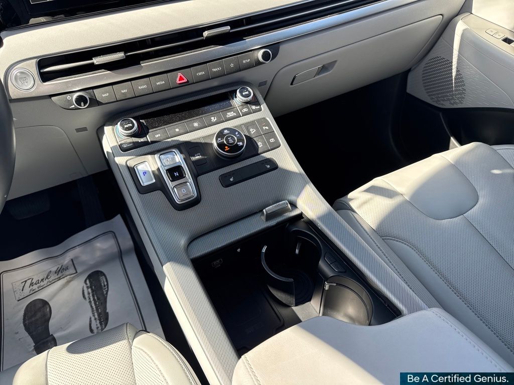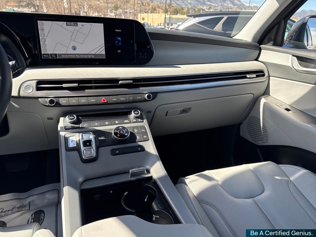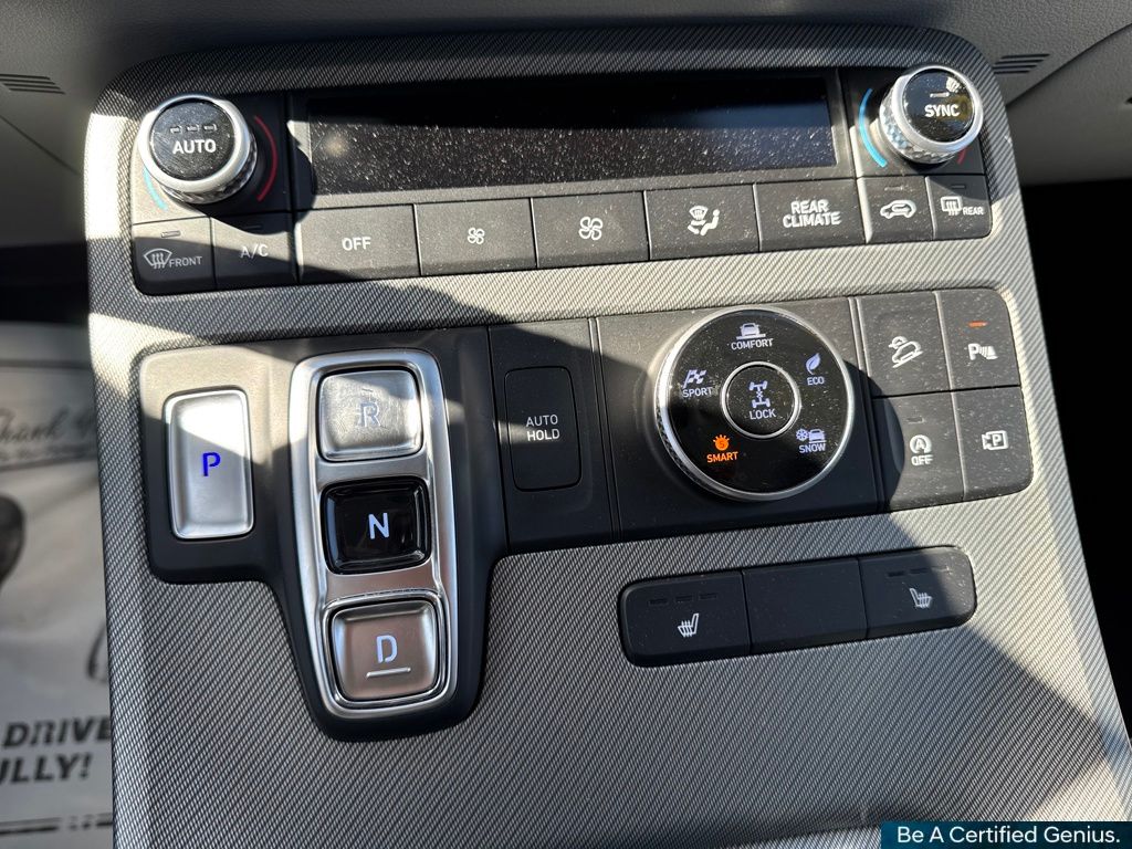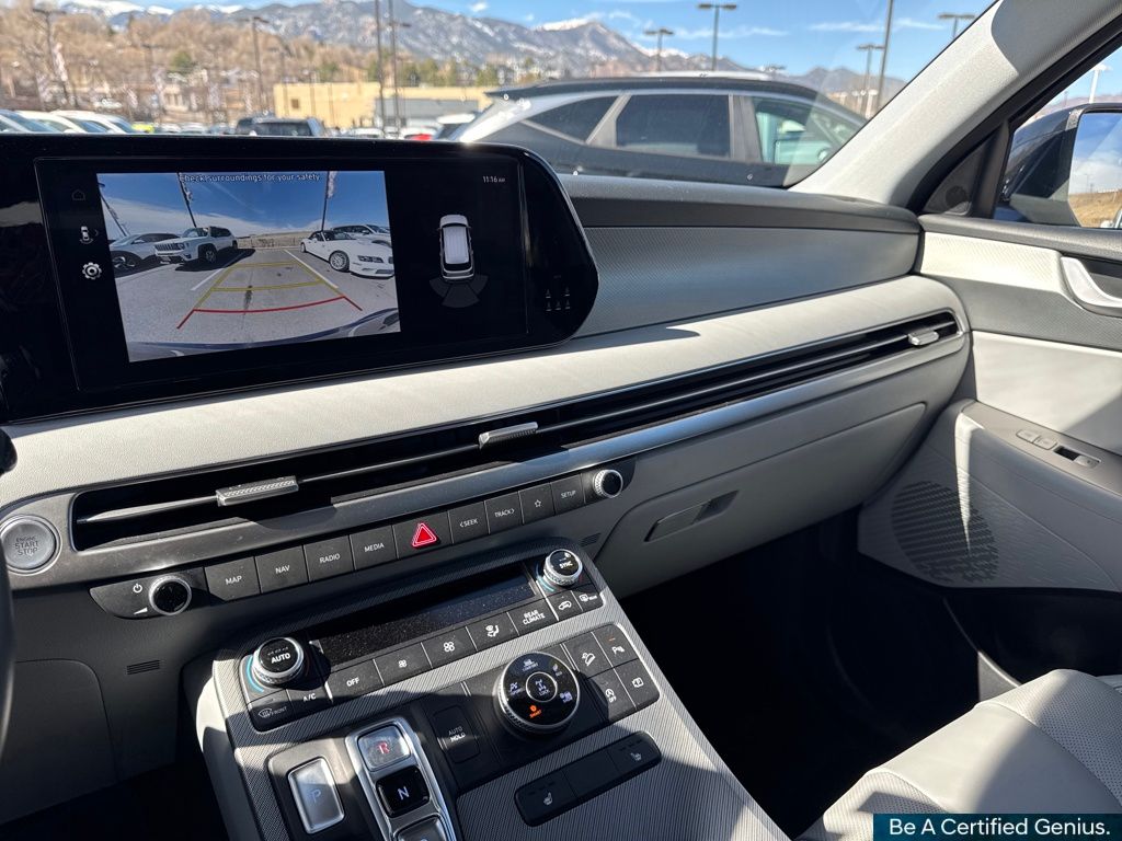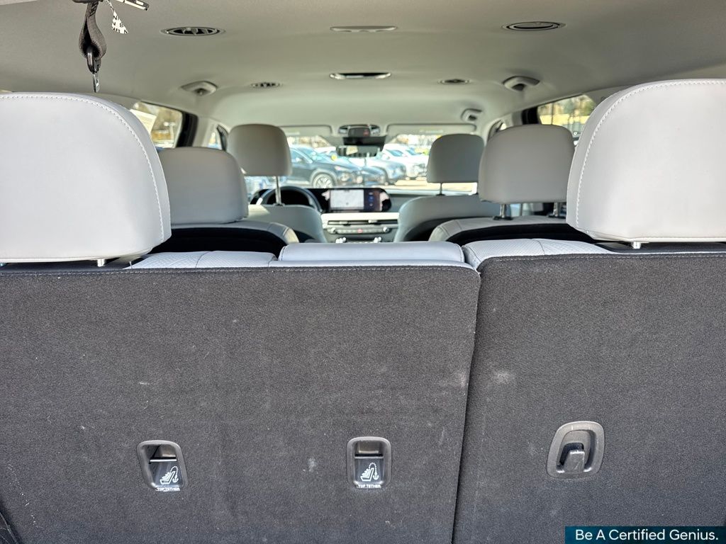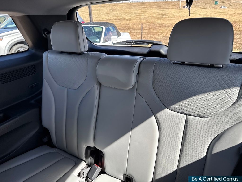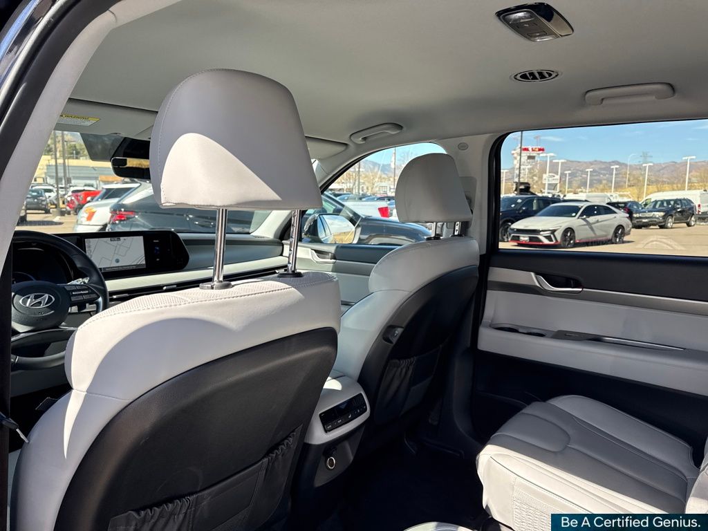 Option Group 01, Hyundai Certified Used Vehicles Certified, 3rd row seats: split-bench, 4-Wheel Disc Brakes, 6 Speakers, ABS brakes, Air Conditioning, Alloy wheels, AM/FM radio: SiriusXM, Apple CarPlay & Android Auto, Auto High-beam Headlights, Auto-dimming Rear-View mirror, Automatic temperature control, Brake assist, Bumpers: body-color, Delay-off headlights, Driver door bin, Driver vanity mirror, Dual front impact airbags, Dual front side impact airbags, Electronic Stability Control, Emergency communication system, Exterior Parking Camera Rear, Four wheel independent suspension, Front anti-roll bar, Front Bucket Seats, Front Center Armrest, Front dual zone A/C, Front reading lights, Fully automatic headlights, H-Tex Leatherette Seat Trim, Heated door mirrors, Heated Front Bucket Seats, Heated front seats, Illuminated entry, Knee airbag, Leather steering wheel, Low tire pressure warning, Navigation System, Occupant sensing airbag, Outside temperature display, Overhead airbag, Overhead console, Panic alarm, Passenger door bin, Passenger vanity mirror, Power door mirrors, Power driver seat, Power Liftgate, Power passenger seat, Power steering, Power windows, Radio data system, Radio: AM/FM/MP3 Audio System, Rear air conditioning, Rear anti-roll bar, Rear audio controls, Rear reading lights, Rear side impact airbag, Rear window defroster, Rear window wiper, Reclining 3rd row seat, Remote keyless entry, Security system, Speed control, Speed-sensing steering, Split folding rear seat, Spoiler, Steering wheel mounted audio controls, Tachometer, Telescoping steering wheel, Tilt steering wheel, Traction control, Trip computer, Turn signal indicator mirrors, Variably intermittent wipers, and Wheels: 18" x 7.5J Painted Finish Alloy.