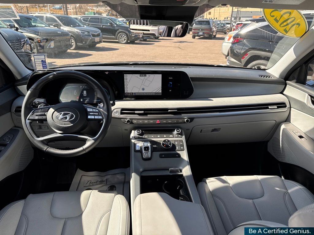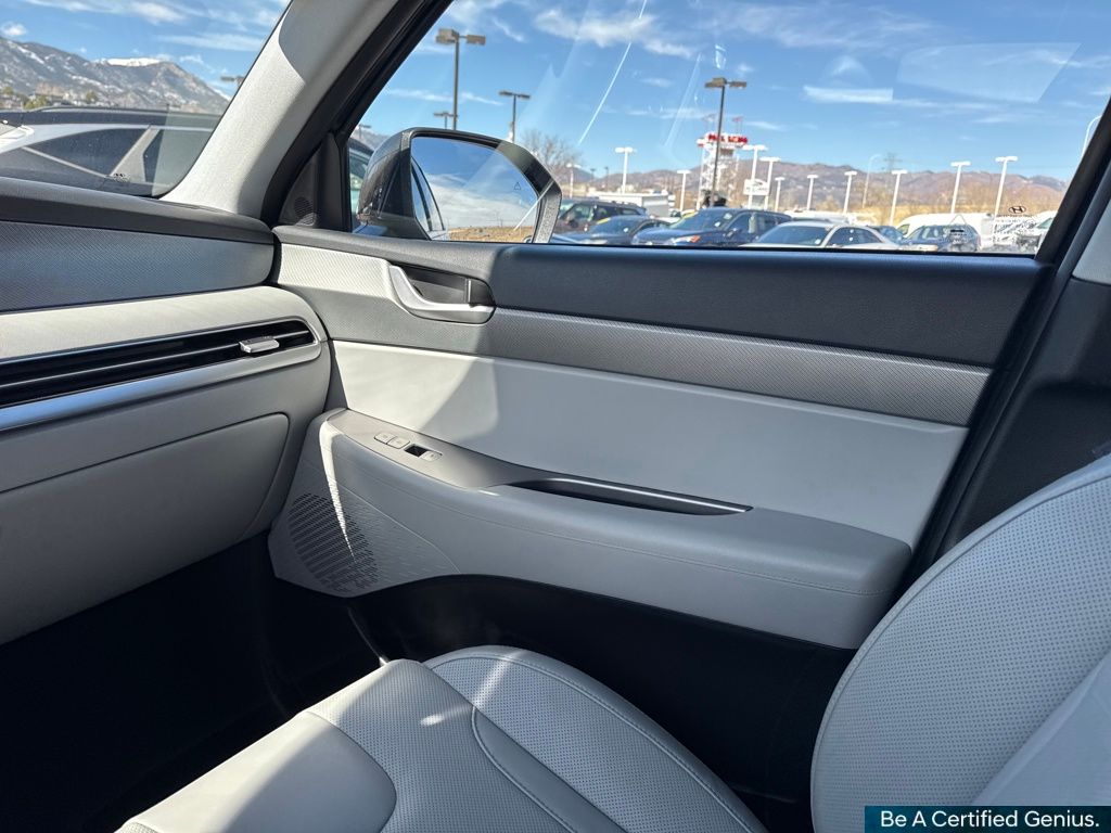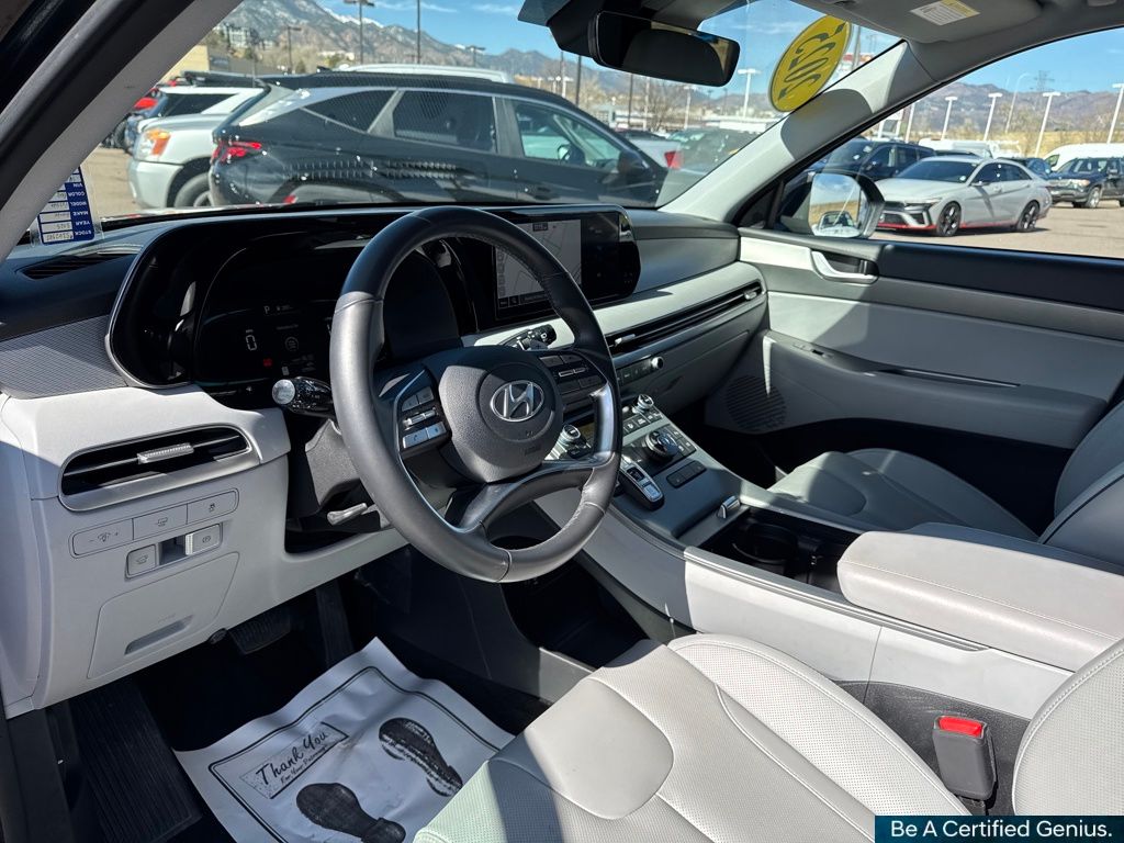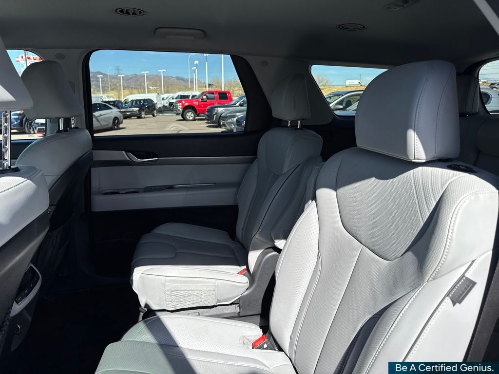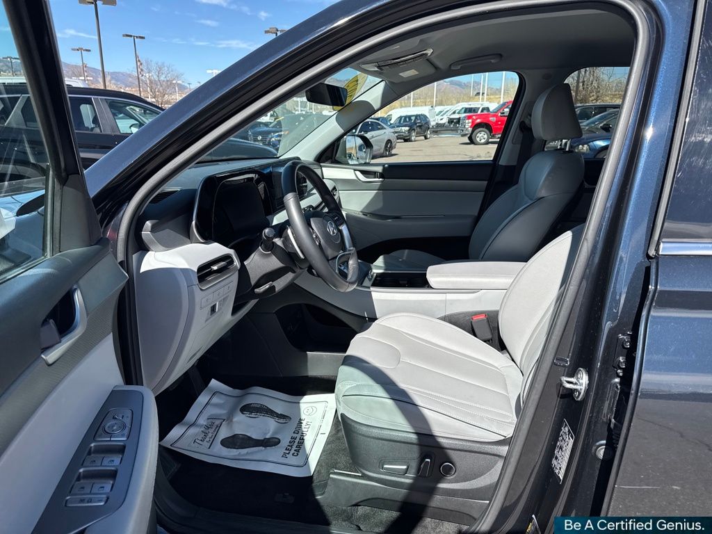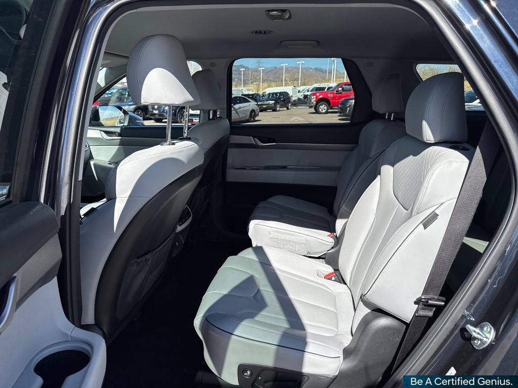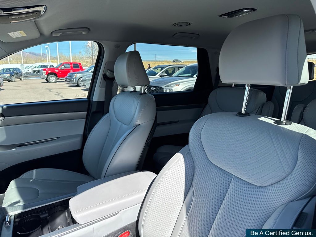 Option Group 01, Hyundai Certified Used Vehicles Certified, 3rd row seats: split-bench, 4-Wheel Disc Brakes, 6 Speakers, ABS brakes, Air Conditioning, Alloy wheels, AM/FM radio: SiriusXM, Apple CarPlay & Android Auto, Auto High-beam Headlights, Auto-dimming Rear-View mirror, Automatic temperature control, Brake assist, Bumpers: body-color, Delay-off headlights, Driver door bin, Driver vanity mirror, Dual front impact airbags, Dual front side impact airbags, Electronic Stability Control, Emergency communication system, Exterior Parking Camera Rear, Four wheel independent suspension, Front anti-roll bar, Front Bucket Seats, Front Center Armrest, Front dual zone A/C, Front reading lights, Fully automatic headlights, H-Tex Leatherette Seat Trim, Heated door mirrors, Heated Front Bucket Seats, Heated front seats, Illuminated entry, Knee airbag, Leather steering wheel, Low tire pressure warning, Navigation System, Occupant sensing airbag, Outside temperature display, Overhead airbag, Overhead console, Panic alarm, Passenger door bin, Passenger vanity mirror, Power door mirrors, Power driver seat, Power Liftgate, Power passenger seat, Power steering, Power windows, Radio data system, Radio: AM/FM/MP3 Audio System, Rear air conditioning, Rear anti-roll bar, Rear audio controls, Rear reading lights, Rear side impact airbag, Rear window defroster, Rear window wiper, Reclining 3rd row seat, Remote keyless entry, Security system, Speed control, Speed-sensing steering, Split folding rear seat, Spoiler, Steering wheel mounted audio controls, Tachometer, Telescoping steering wheel, Tilt steering wheel, Traction control, Trip computer, Turn signal indicator mirrors, Variably intermittent wipers, and Wheels: 18" x 7.5J Painted Finish Alloy.