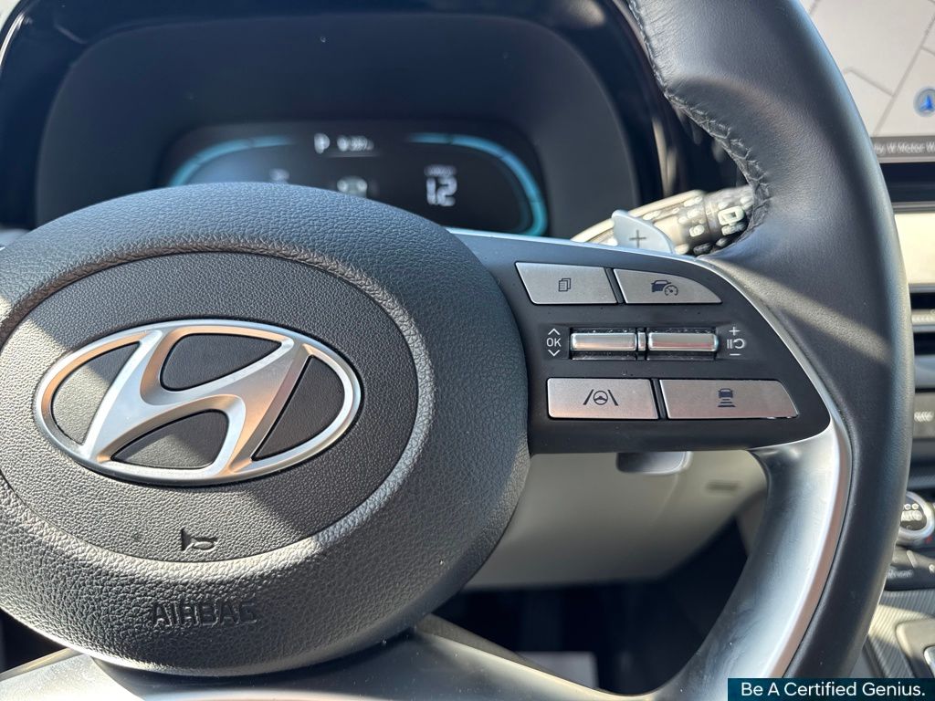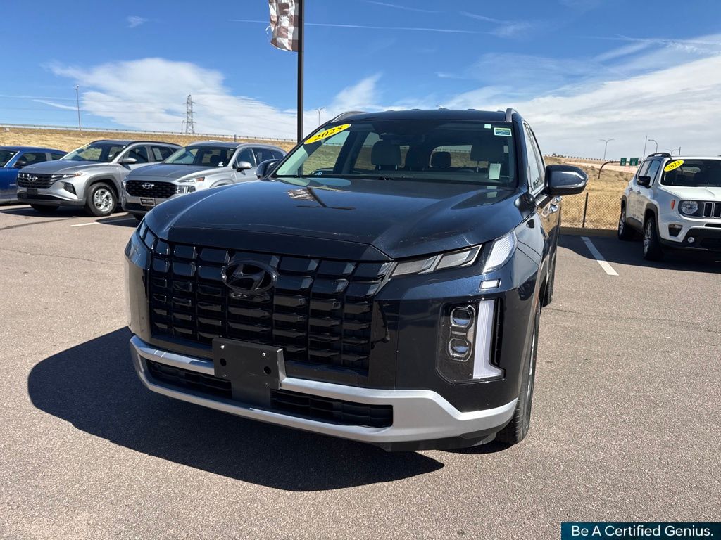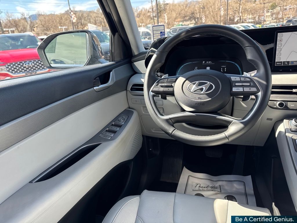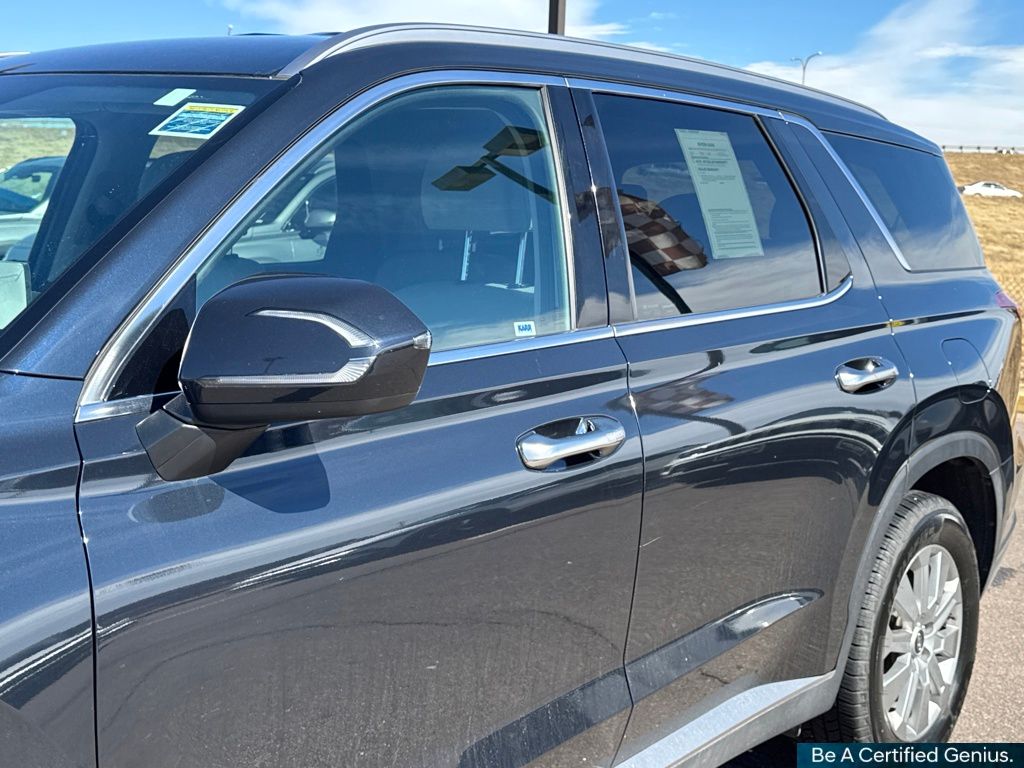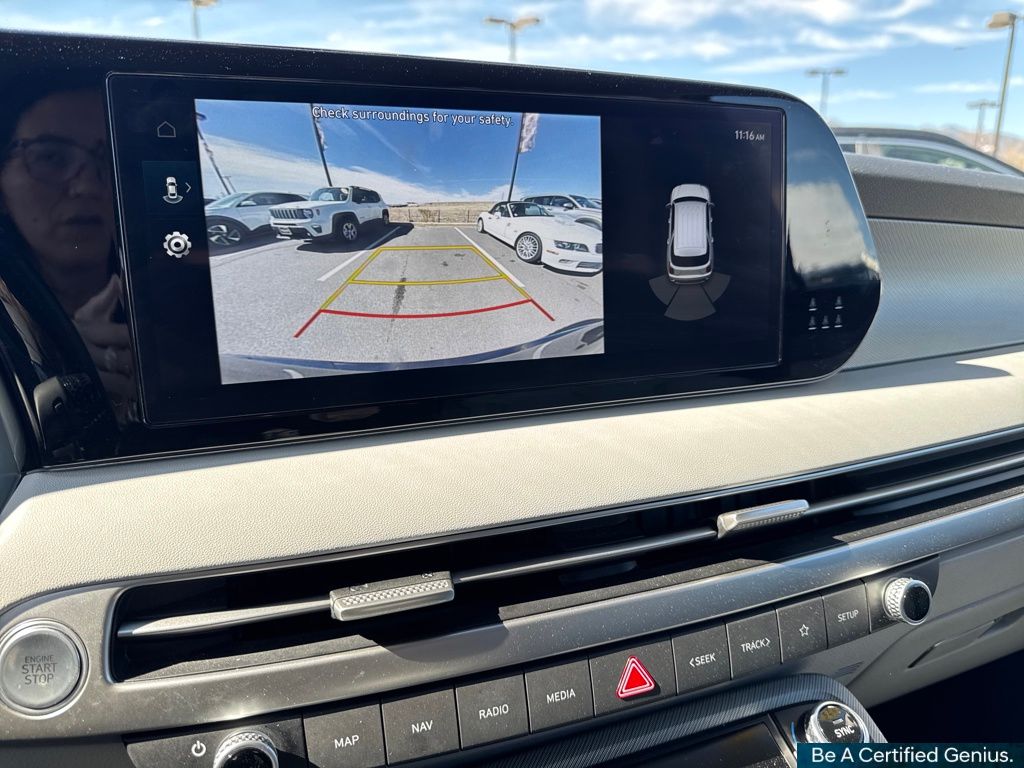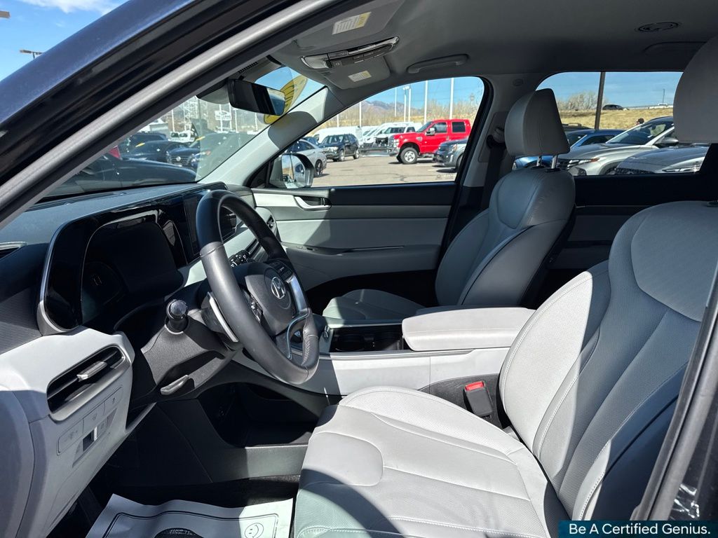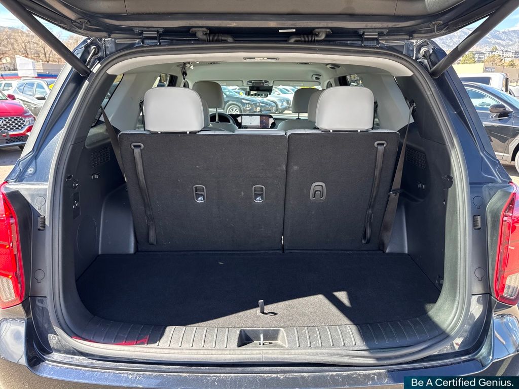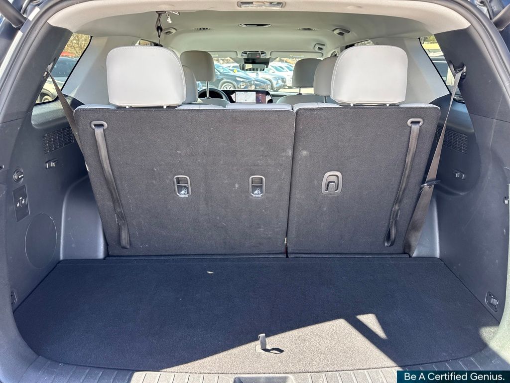 Option Group 01, Hyundai Certified Used Vehicles Certified, 3rd row seats: split-bench, 4-Wheel Disc Brakes, 6 Speakers, ABS brakes, Air Conditioning, Alloy wheels, AM/FM radio: SiriusXM, Apple CarPlay & Android Auto, Auto High-beam Headlights, Auto-dimming Rear-View mirror, Automatic temperature control, Brake assist, Bumpers: body-color, Delay-off headlights, Driver door bin, Driver vanity mirror, Dual front impact airbags, Dual front side impact airbags, Electronic Stability Control, Emergency communication system, Exterior Parking Camera Rear, Four wheel independent suspension, Front anti-roll bar, Front Bucket Seats, Front Center Armrest, Front dual zone A/C, Front reading lights, Fully automatic headlights, H-Tex Leatherette Seat Trim, Heated door mirrors, Heated Front Bucket Seats, Heated front seats, Illuminated entry, Knee airbag, Leather steering wheel, Low tire pressure warning, Navigation System, Occupant sensing airbag, Outside temperature display, Overhead airbag, Overhead console, Panic alarm, Passenger door bin, Passenger vanity mirror, Power door mirrors, Power driver seat, Power Liftgate, Power passenger seat, Power steering, Power windows, Radio data system, Radio: AM/FM/MP3 Audio System, Rear air conditioning, Rear anti-roll bar, Rear audio controls, Rear reading lights, Rear side impact airbag, Rear window defroster, Rear window wiper, Reclining 3rd row seat, Remote keyless entry, Security system, Speed control, Speed-sensing steering, Split folding rear seat, Spoiler, Steering wheel mounted audio controls, Tachometer, Telescoping steering wheel, Tilt steering wheel, Traction control, Trip computer, Turn signal indicator mirrors, Variably intermittent wipers, and Wheels: 18" x 7.5J Painted Finish Alloy.