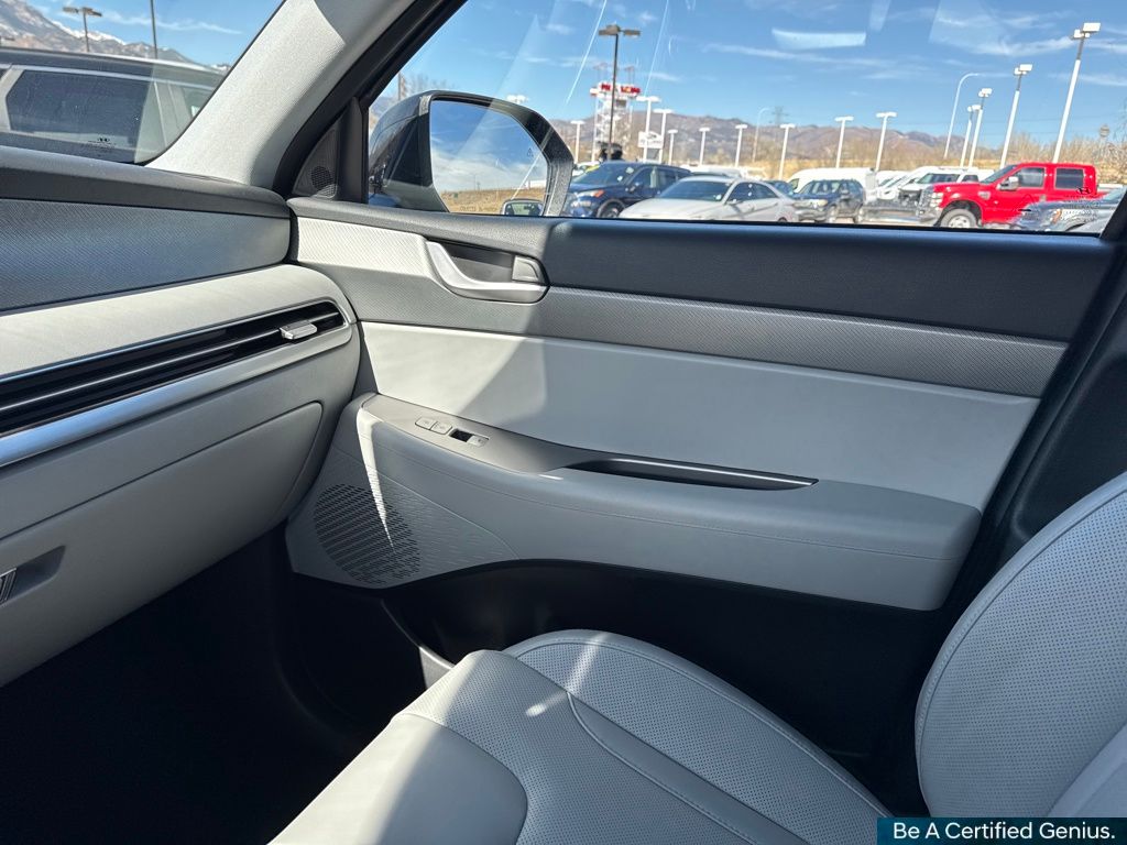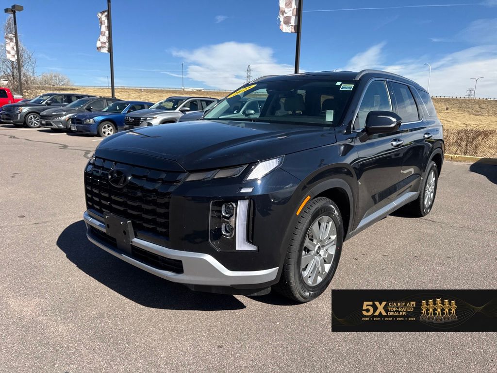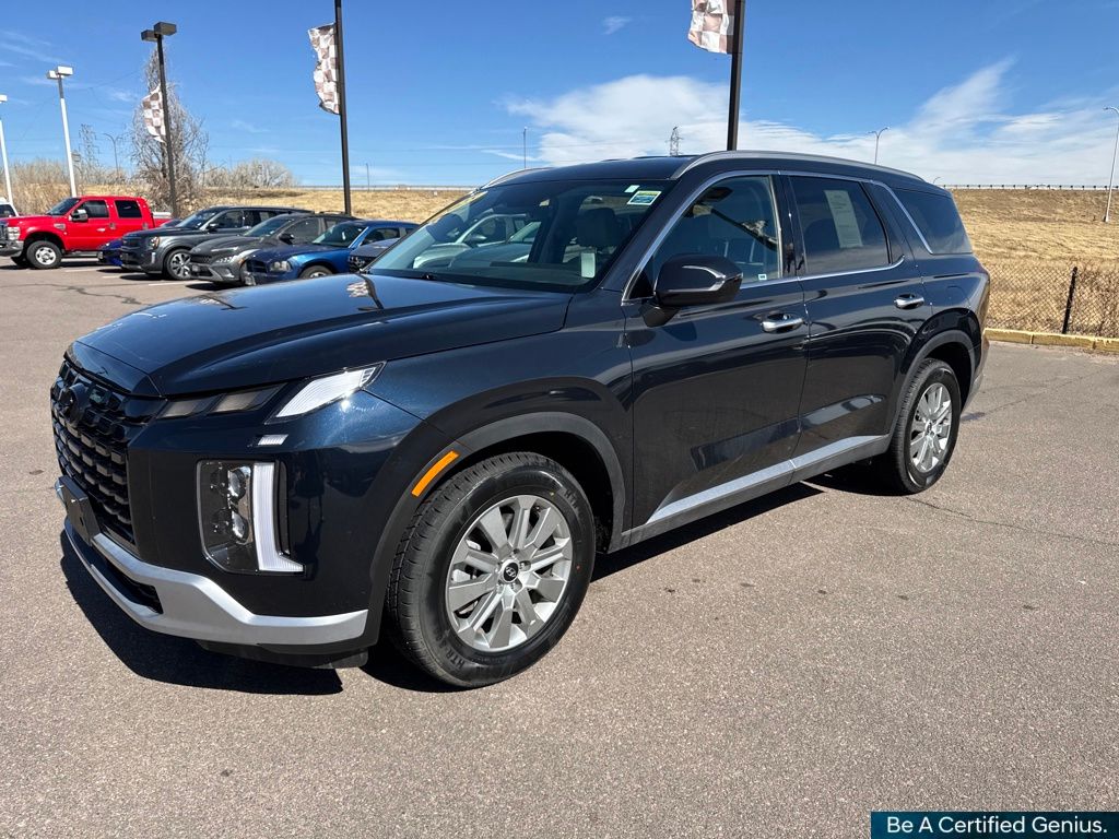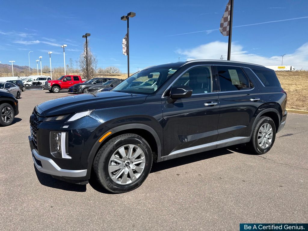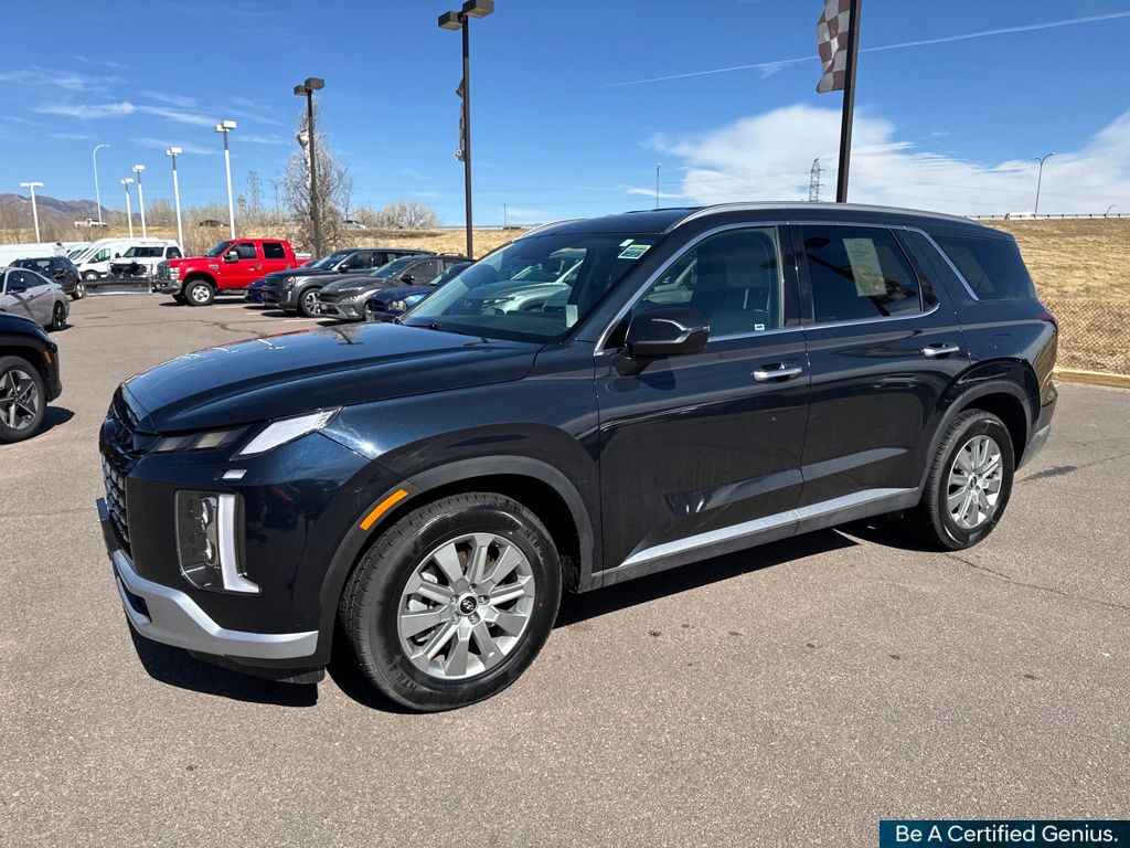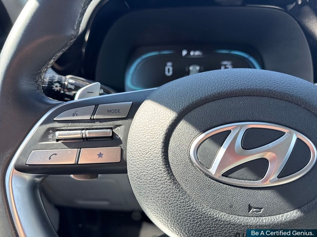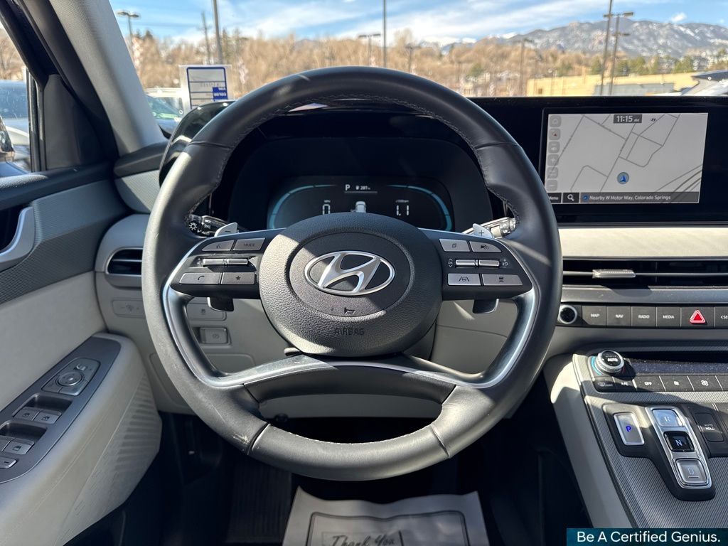 Option Group 01, Hyundai Certified Used Vehicles Certified, 3rd row seats: split-bench, 4-Wheel Disc Brakes, 6 Speakers, ABS brakes, Air Conditioning, Alloy wheels, AM/FM radio: SiriusXM, Apple CarPlay & Android Auto, Auto High-beam Headlights, Auto-dimming Rear-View mirror, Automatic temperature control, Brake assist, Bumpers: body-color, Delay-off headlights, Driver door bin, Driver vanity mirror, Dual front impact airbags, Dual front side impact airbags, Electronic Stability Control, Emergency communication system, Exterior Parking Camera Rear, Four wheel independent suspension, Front anti-roll bar, Front Bucket Seats, Front Center Armrest, Front dual zone A/C, Front reading lights, Fully automatic headlights, H-Tex Leatherette Seat Trim, Heated door mirrors, Heated Front Bucket Seats, Heated front seats, Illuminated entry, Knee airbag, Leather steering wheel, Low tire pressure warning, Navigation System, Occupant sensing airbag, Outside temperature display, Overhead airbag, Overhead console, Panic alarm, Passenger door bin, Passenger vanity mirror, Power door mirrors, Power driver seat, Power Liftgate, Power passenger seat, Power steering, Power windows, Radio data system, Radio: AM/FM/MP3 Audio System, Rear air conditioning, Rear anti-roll bar, Rear audio controls, Rear reading lights, Rear side impact airbag, Rear window defroster, Rear window wiper, Reclining 3rd row seat, Remote keyless entry, Security system, Speed control, Speed-sensing steering, Split folding rear seat, Spoiler, Steering wheel mounted audio controls, Tachometer, Telescoping steering wheel, Tilt steering wheel, Traction control, Trip computer, Turn signal indicator mirrors, Variably intermittent wipers, and Wheels: 18" x 7.5J Painted Finish Alloy.